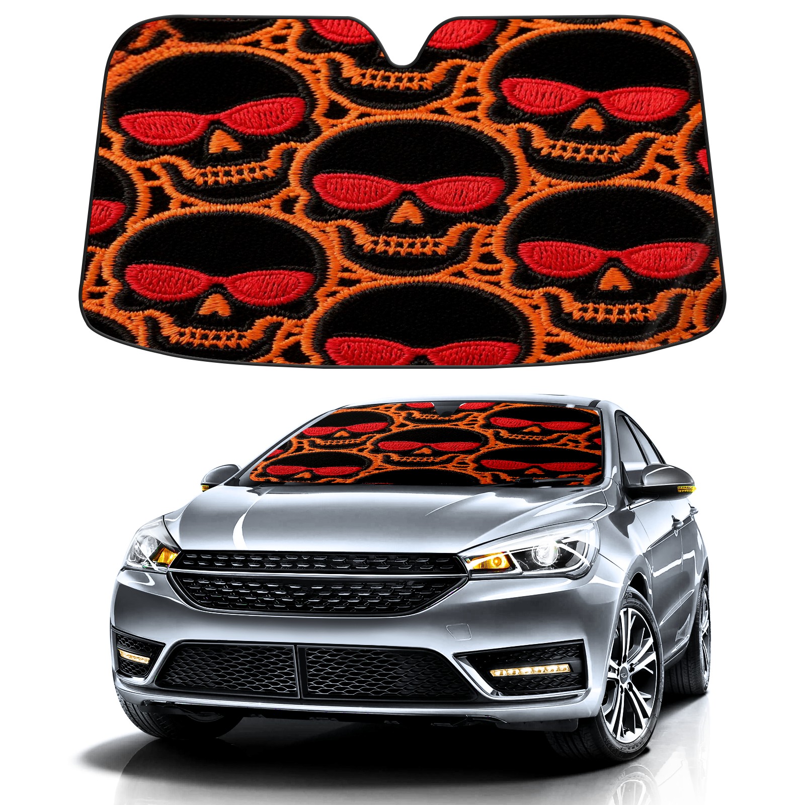Foldable Aluminum Foil Polyester Car Sunshade Pad | 99% Heat Insulation & Sun Protection | Transparent Number Pocket | Lightweight & Portable | Fits Cars/SUVs/Trucks 13391763462033865