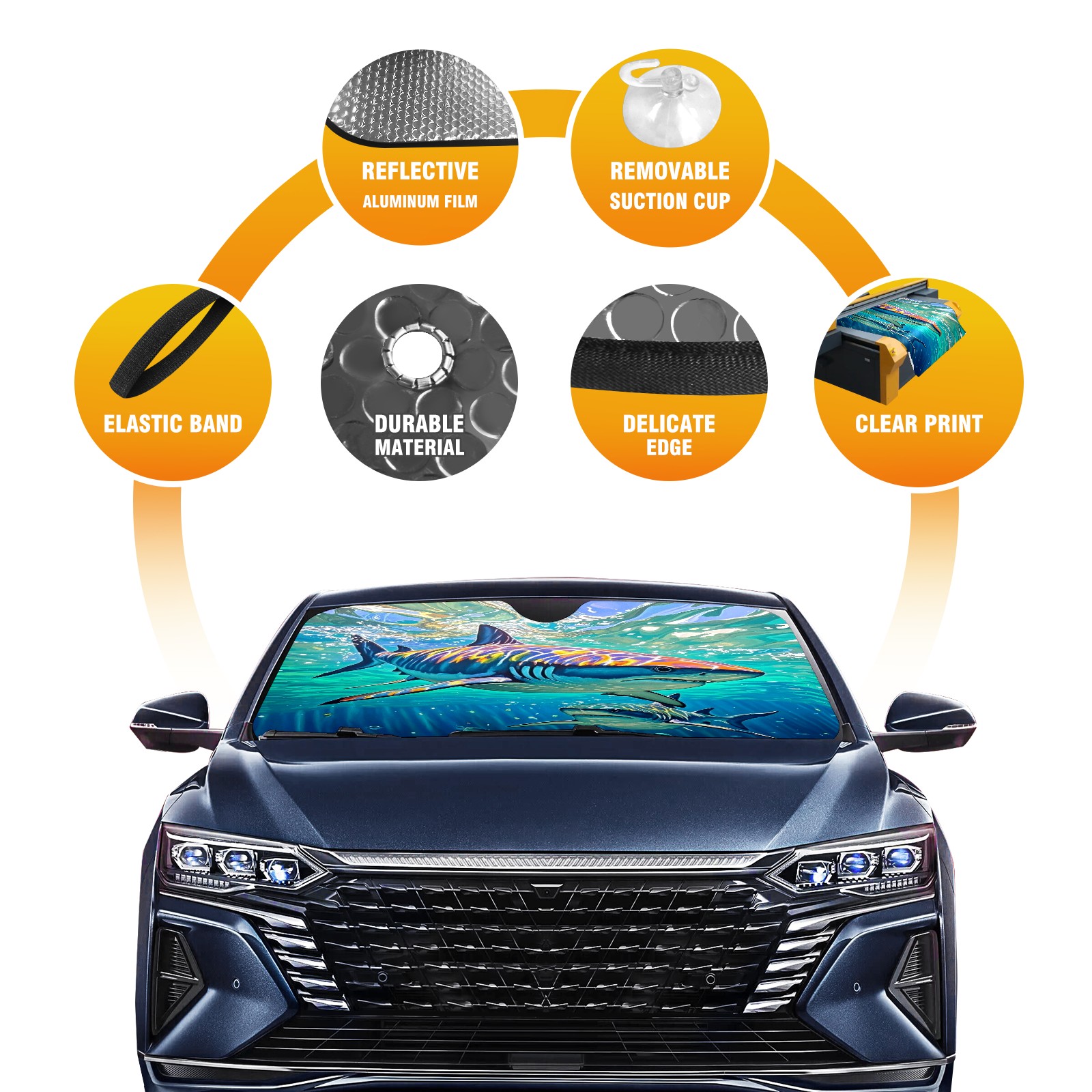 • <p>This sunshade pad is made of aluminum foil and polyester material, paired with high-quality aluminum foil bubbles, which can efficiently block ultraviolet rays, provide strong insulation and cooling, easily reduce the temperature inside the car, and save fuel when turning on the air conditioning, keeping the car cool at all times. Processed with transparent adhesive technology, the material is sturdy and durable, capable of long-term protection of the car dashboard, steering wheel, and seats, and is not afraid of sunlight erosion. The transparent pocket in the bottom right corner of the front is convenient for placing contact phone cards, and temporary parking with a number is no longer a hassle. Foldable design combined with compact size, lightweight and portable, does not take up interior space after storage, making it easy to carry for daily commuting or outdoor travel. There is no need to worry about cleaning, it is recommended to wash by hand. Regular cleaning can keep the sunshade pad clean as new and provide long-lasting protection.</p>