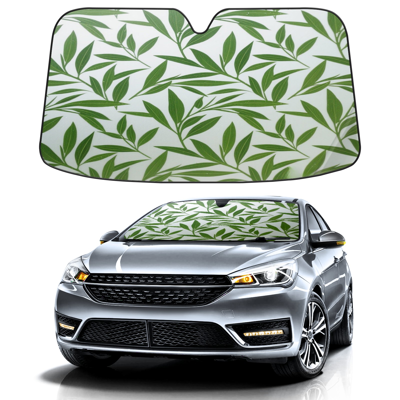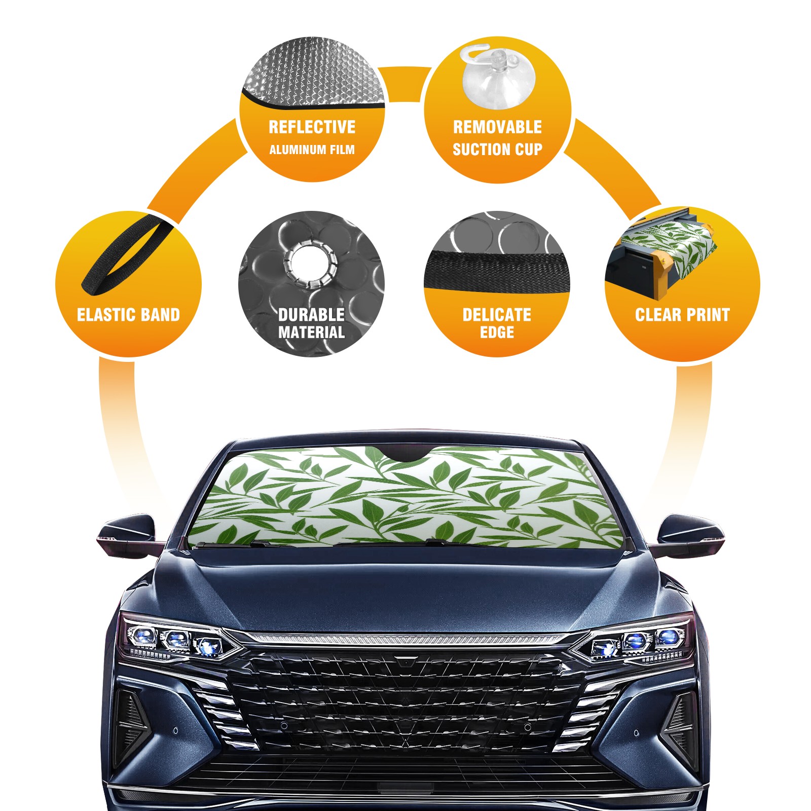 Foldable Aluminum Foil Polyester Car Sunshade Pad | 99% Heat Insulation & Sun Protection | Transparent Number Pocket | Lightweight & Portable | Fits Cars/SUVs/Trucks 13391675220345306