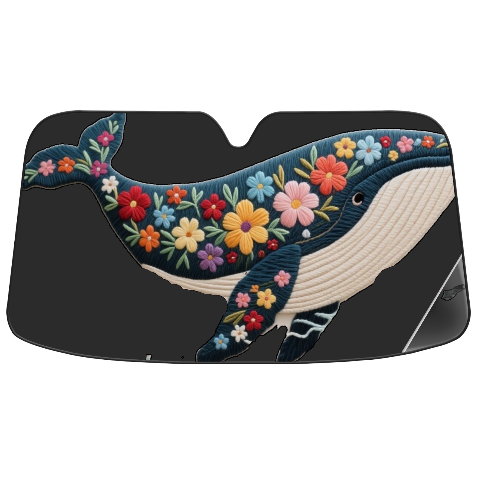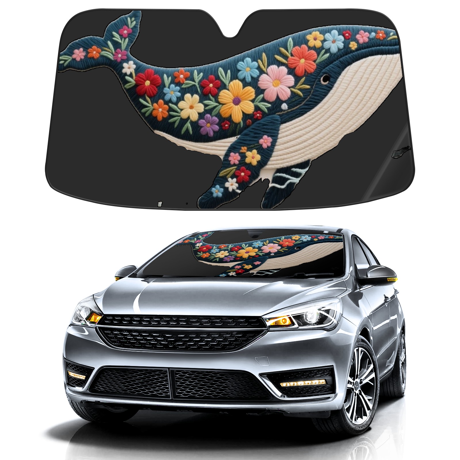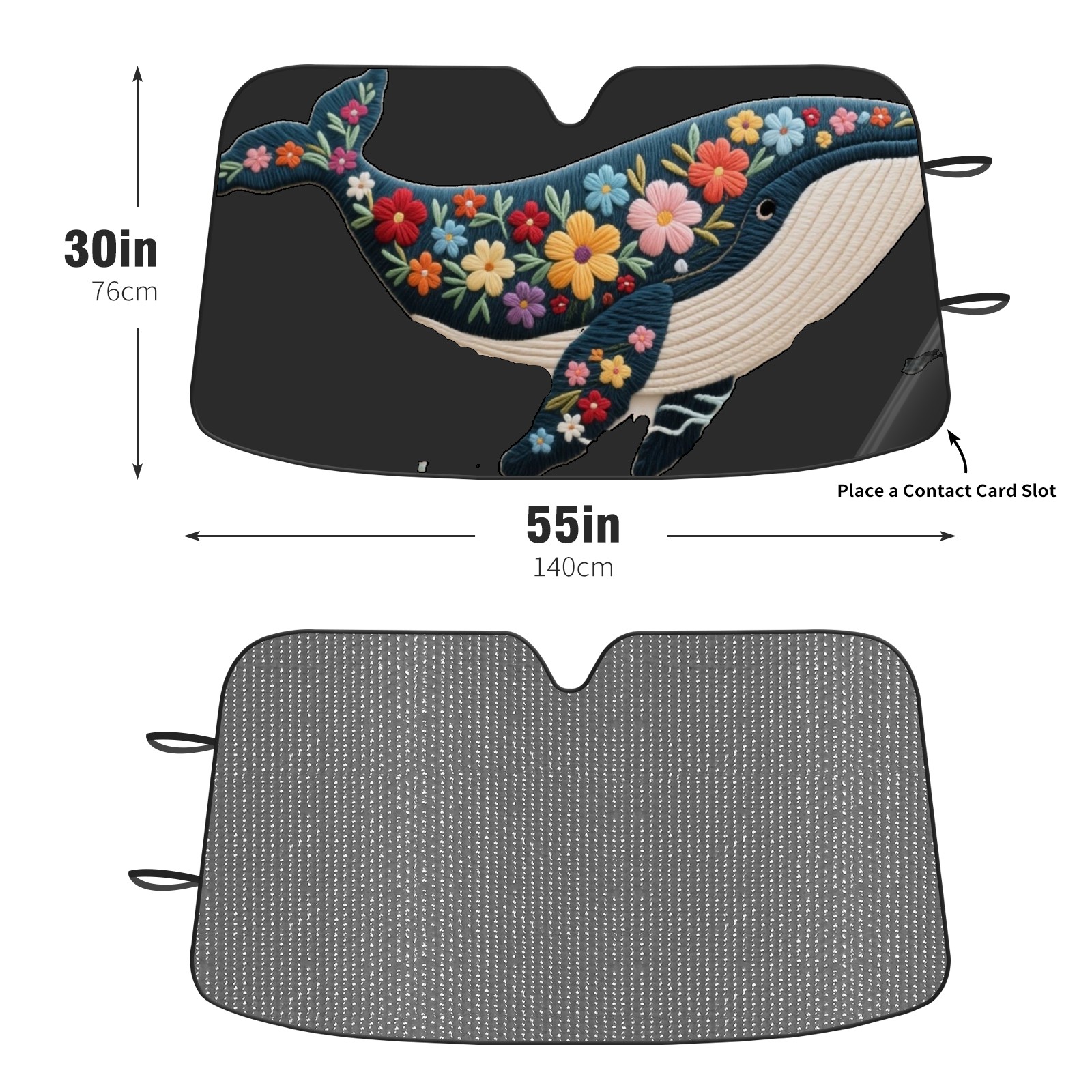 Foldable Aluminum Foil Polyester Car Sunshade Pad | 99% Heat Insulation & Sun Protection | Transparent Number Pocket | Lightweight & Portable | Fits Cars/SUVs/Trucks 花鲸鱼