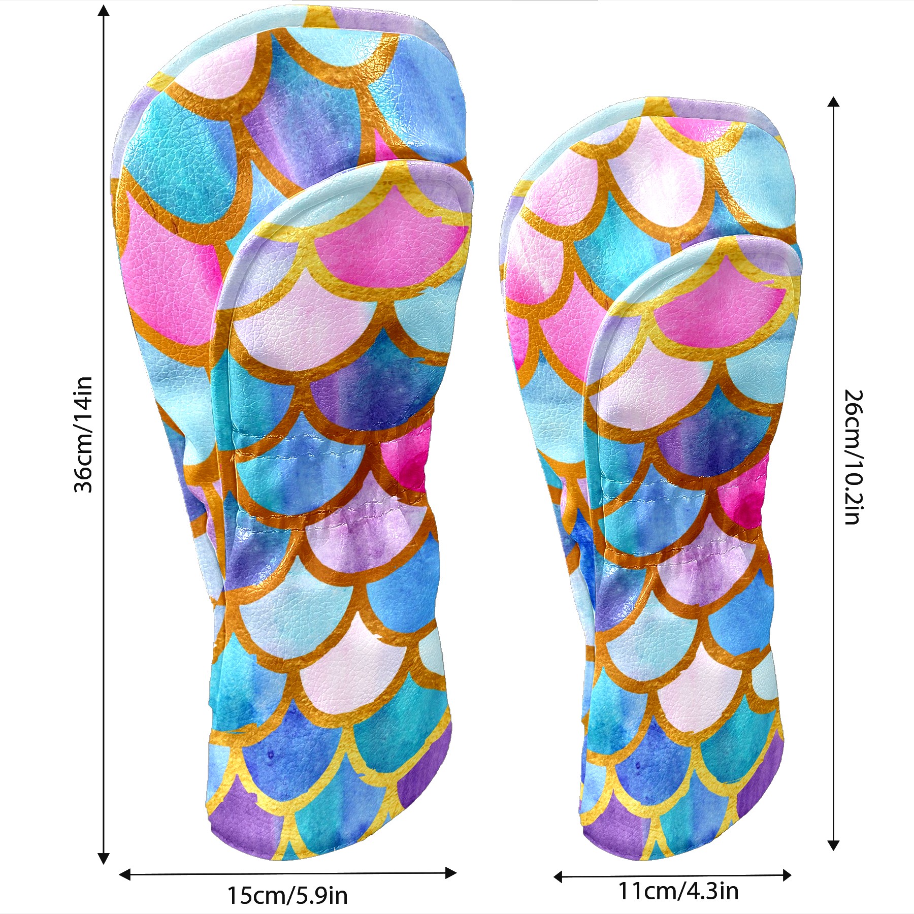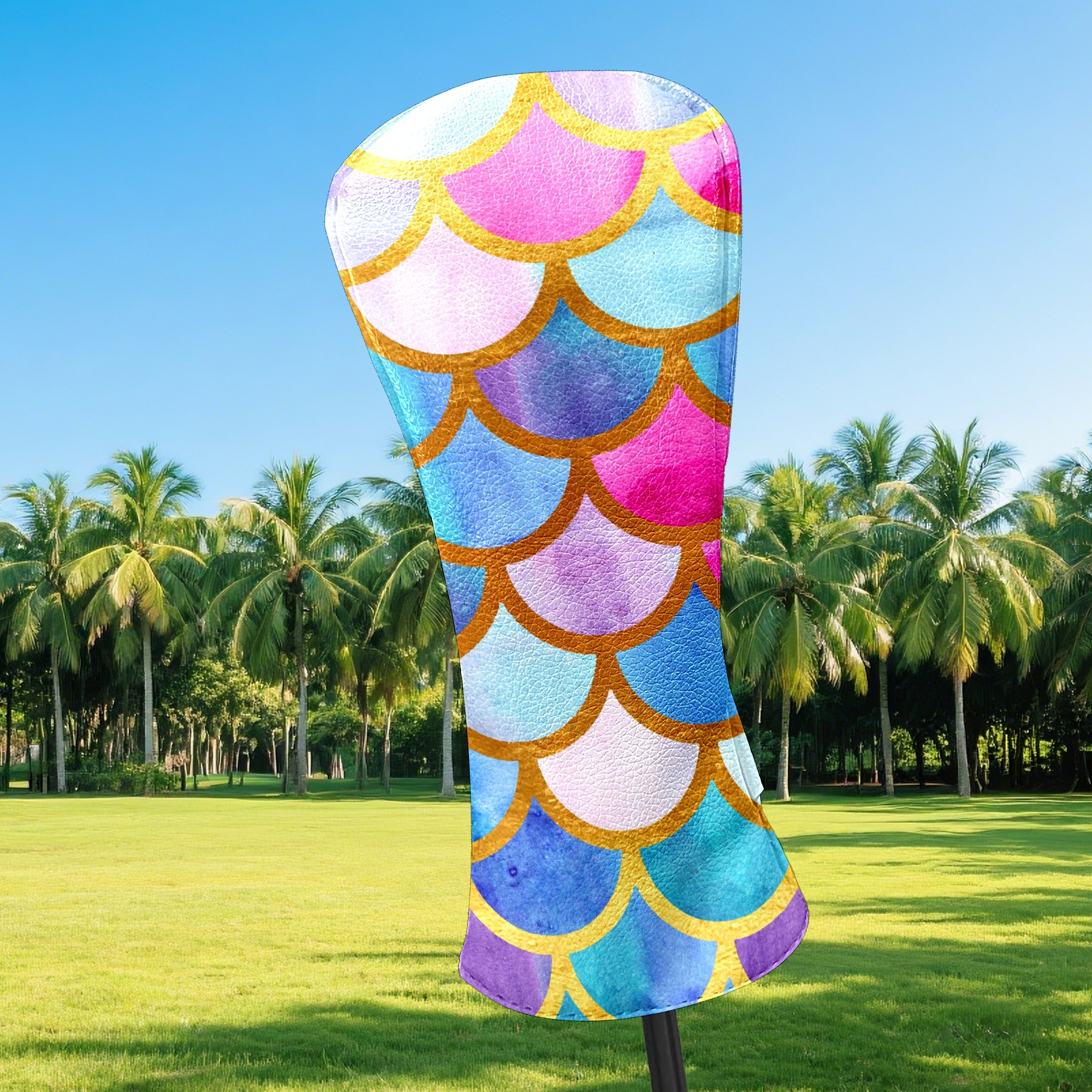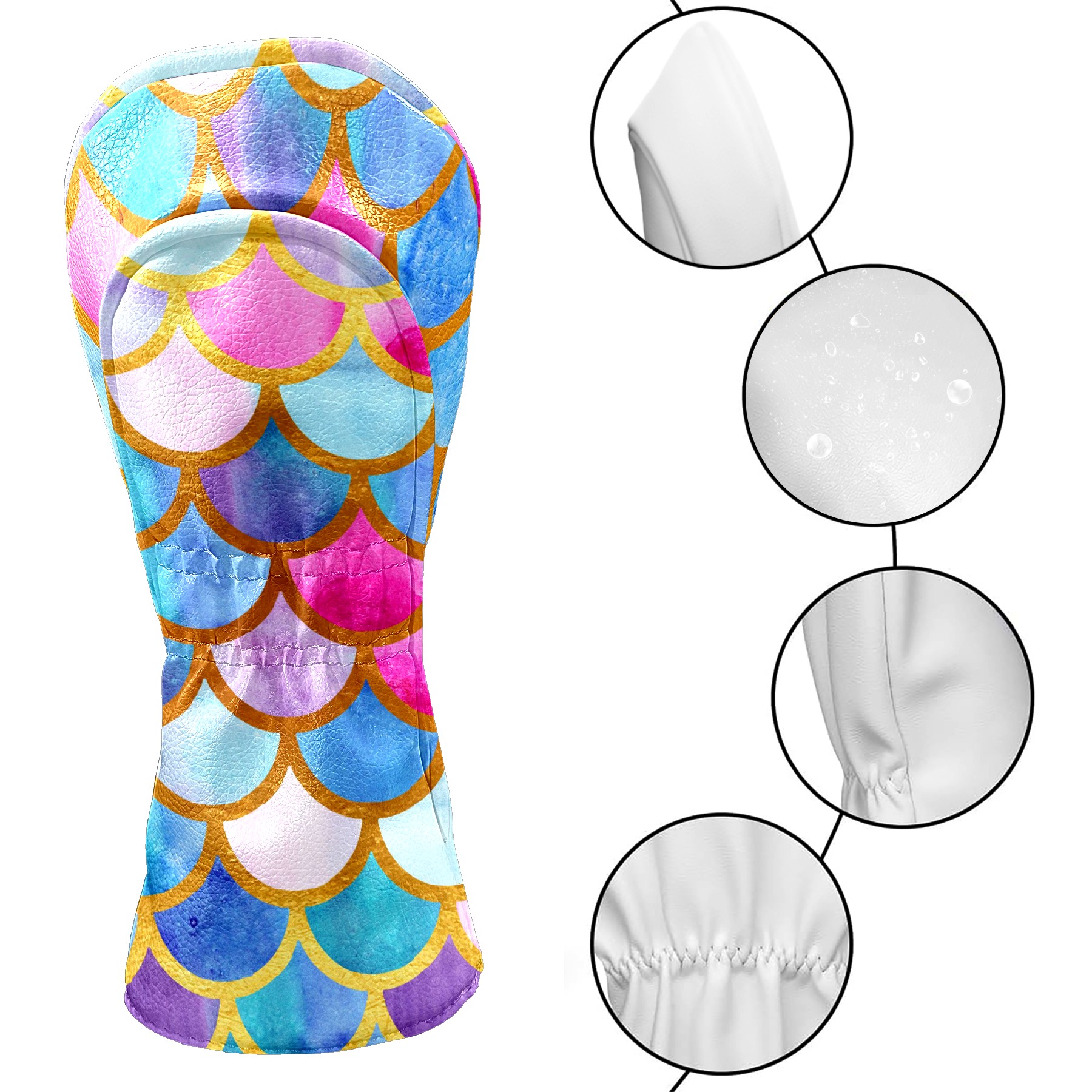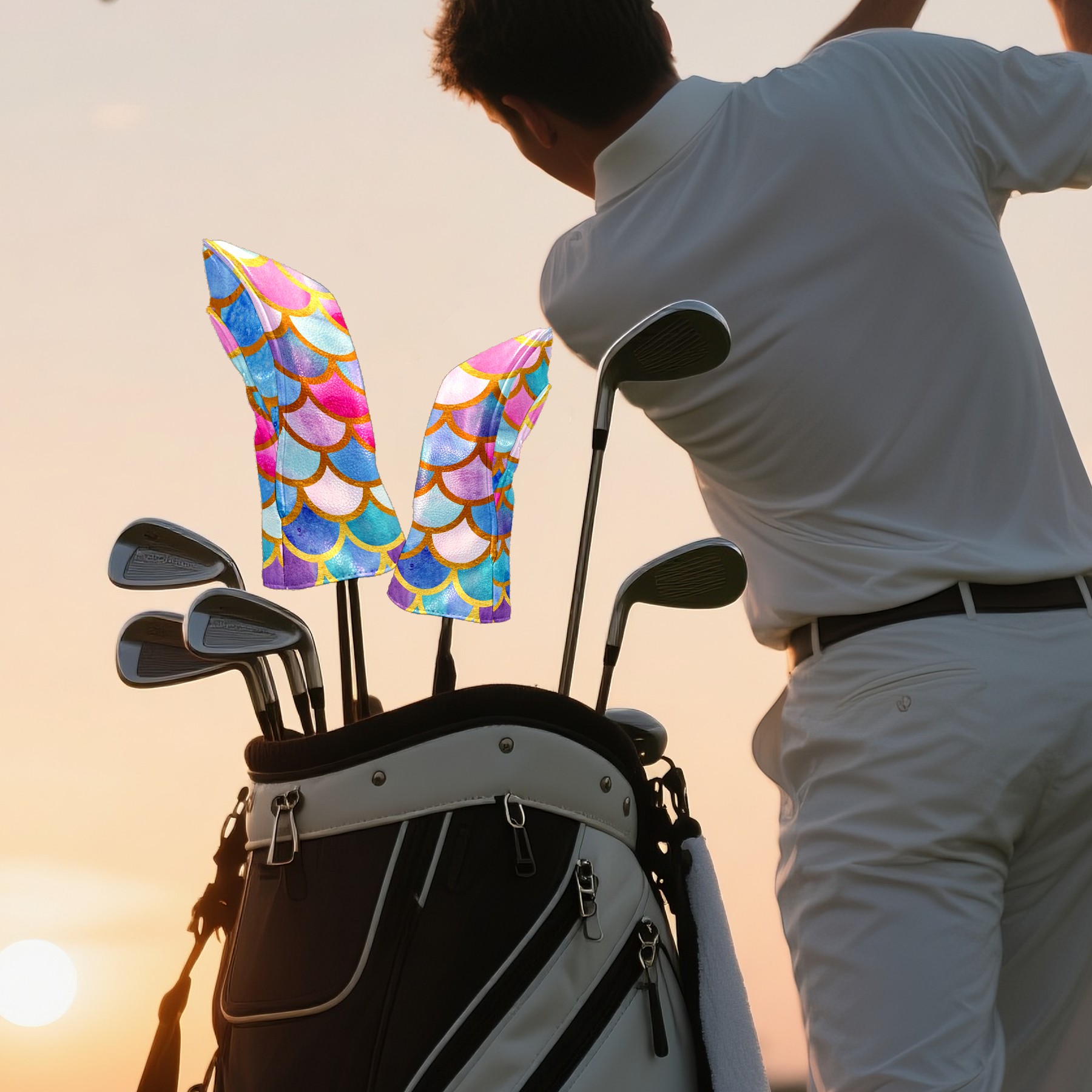 Black Golf Club Head Cover Golf Accessories Head Covers Set for Driver & Fairway Woods Mermaid Fish Colorful Scales