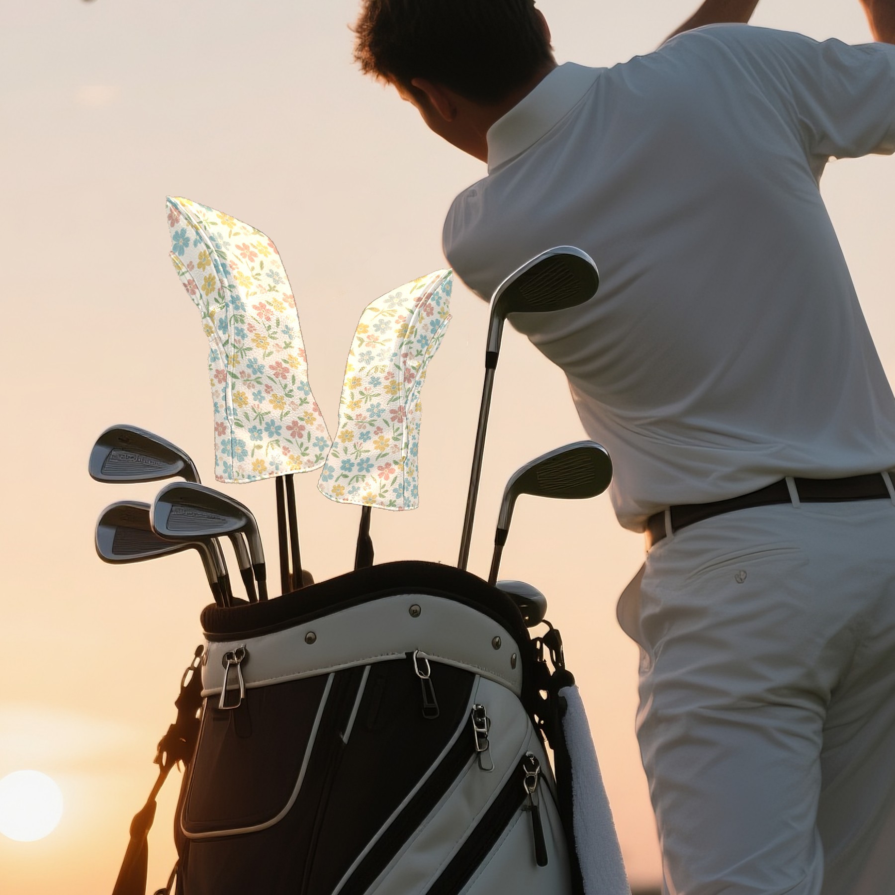 Black Golf Club Head Cover Golf Accessories Head Covers Set for Driver & Fairway Woods Yellow Little Flower