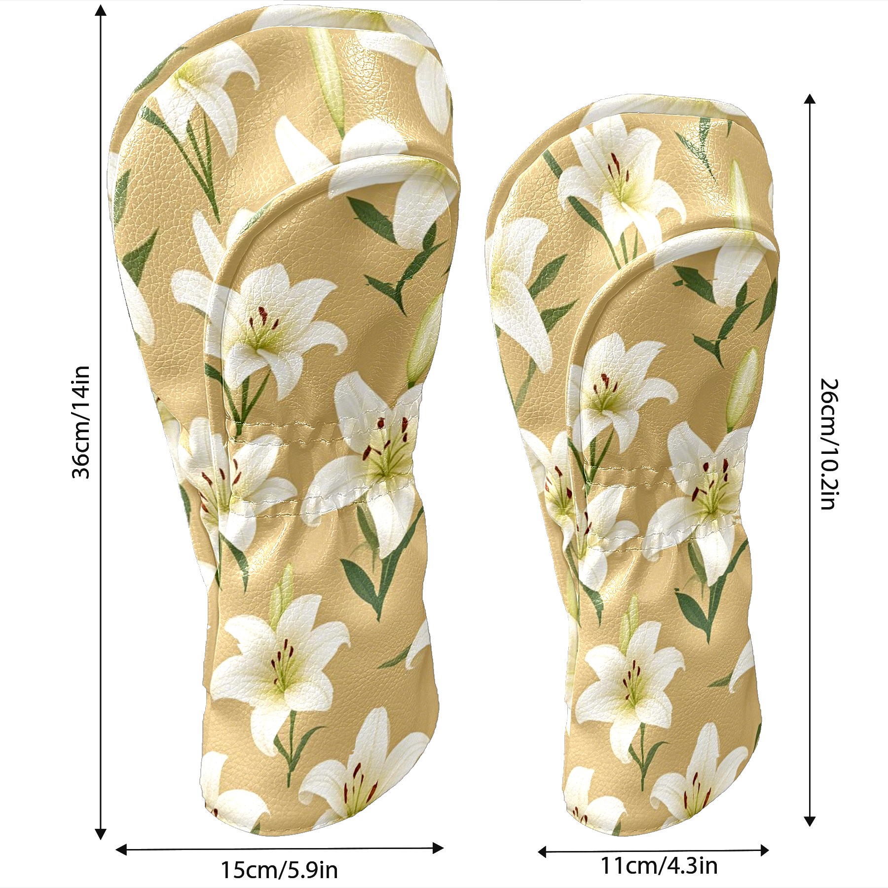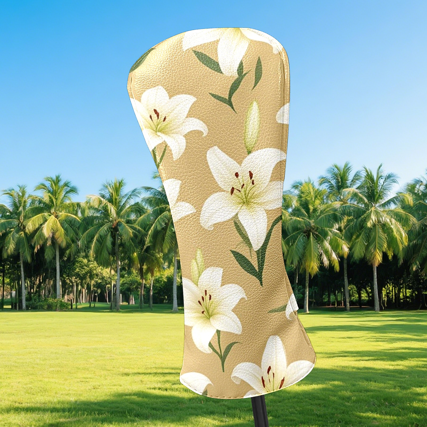 Black Golf Club Head Cover Golf Accessories Head Covers Set for Driver & Fairway Woods White Lilies