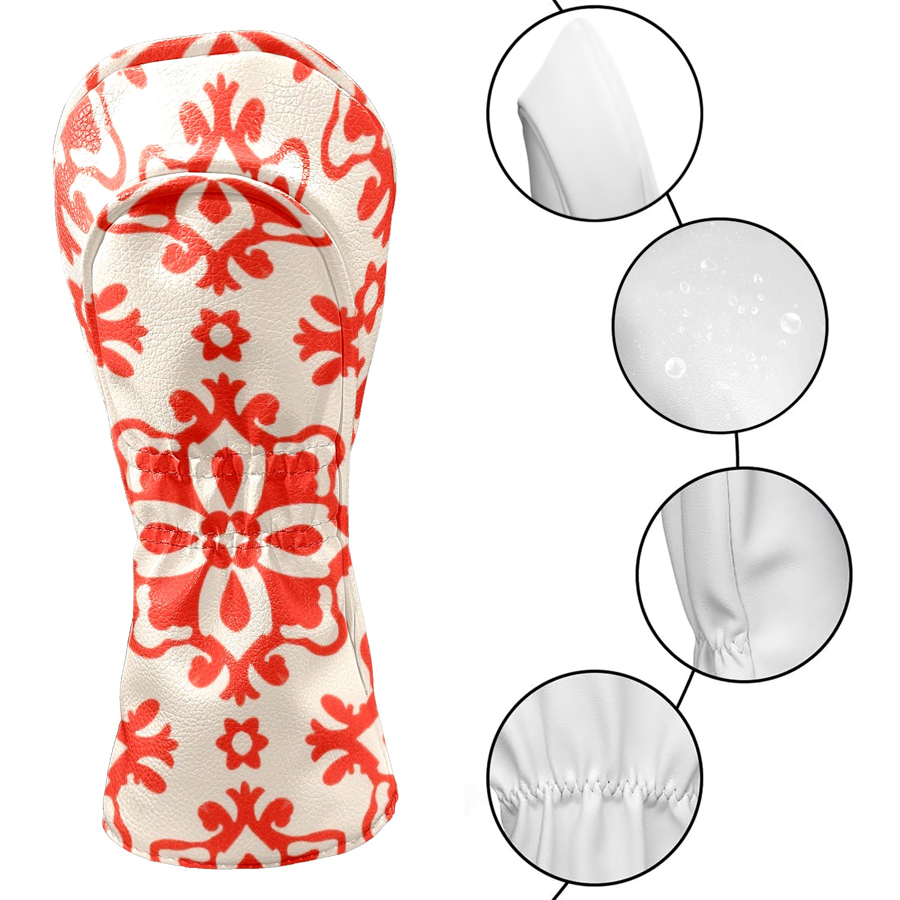 Black Golf Club Head Cover Golf Accessories Head Covers Set for Driver & Fairway Woods Red Flower