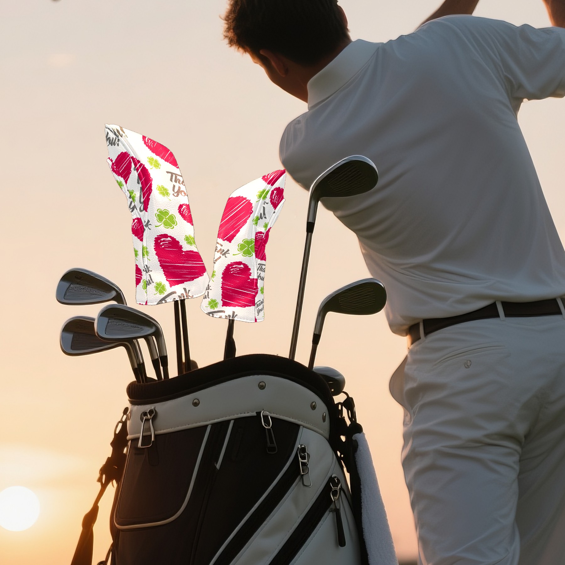 Black Golf Club Head Cover Golf Accessories Head Covers Set for Driver & Fairway Woods 爱心8