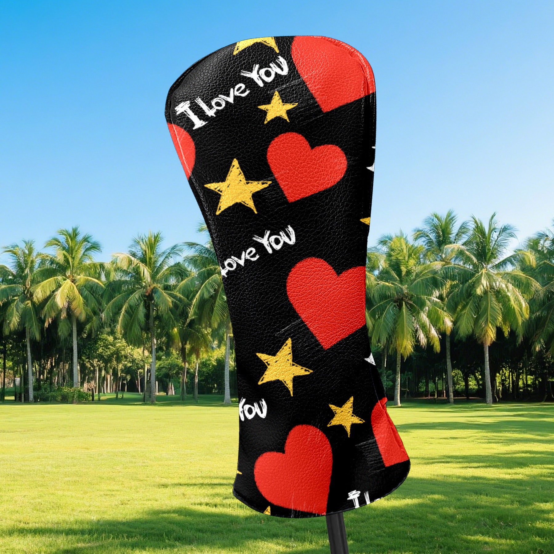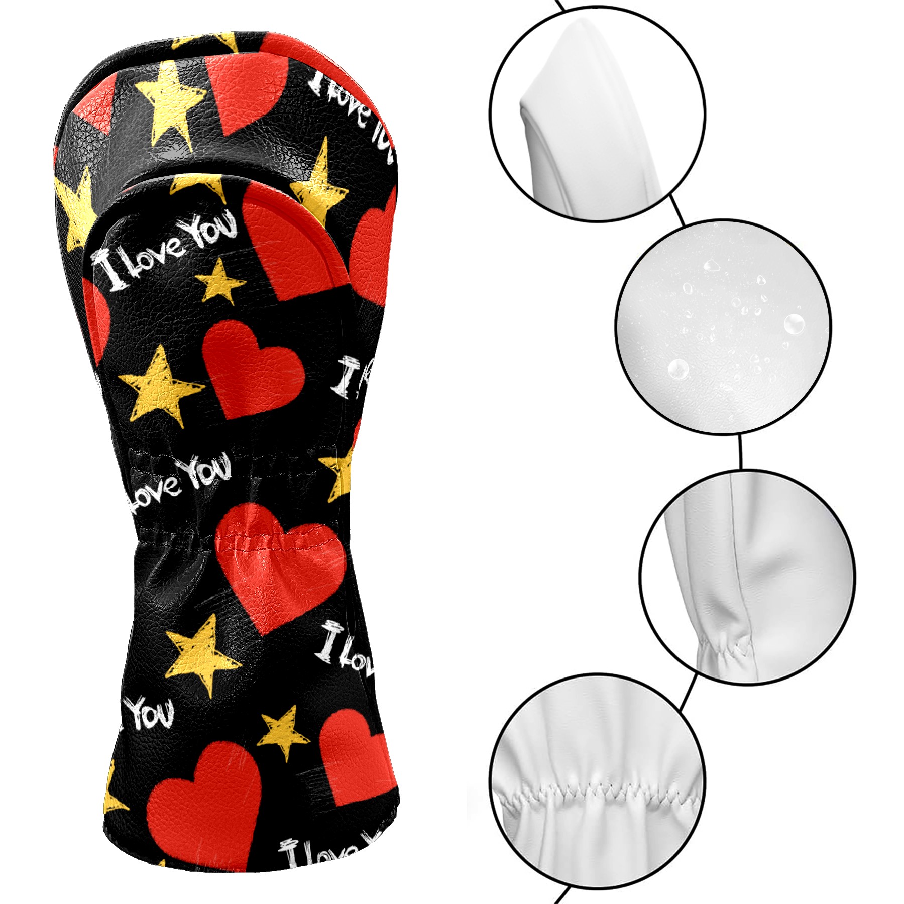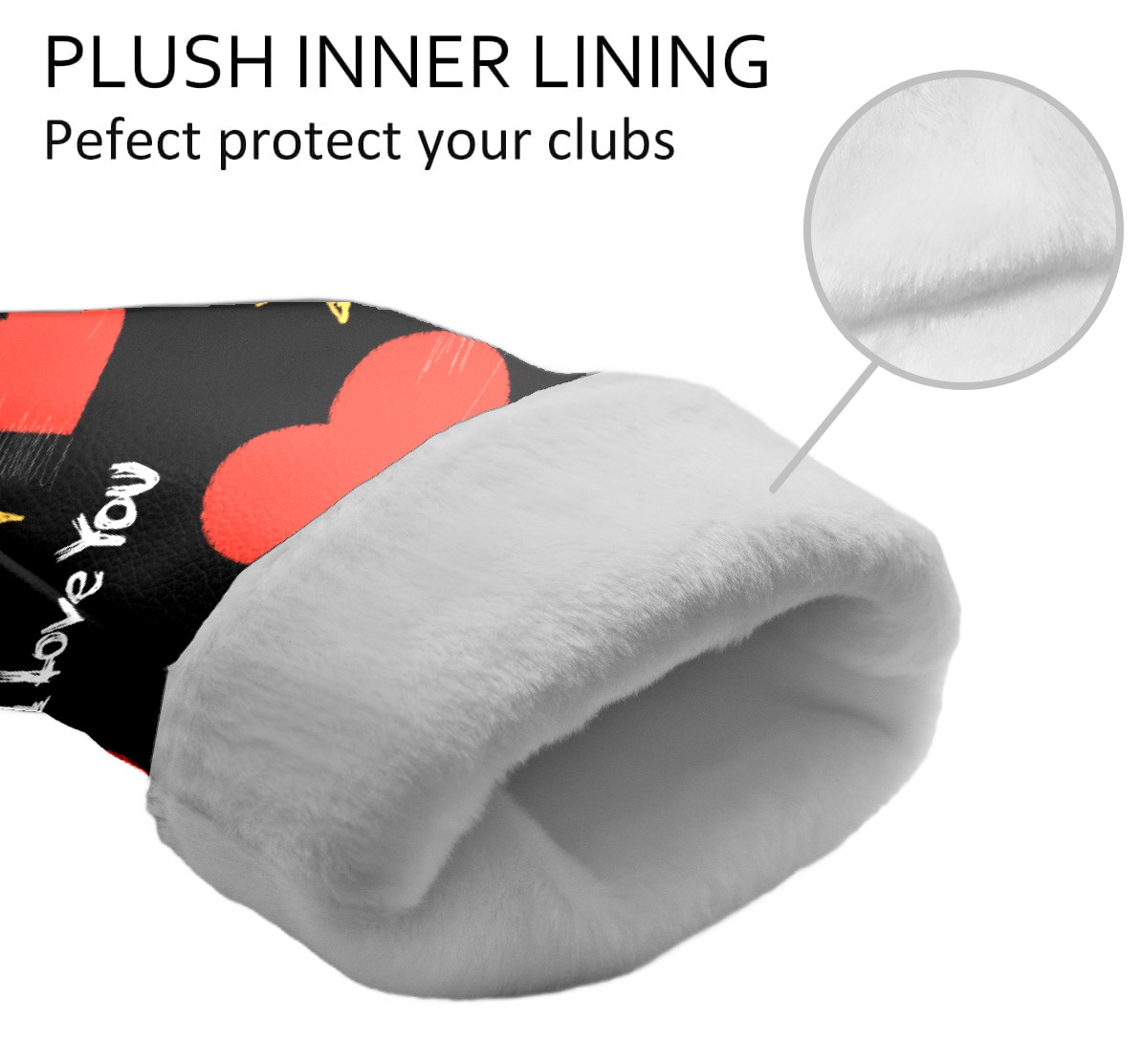 Black Golf Club Head Cover Golf Accessories Head Covers Set for Driver & Fairway Woods 爱心7