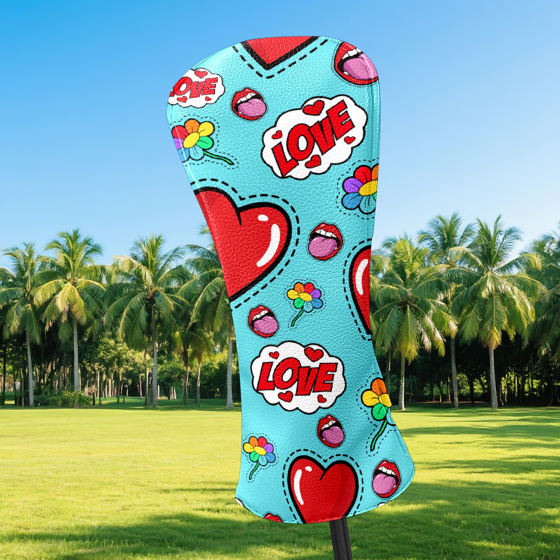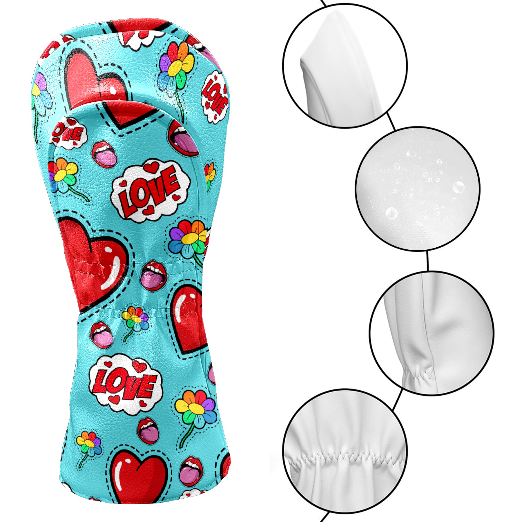 Black Golf Club Head Cover Golf Accessories Head Covers Set for Driver & Fairway Woods 爱心2
