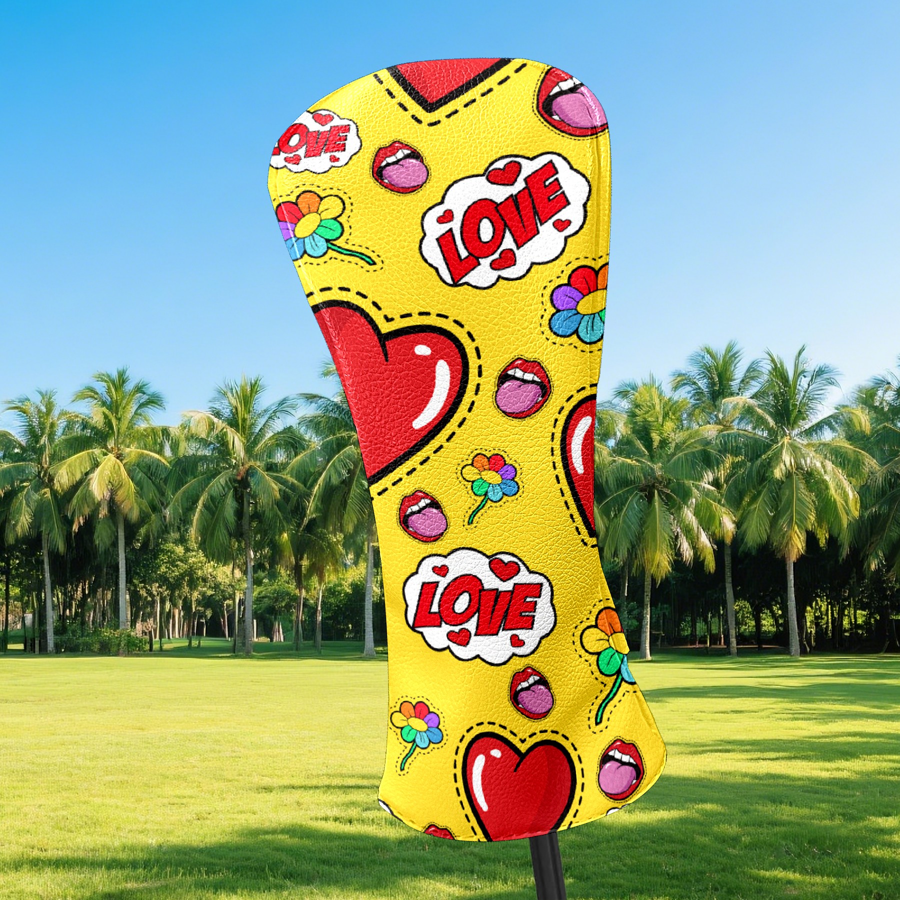 Black Golf Club Head Cover Golf Accessories Head Covers Set for Driver & Fairway Woods 爱心3