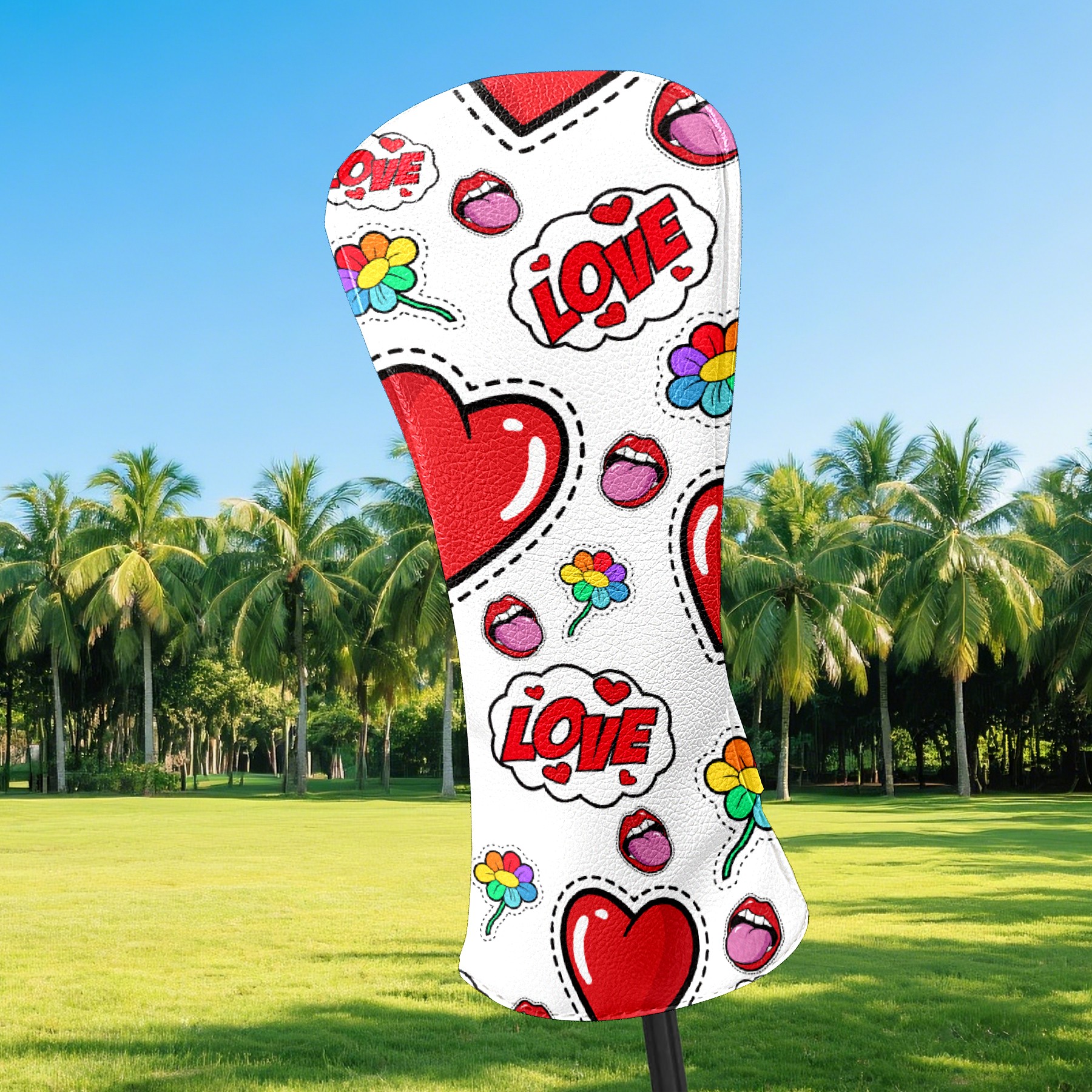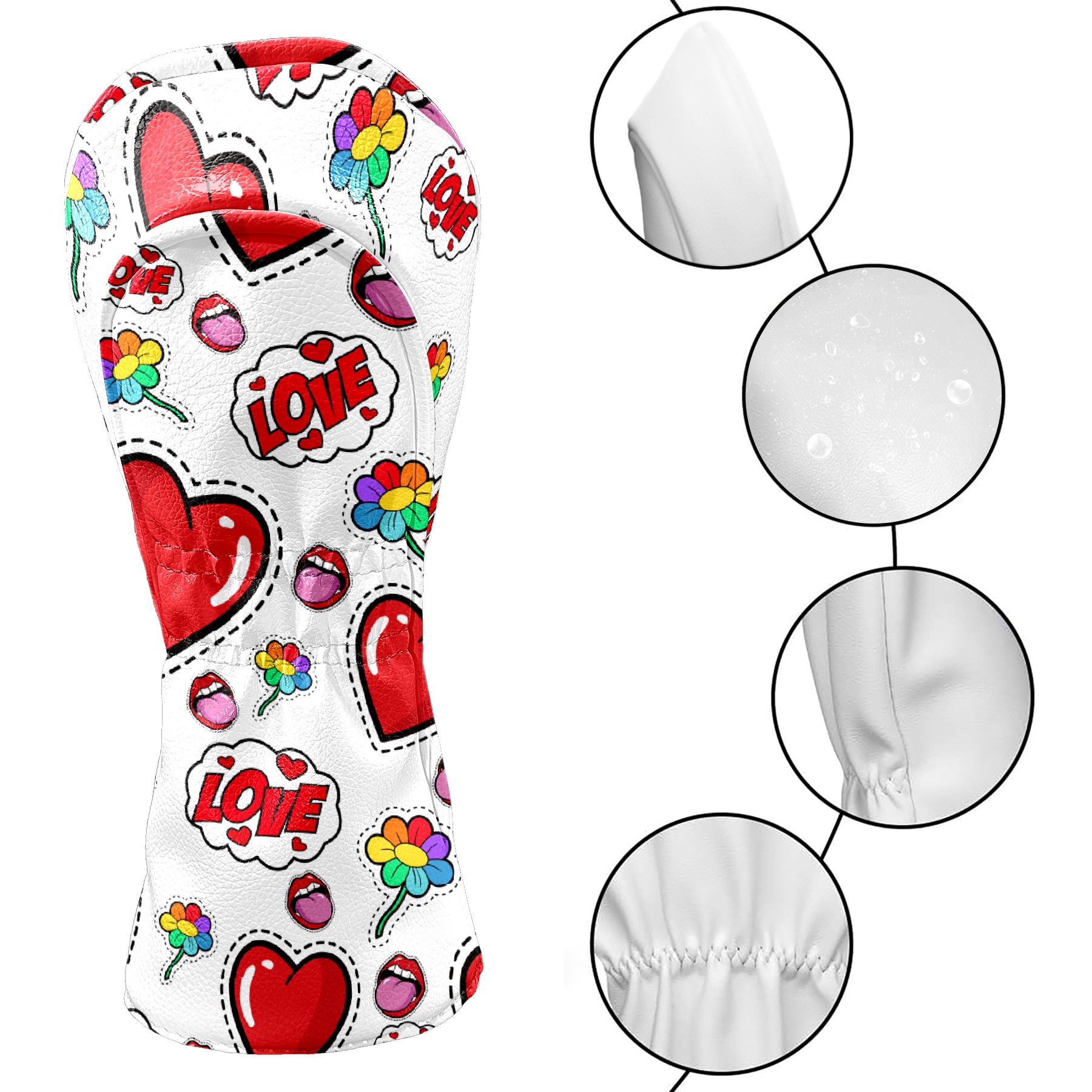 Black Golf Club Head Cover Golf Accessories Head Covers Set for Driver & Fairway Woods 爱心