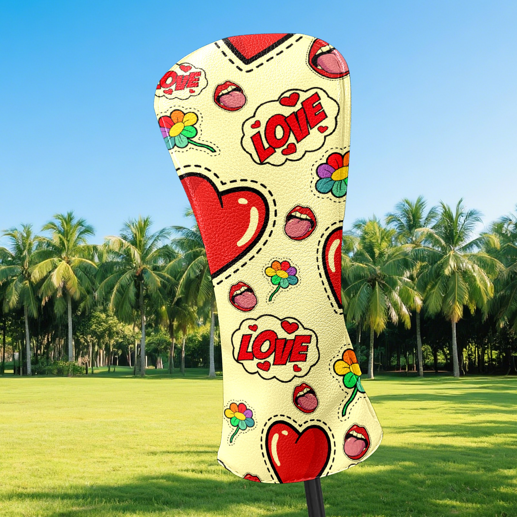 Black Golf Club Head Cover Golf Accessories Head Covers Set for Driver & Fairway Woods 爱心1