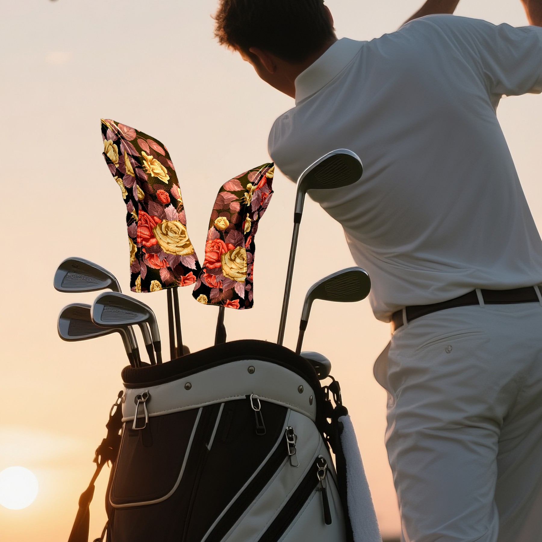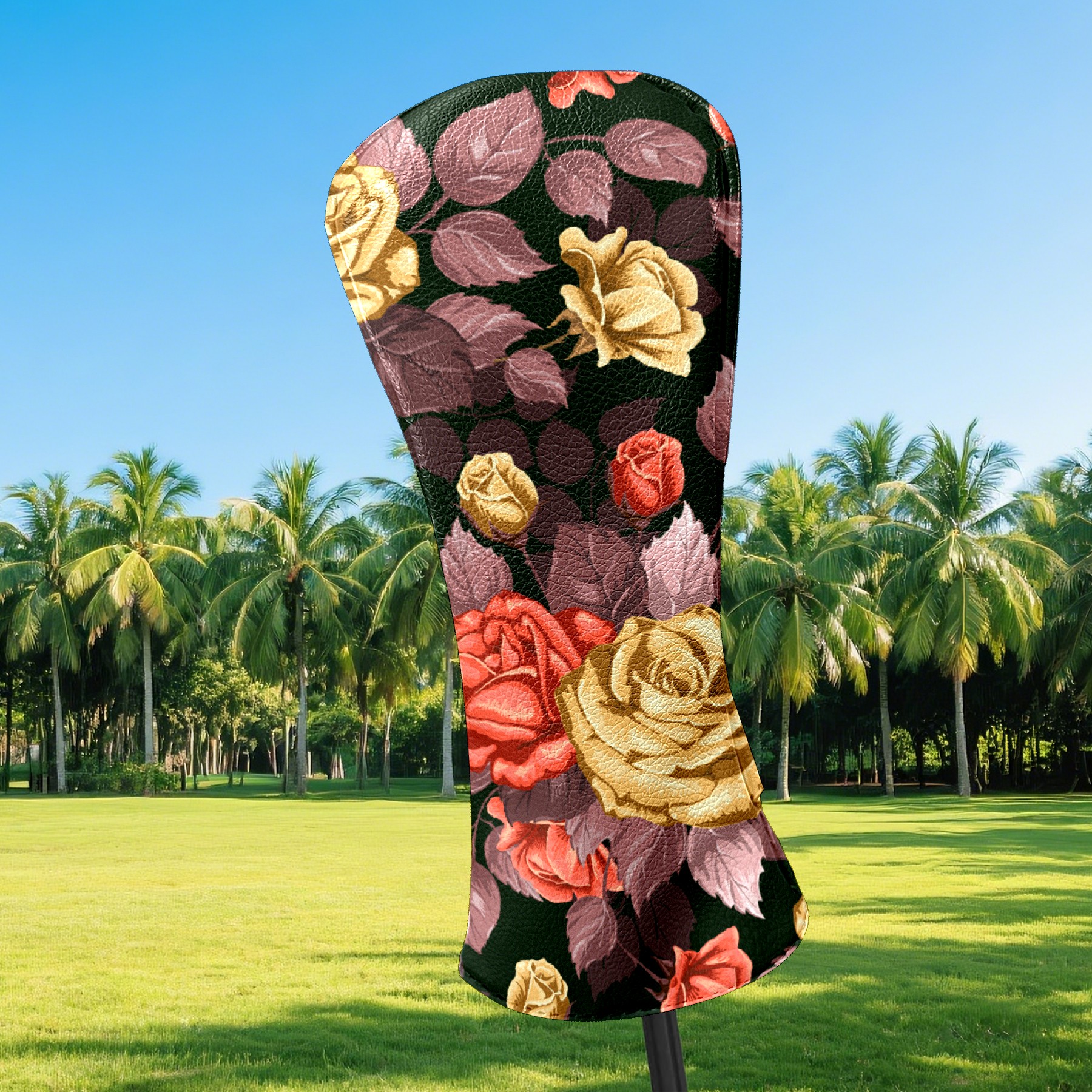 Black Golf Club Head Cover Golf Accessories Head Covers Set for Driver & Fairway Woods 玫瑰花1