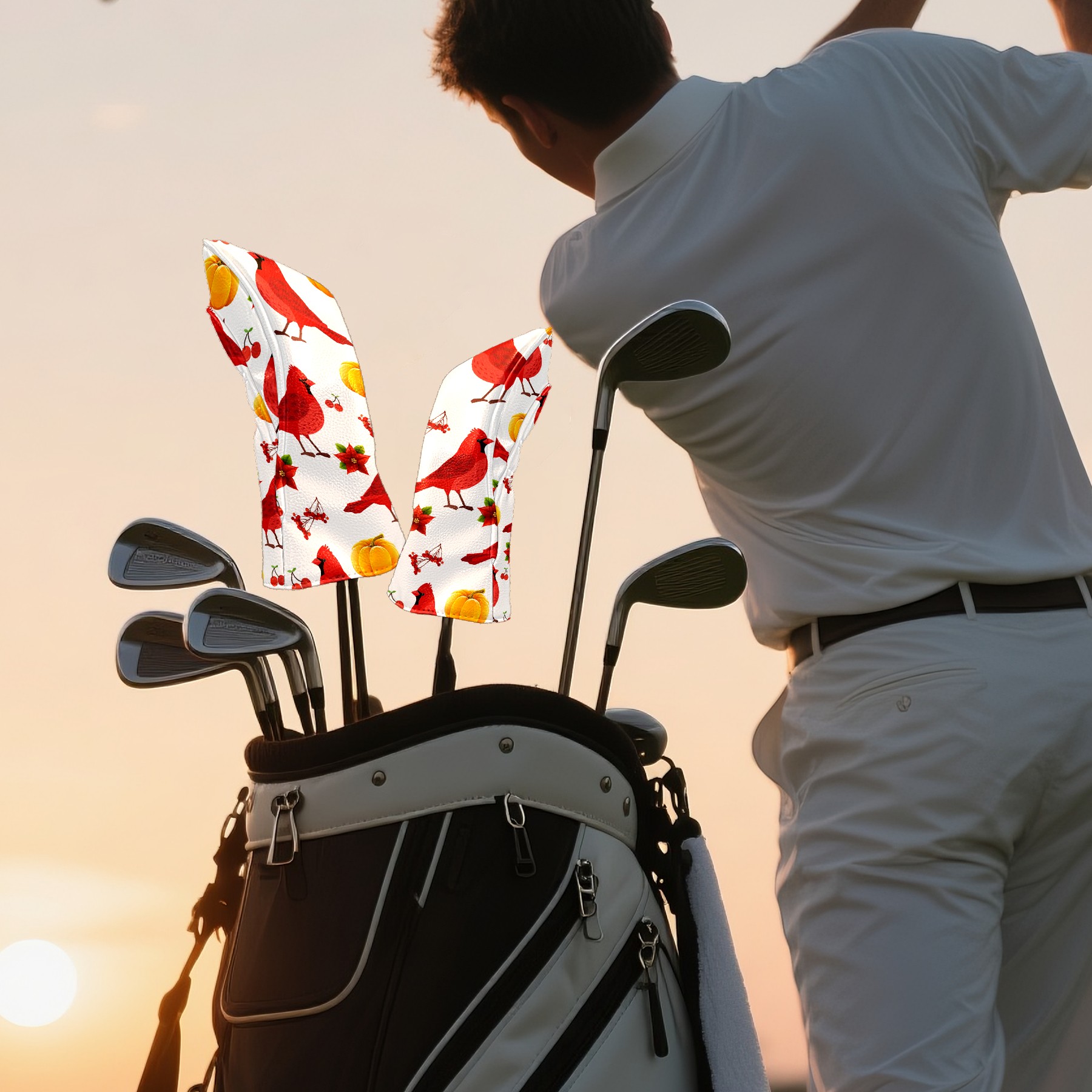 Black Golf Club Head Cover Golf Accessories Head Covers Set for Driver & Fairway Woods 红色麻雀9