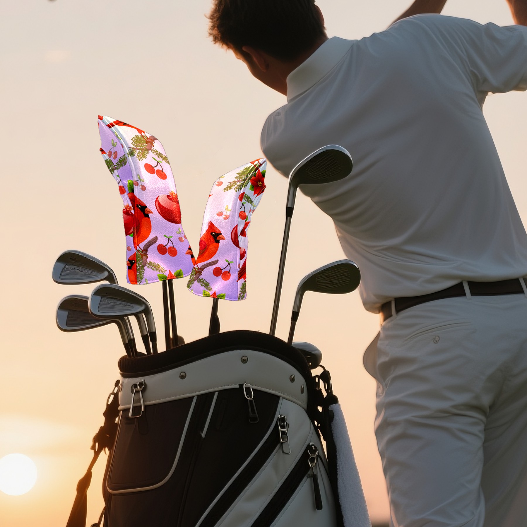 Black Golf Club Head Cover Golf Accessories Head Covers Set for Driver & Fairway Woods 红色麻雀4