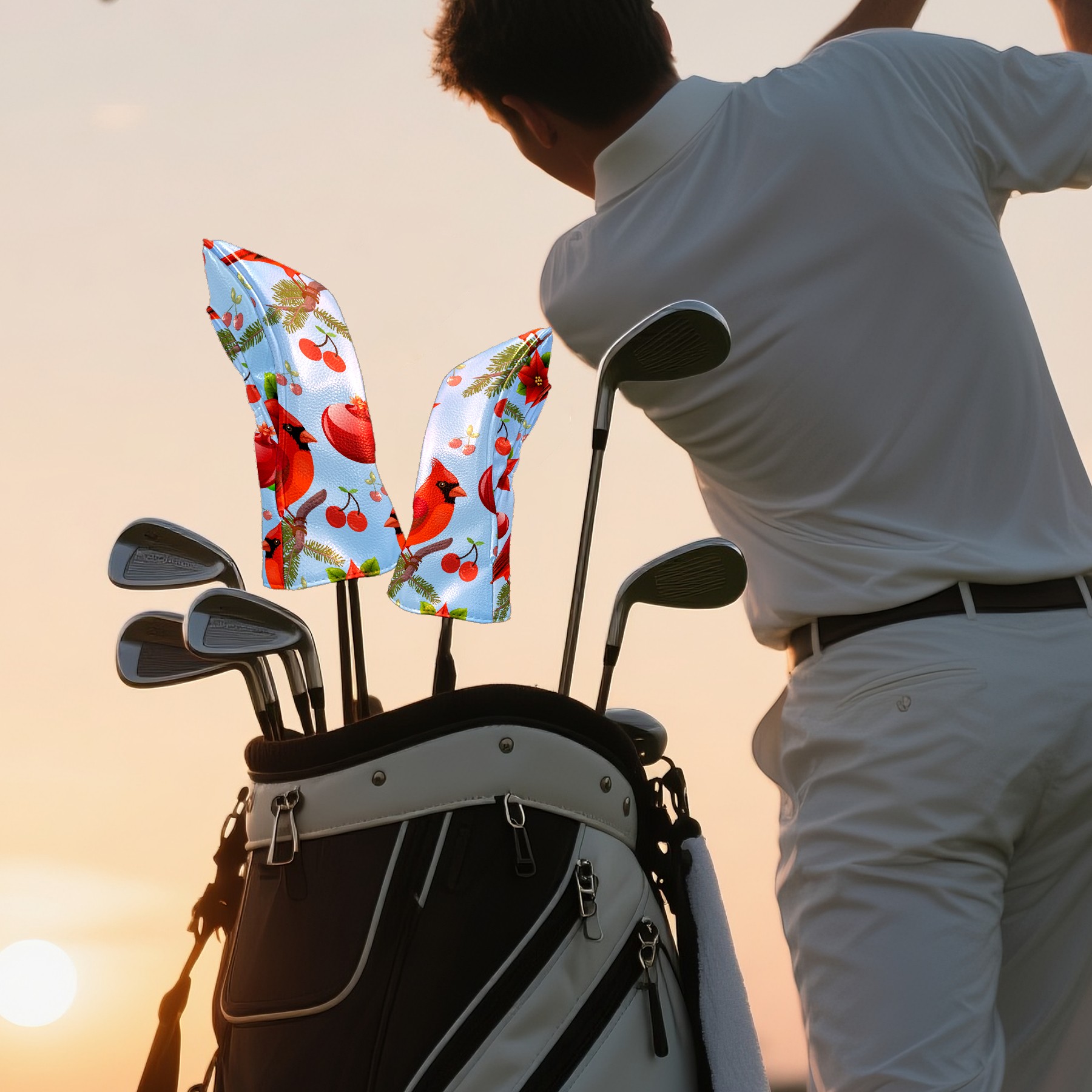 Black Golf Club Head Cover Golf Accessories Head Covers Set for Driver & Fairway Woods 红色麻雀2