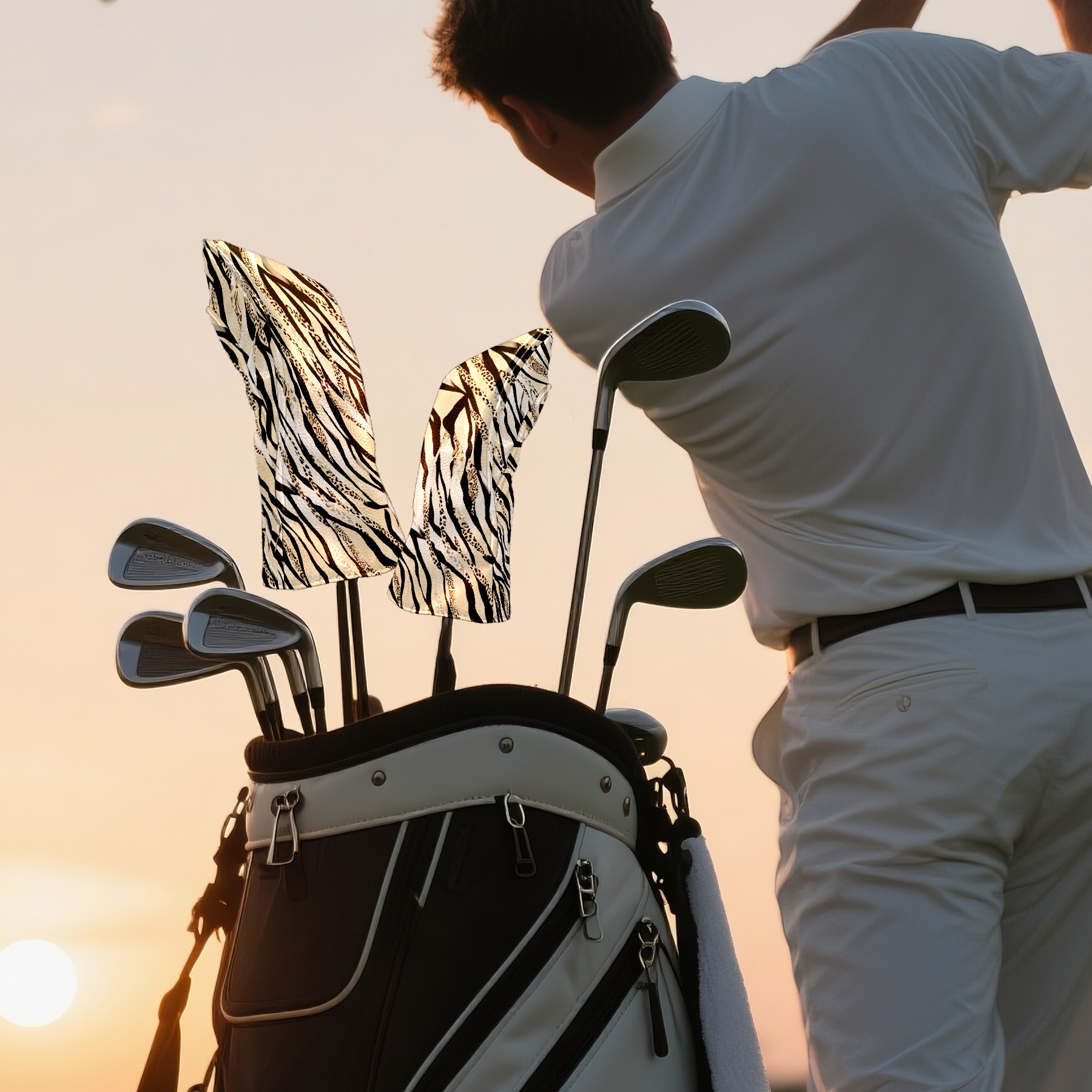 Black Golf Club Head Cover Golf Accessories Head Covers Set for Driver & Fairway Woods Zebra Pattern