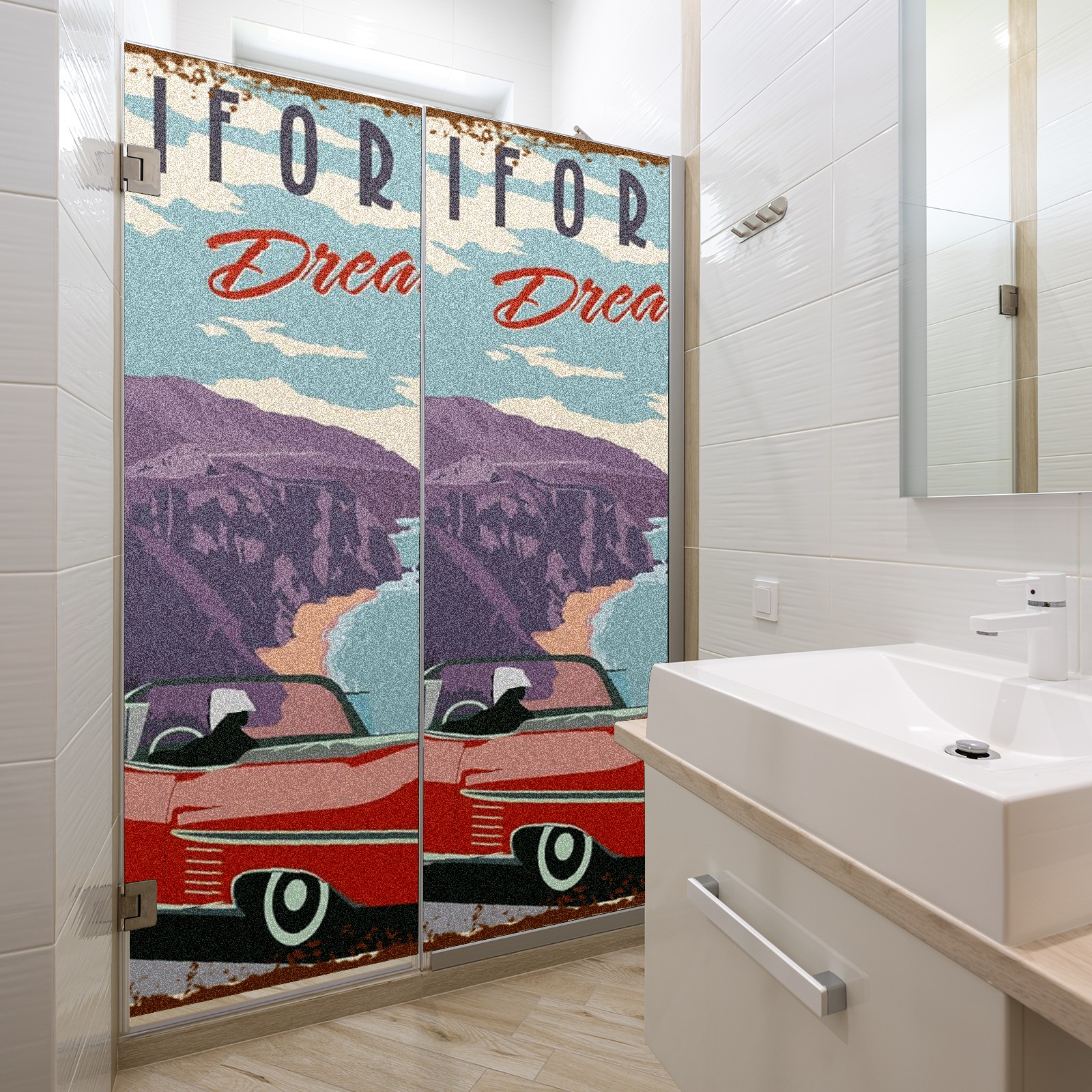 Single sided frosted full screen printed glass sticker soft pink green stripe seamless embroidery pattern privacy decoration Car