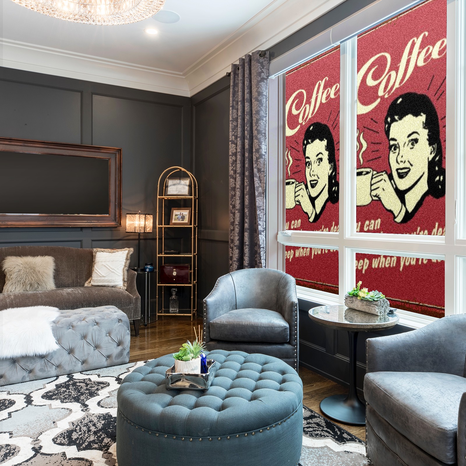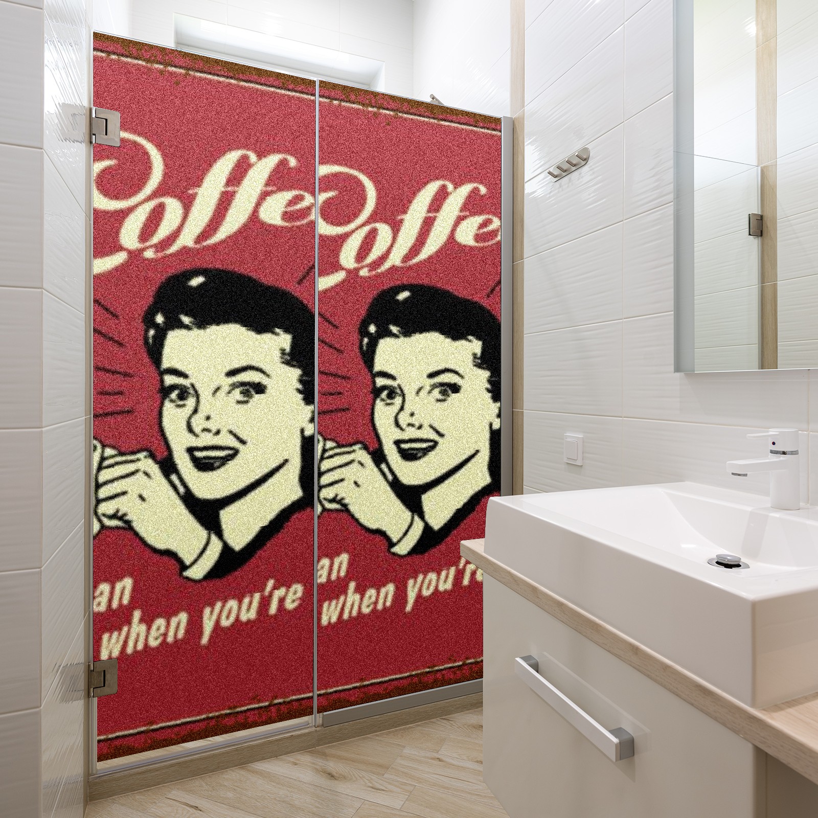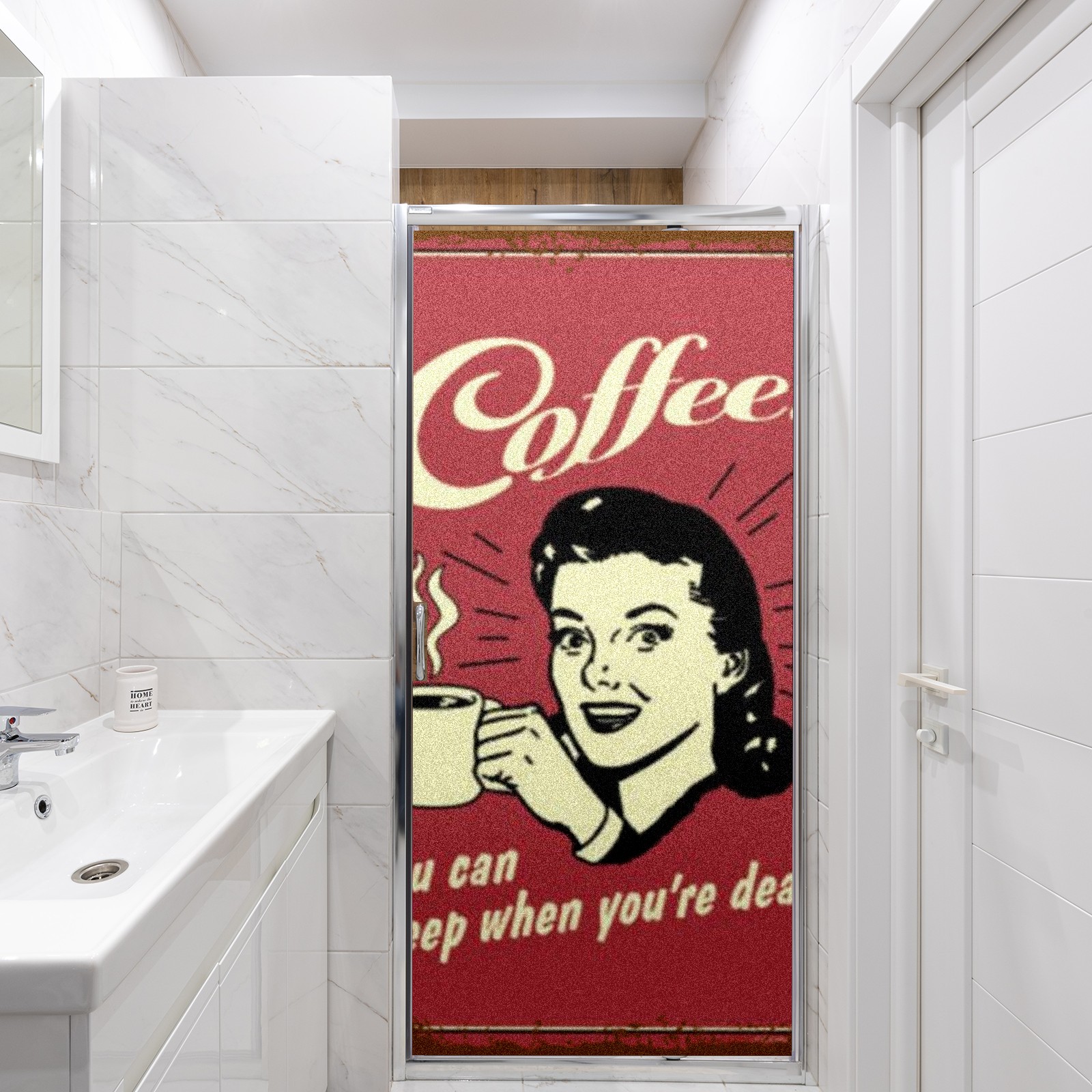 Single sided frosted full screen printed glass sticker soft pink green stripe seamless embroidery pattern privacy decoration Coffee