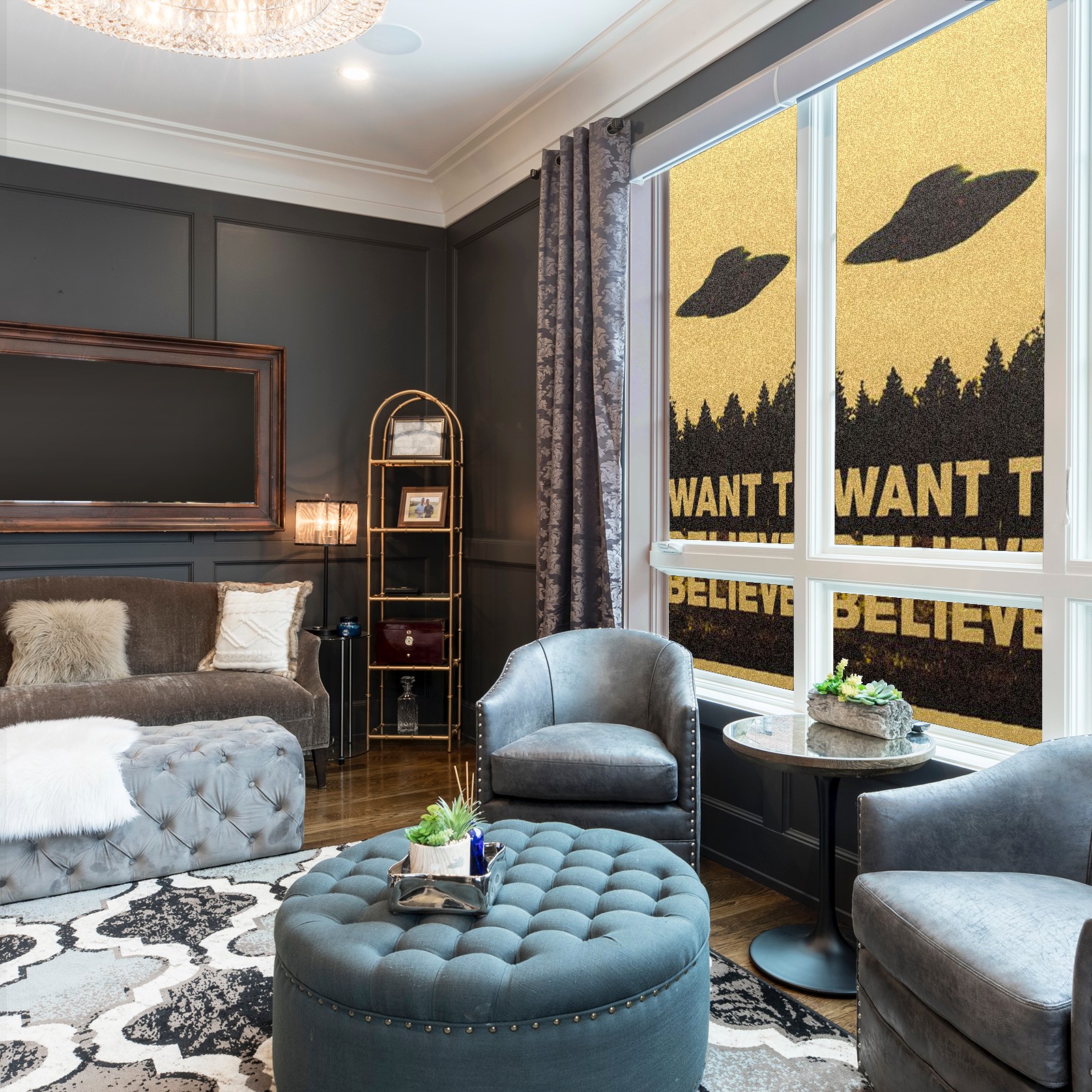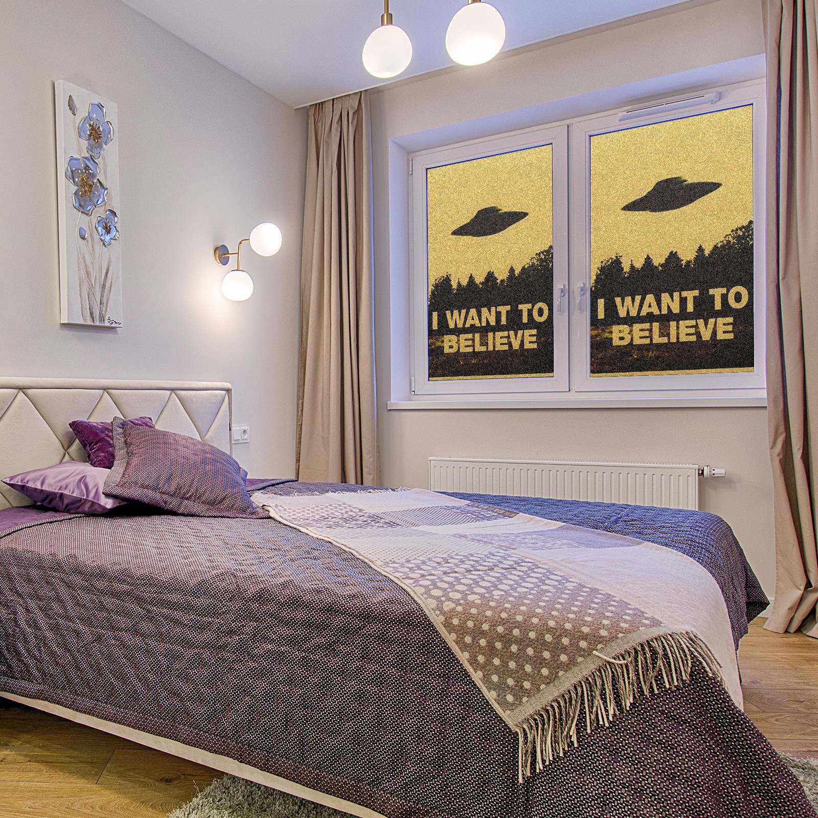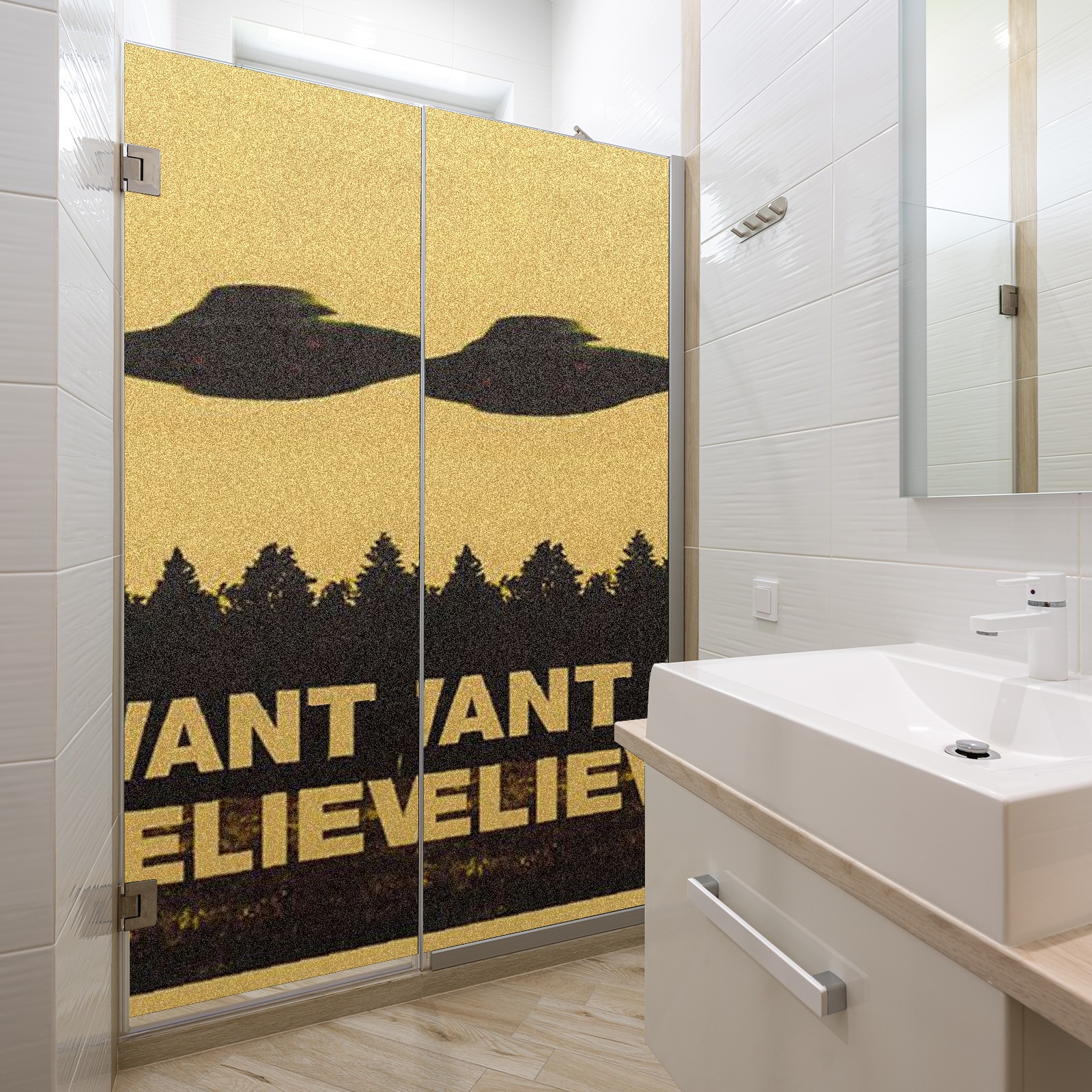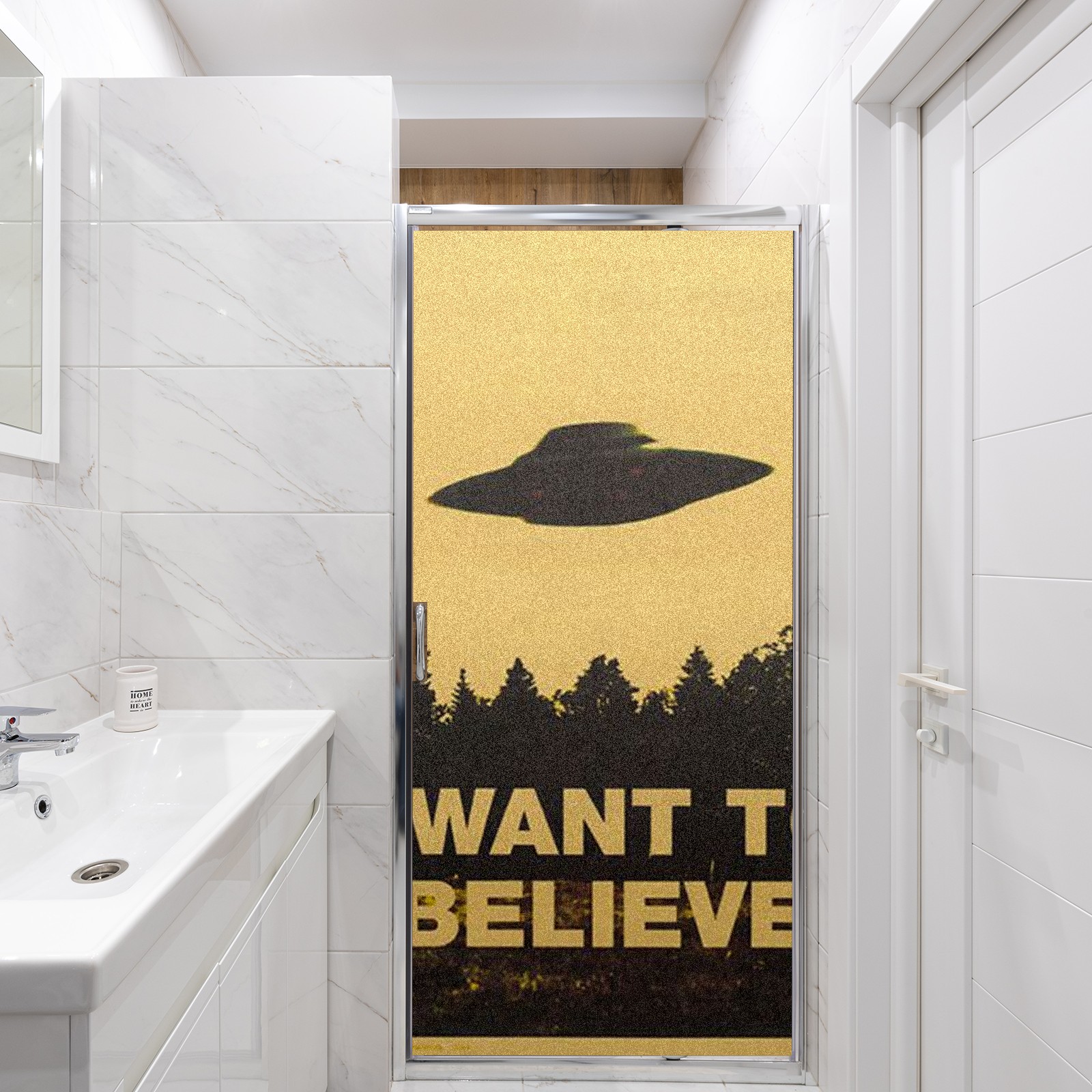 Single sided frosted full screen printed glass sticker soft pink green stripe seamless embroidery pattern privacy decoration Spaceship
