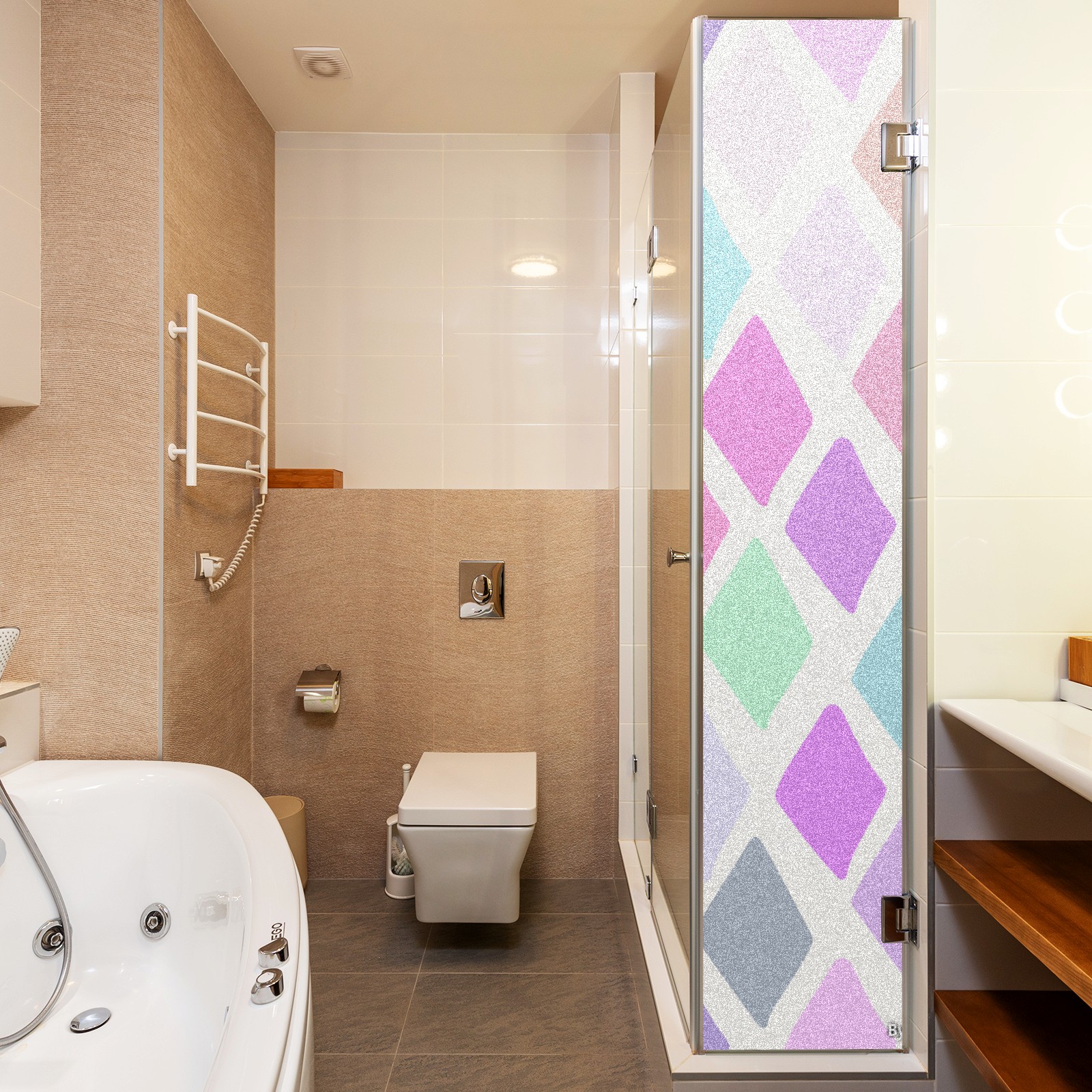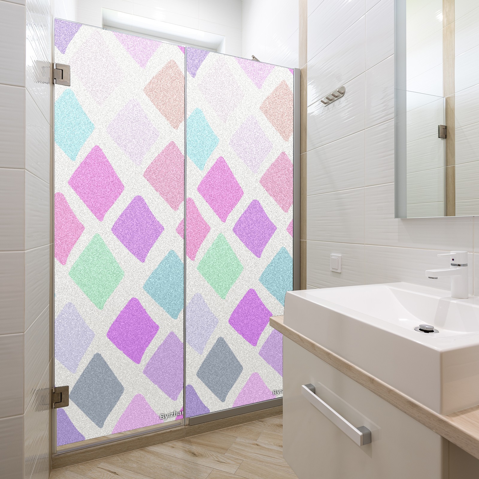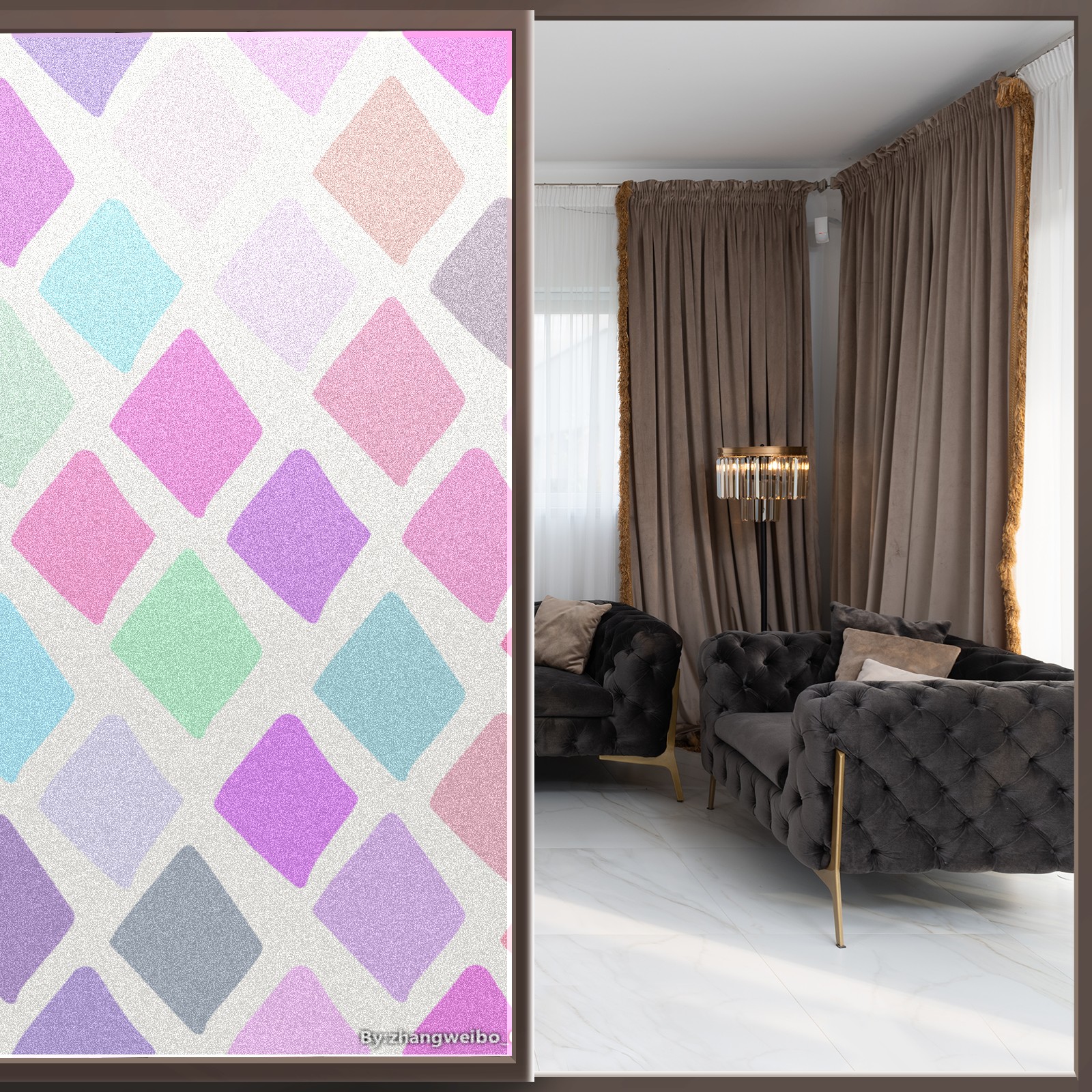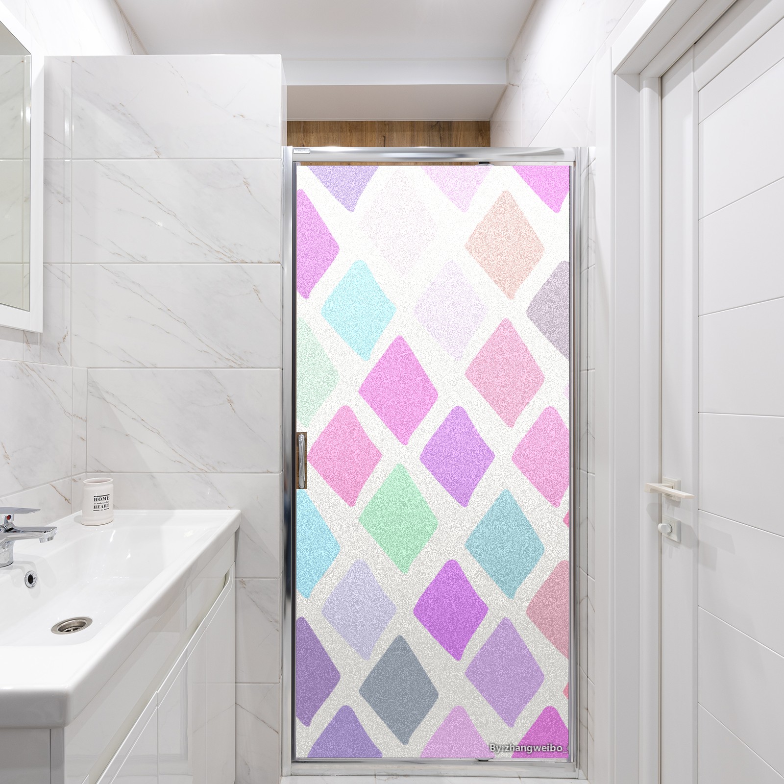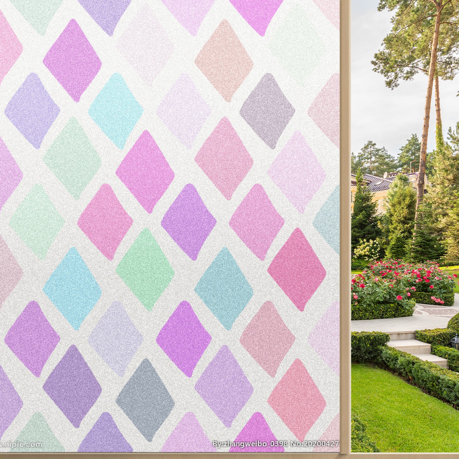 Single sided frosted full screen printed glass sticker soft pink green stripe seamless embroidery pattern privacy decoration Rhombus
