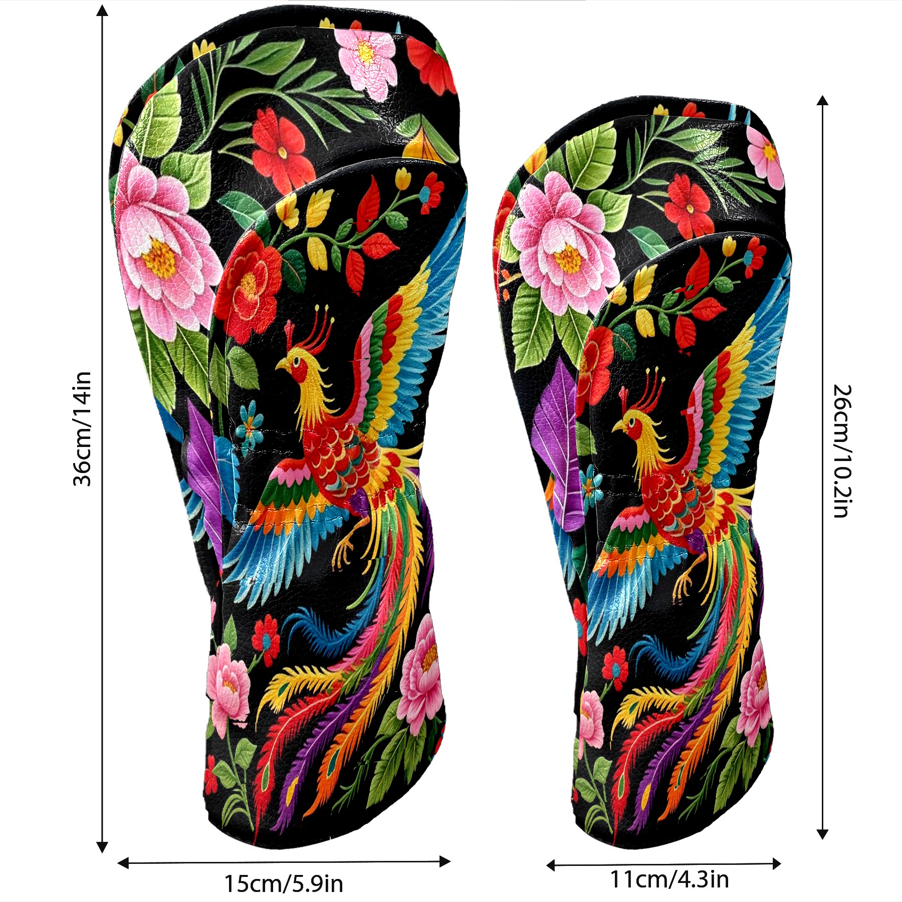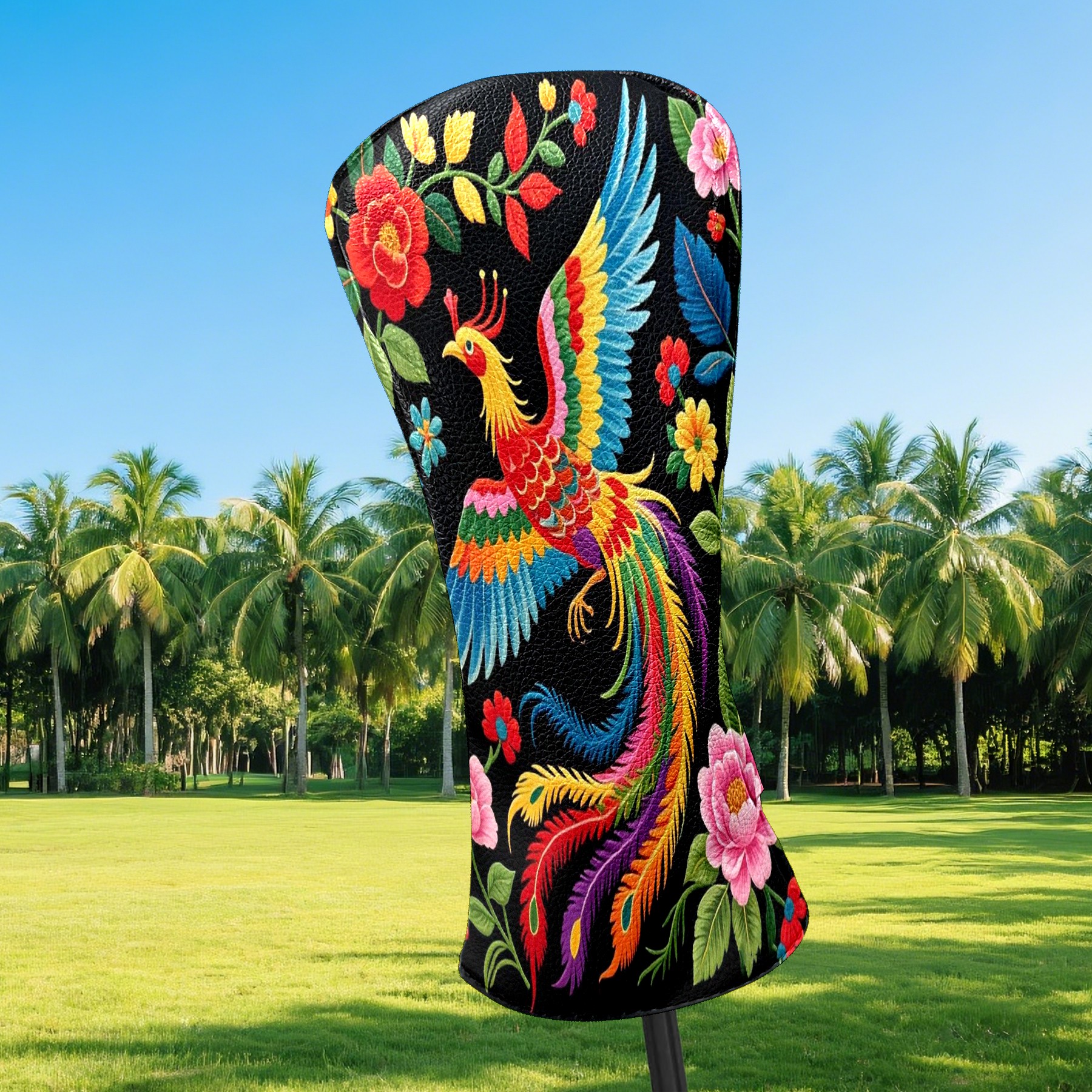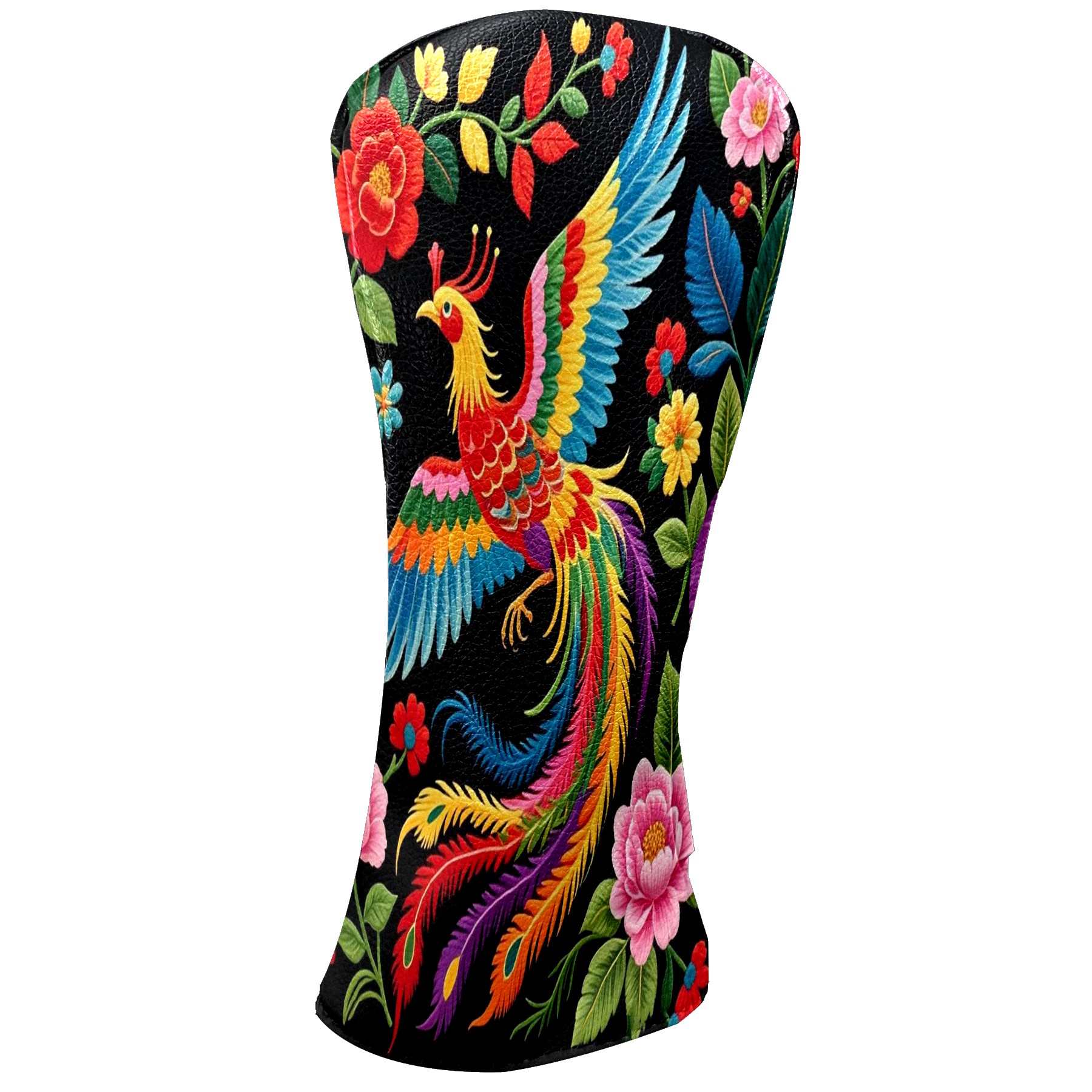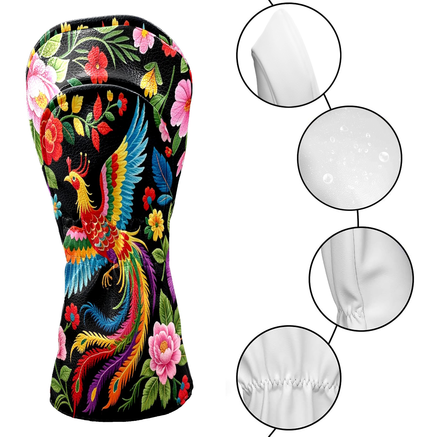 Golf Club Head Cover Premium Leather Driver Headcover, Golf Head Covers for Woods and Driver Waterproof Golf Headcovers with Anti-Scratch Lining for Men Women (Phoenix Flowers)