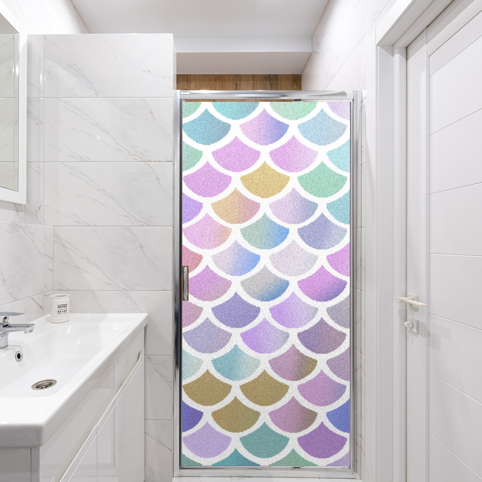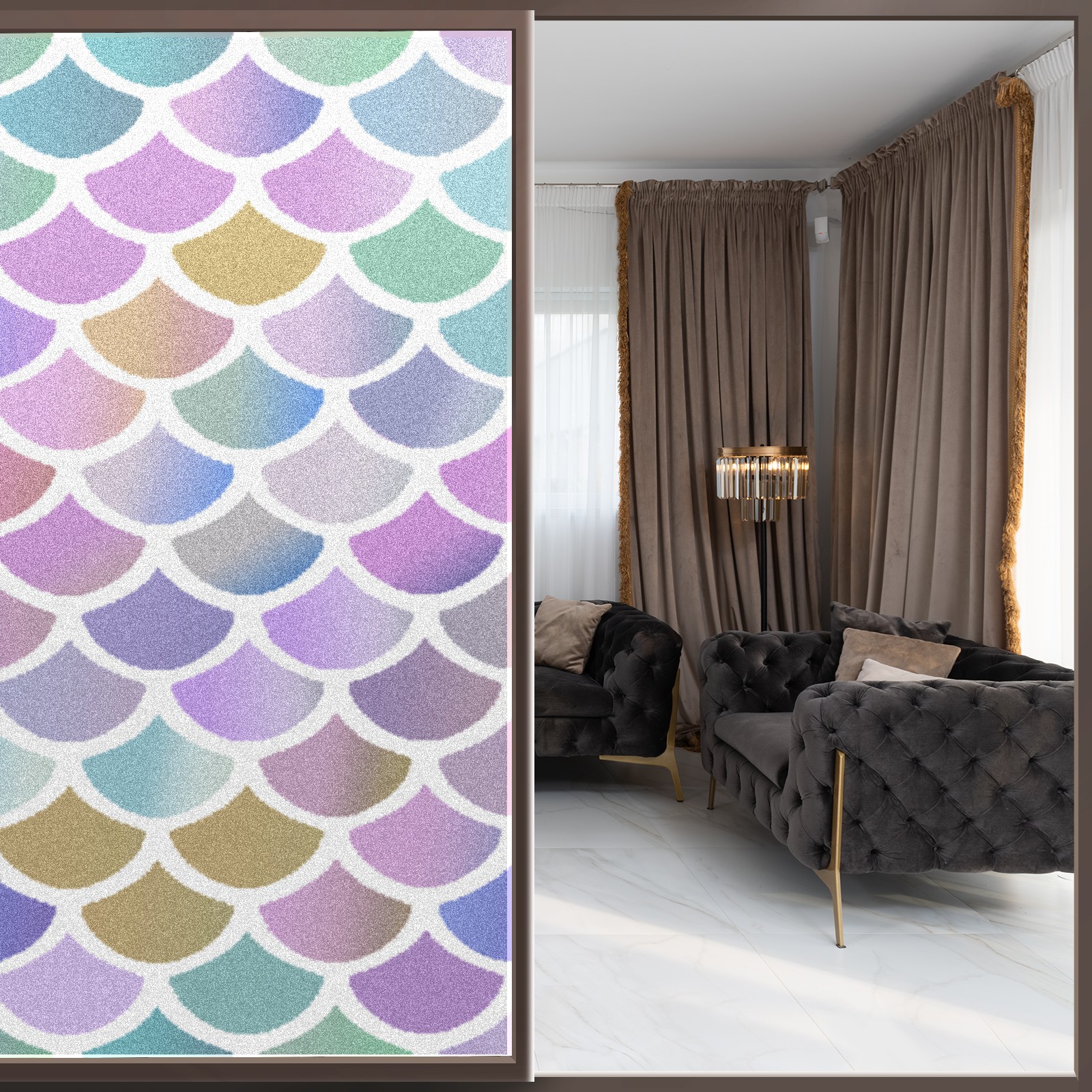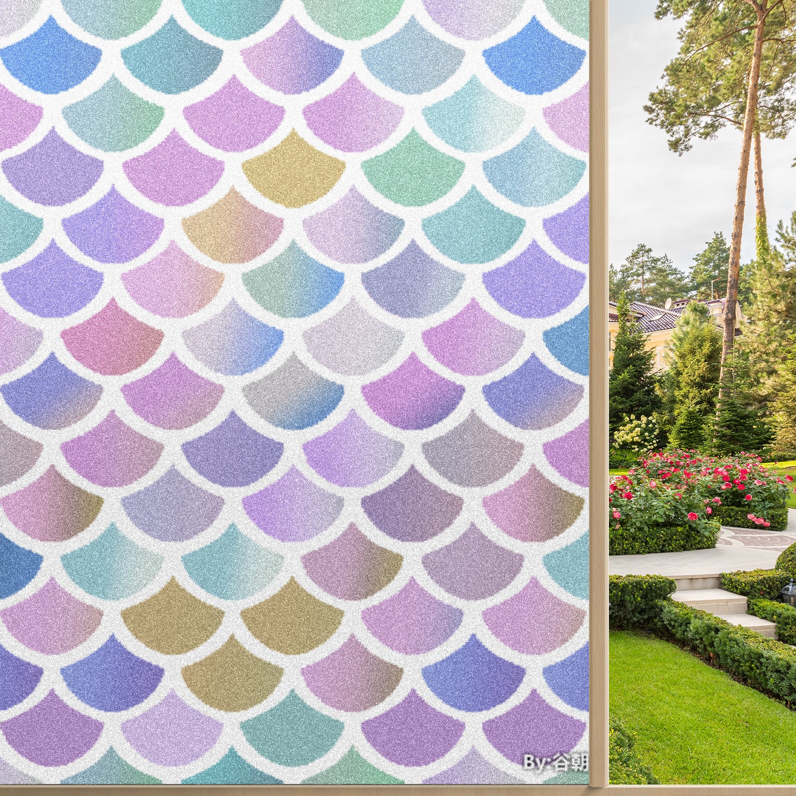 Single sided frosted full screen printed glass sticker soft pink green stripe seamless embroidery pattern privacy decoration Colorful Scales