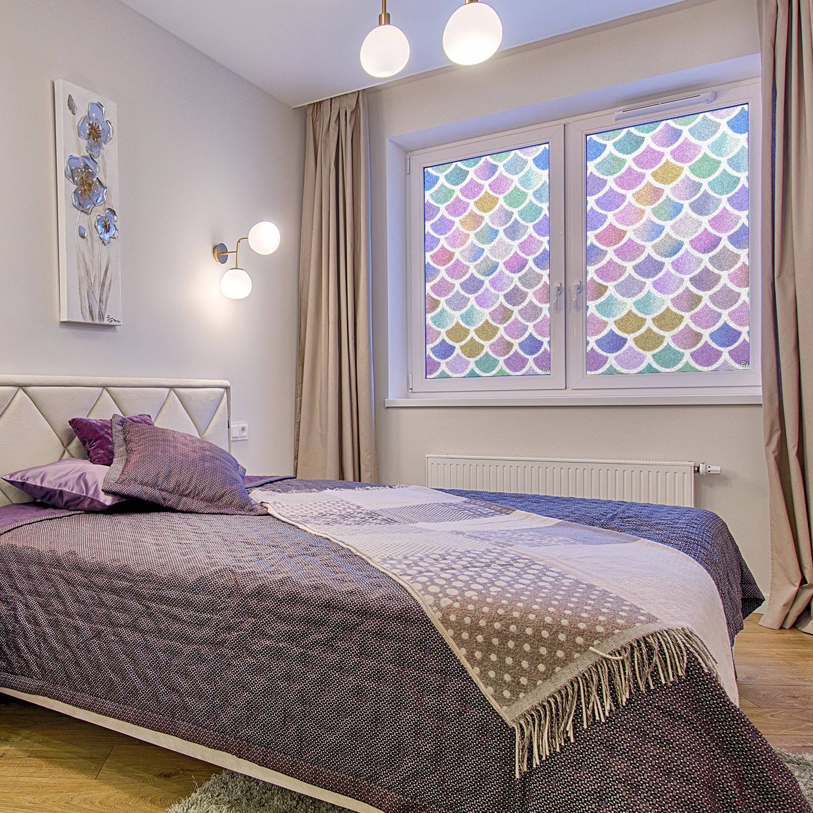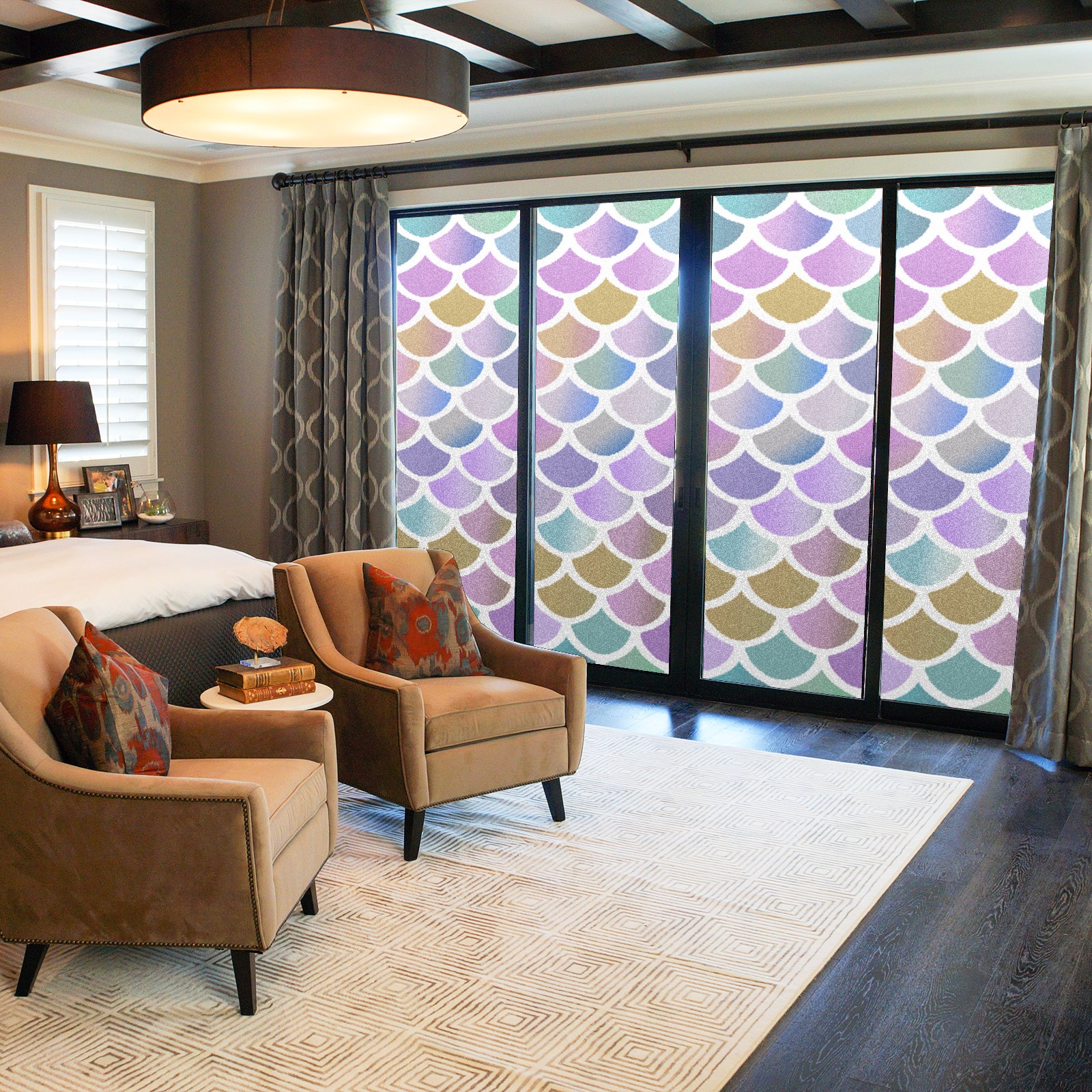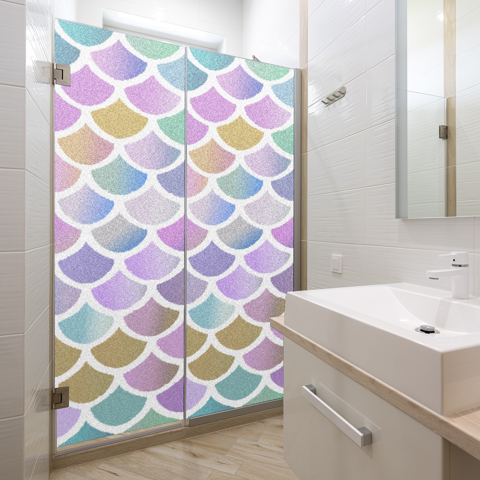 Single sided frosted full screen printed glass sticker soft pink green stripe seamless embroidery pattern privacy decoration Colorful Scales