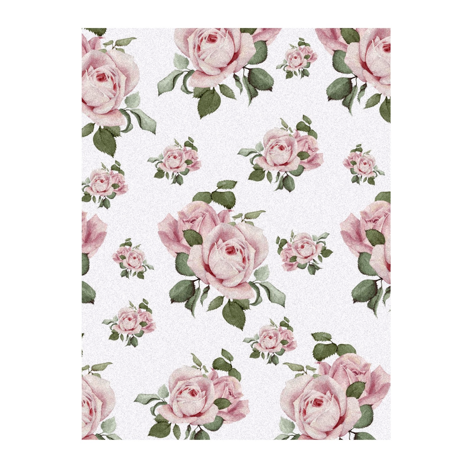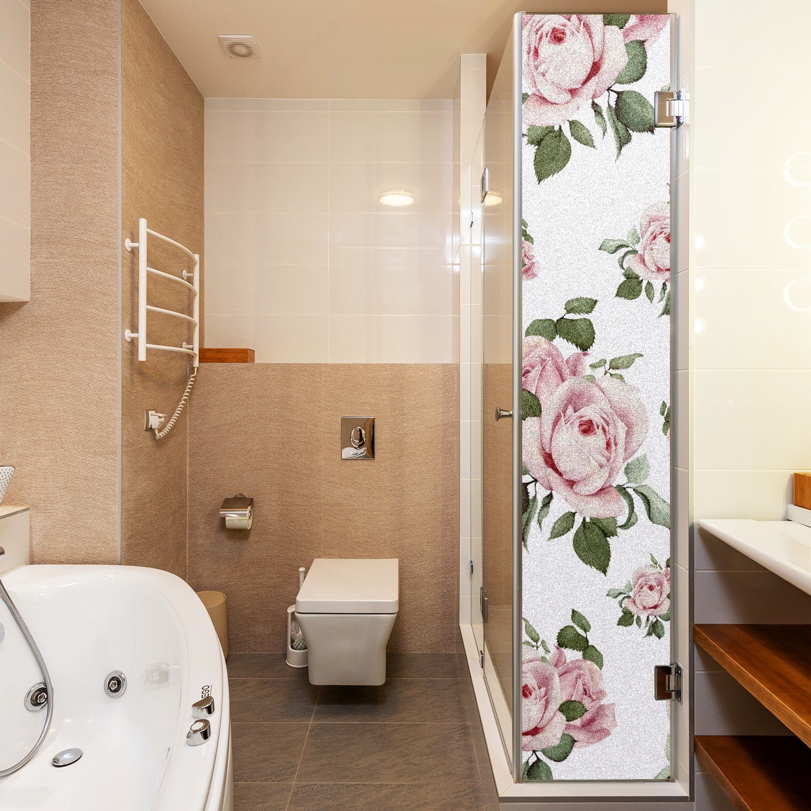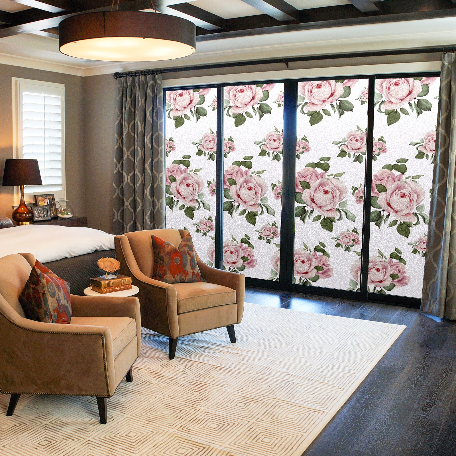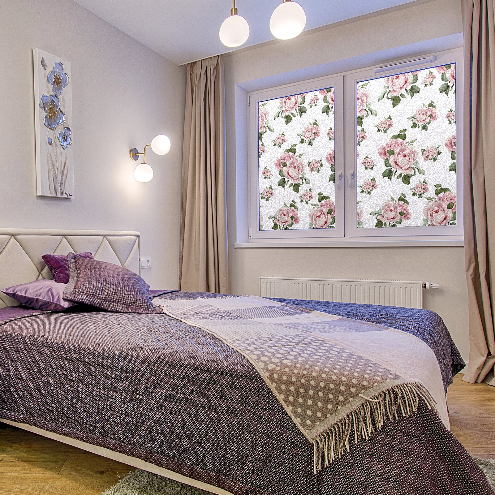 Single sided frosted full screen printed glass sticker soft pink green stripe seamless embroidery pattern privacy decoration Rose1