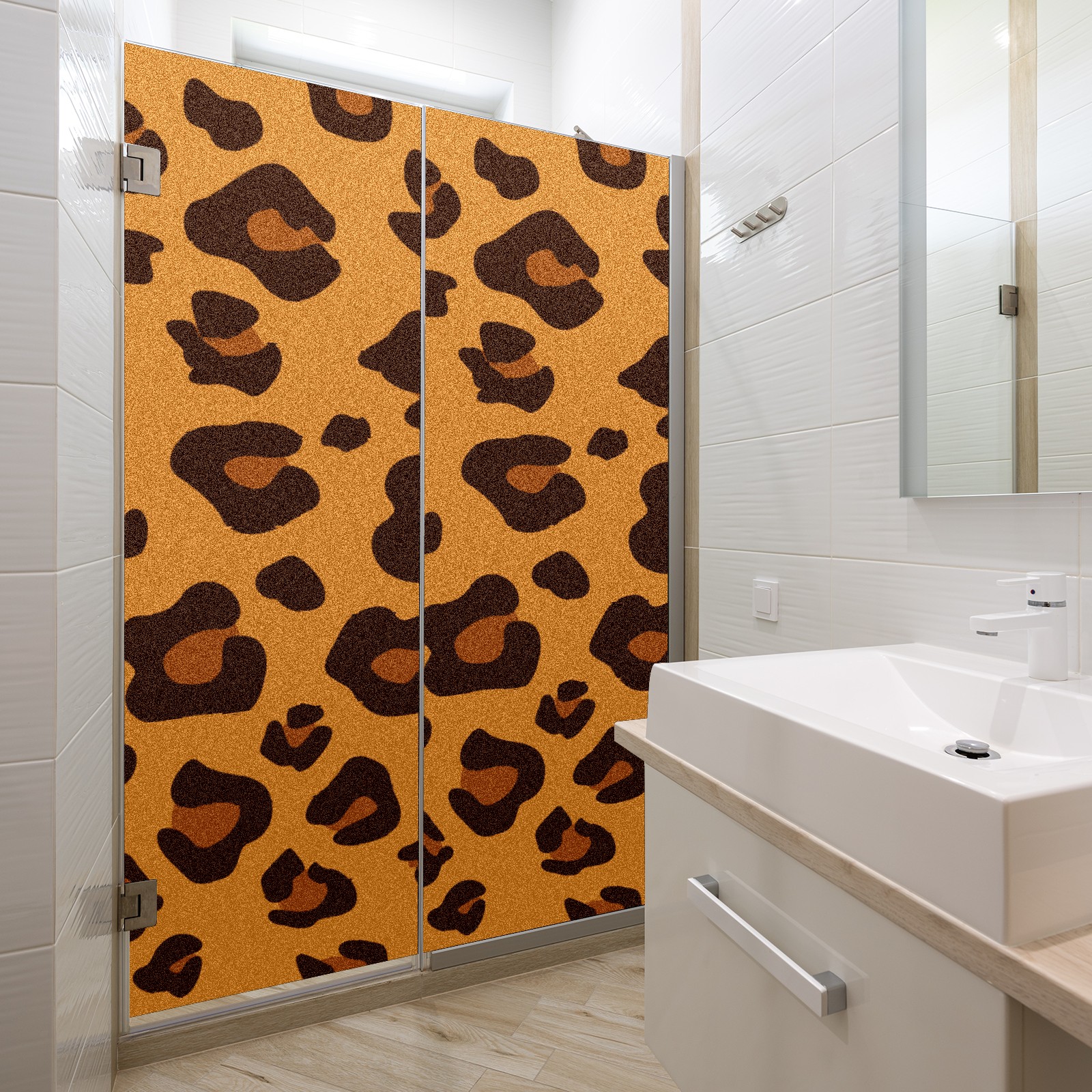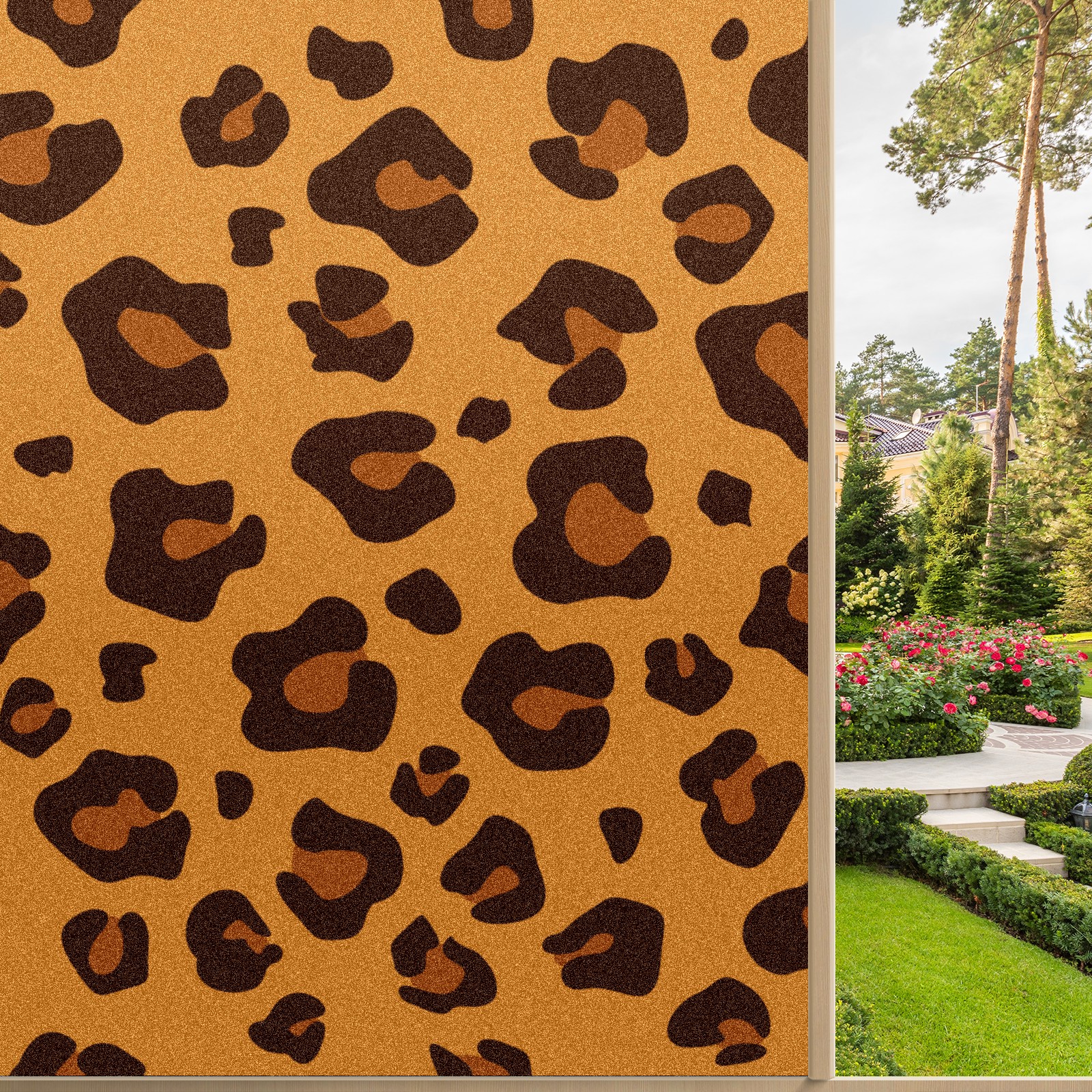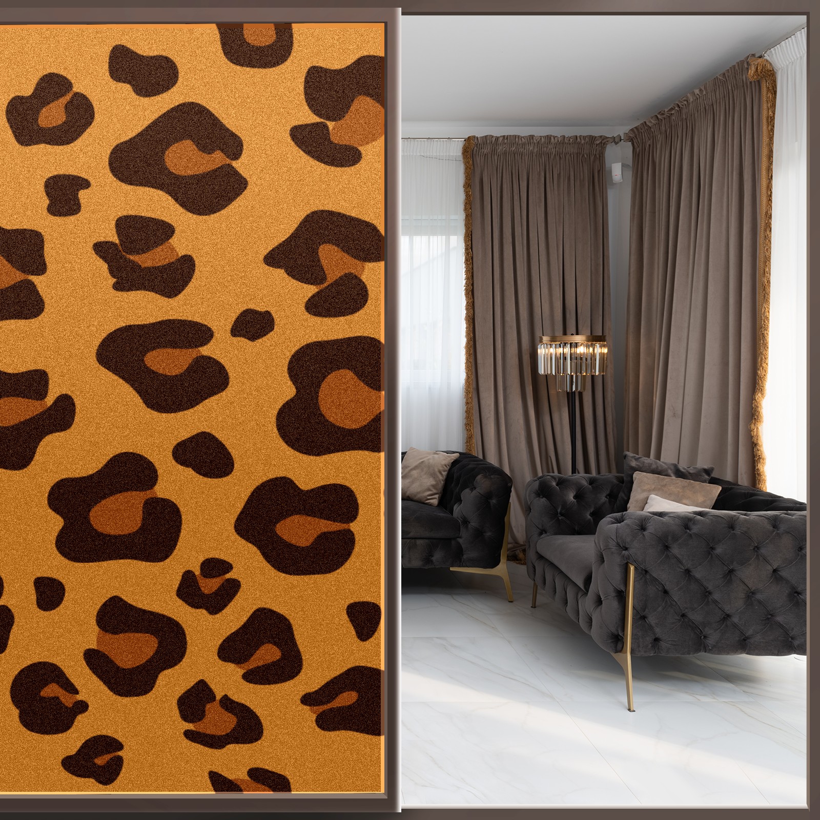 Single sided frosted full screen printed glass sticker soft pink green stripe seamless embroidery pattern privacy decoration Orange Leopard
