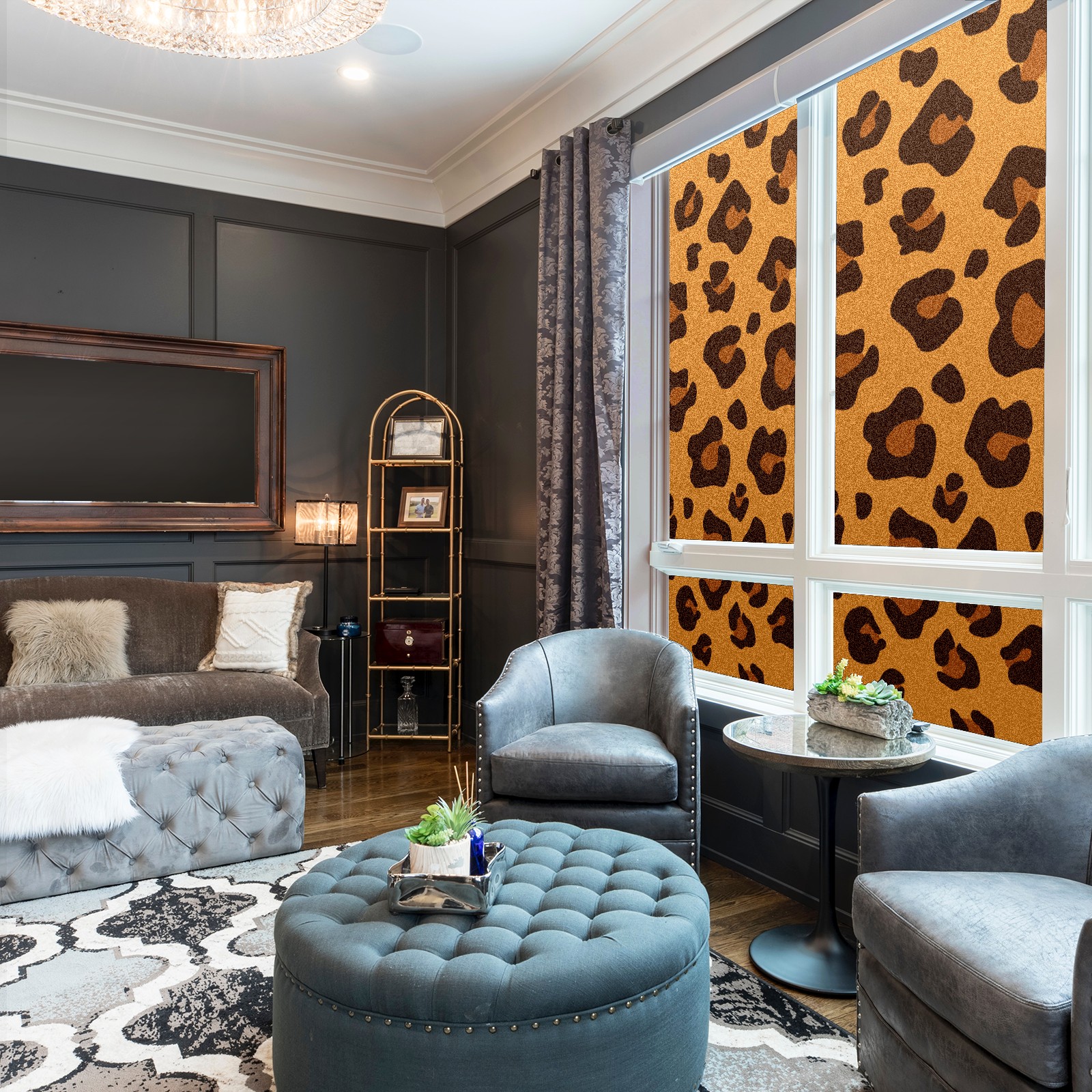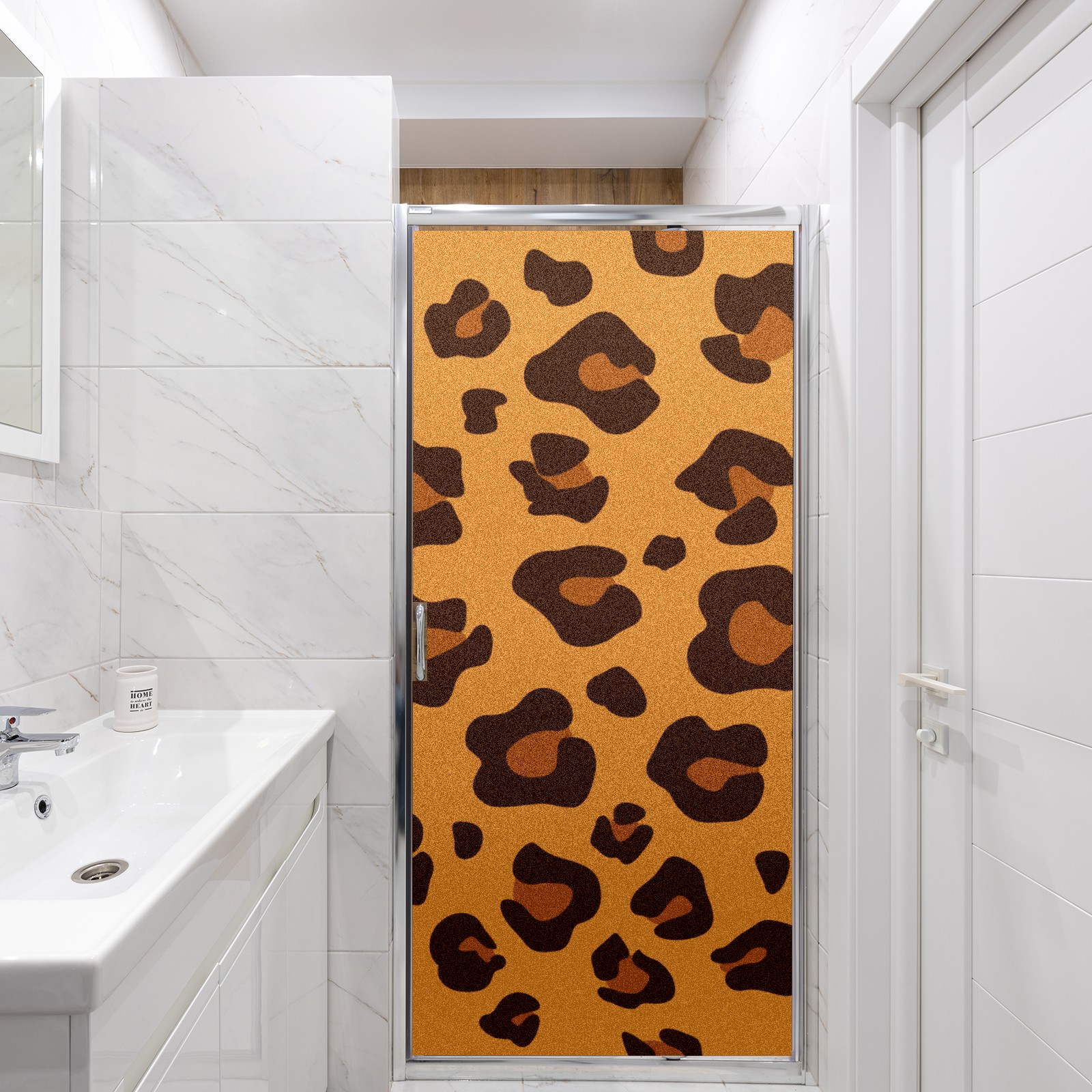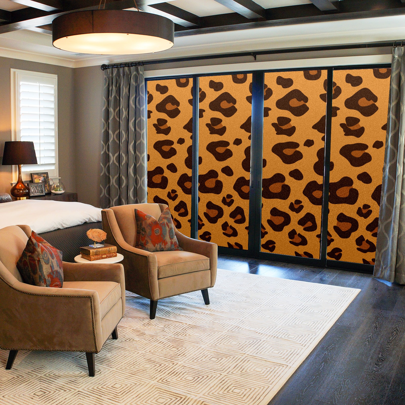 Single sided frosted full screen printed glass sticker soft pink green stripe seamless embroidery pattern privacy decoration Orange Leopard