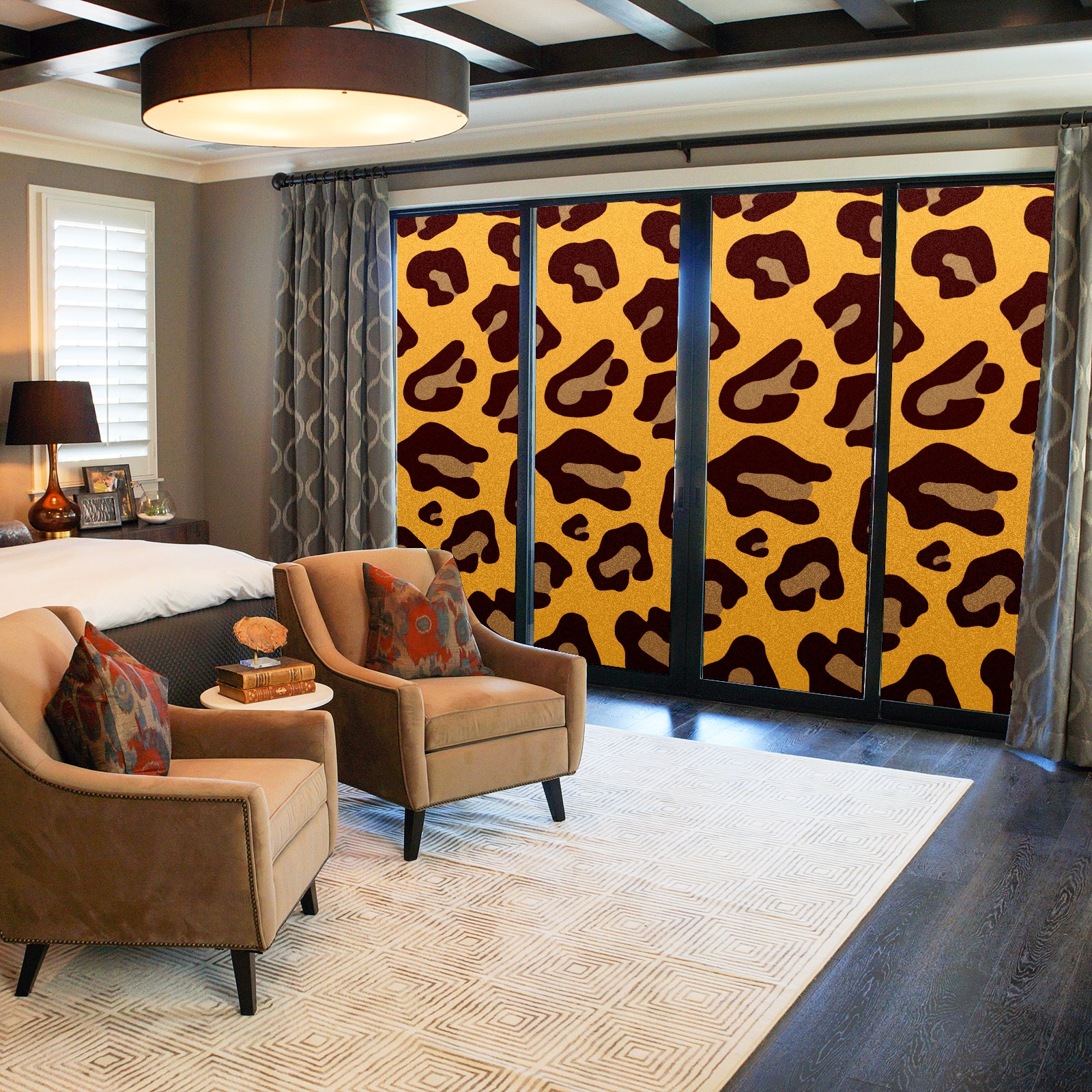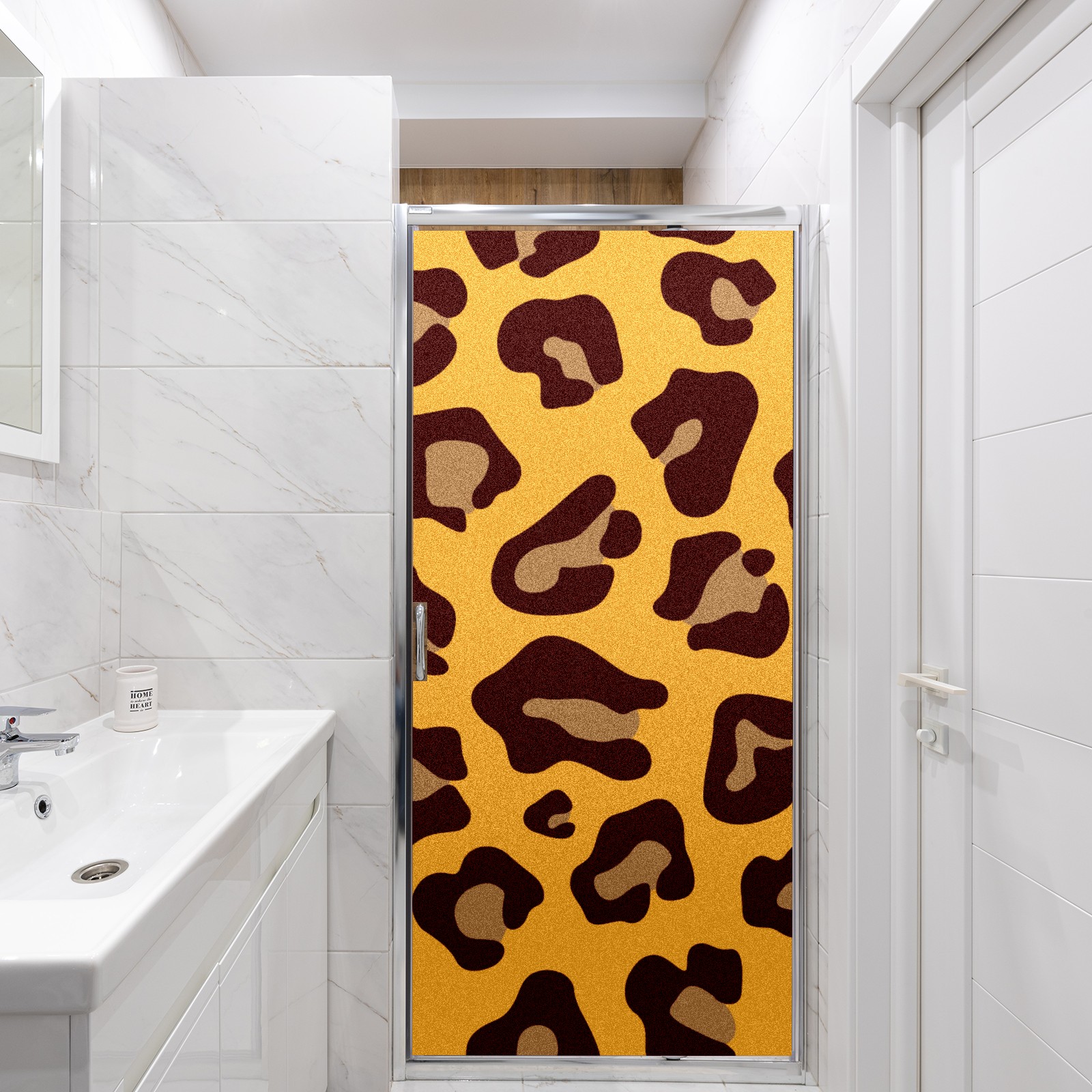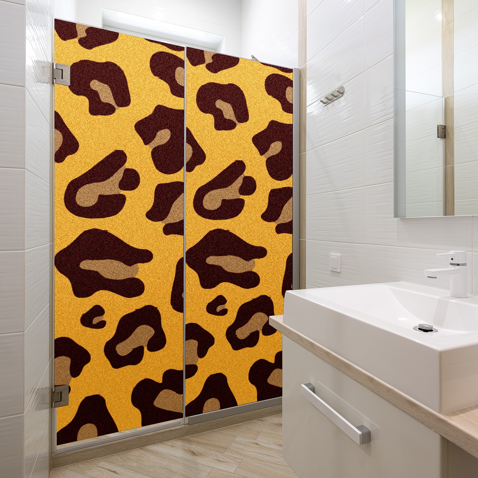 Single sided frosted full screen printed glass sticker soft pink green stripe seamless embroidery pattern privacy decoration Yellow Leopard Print