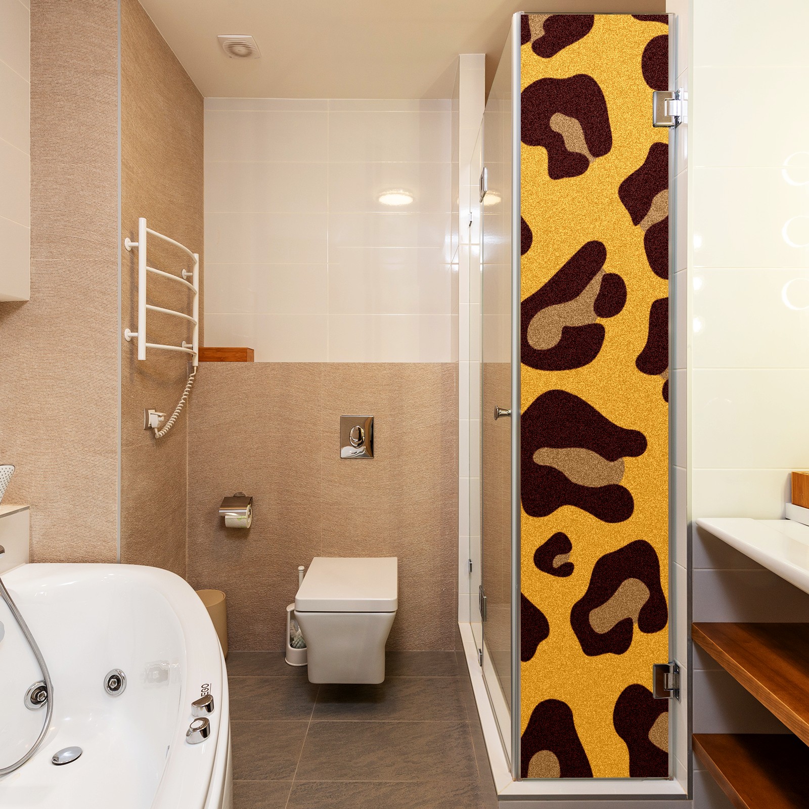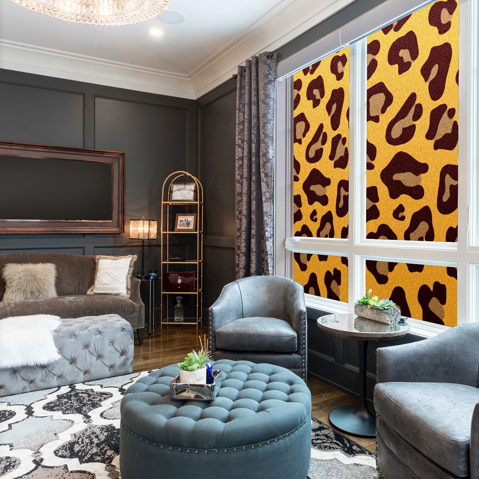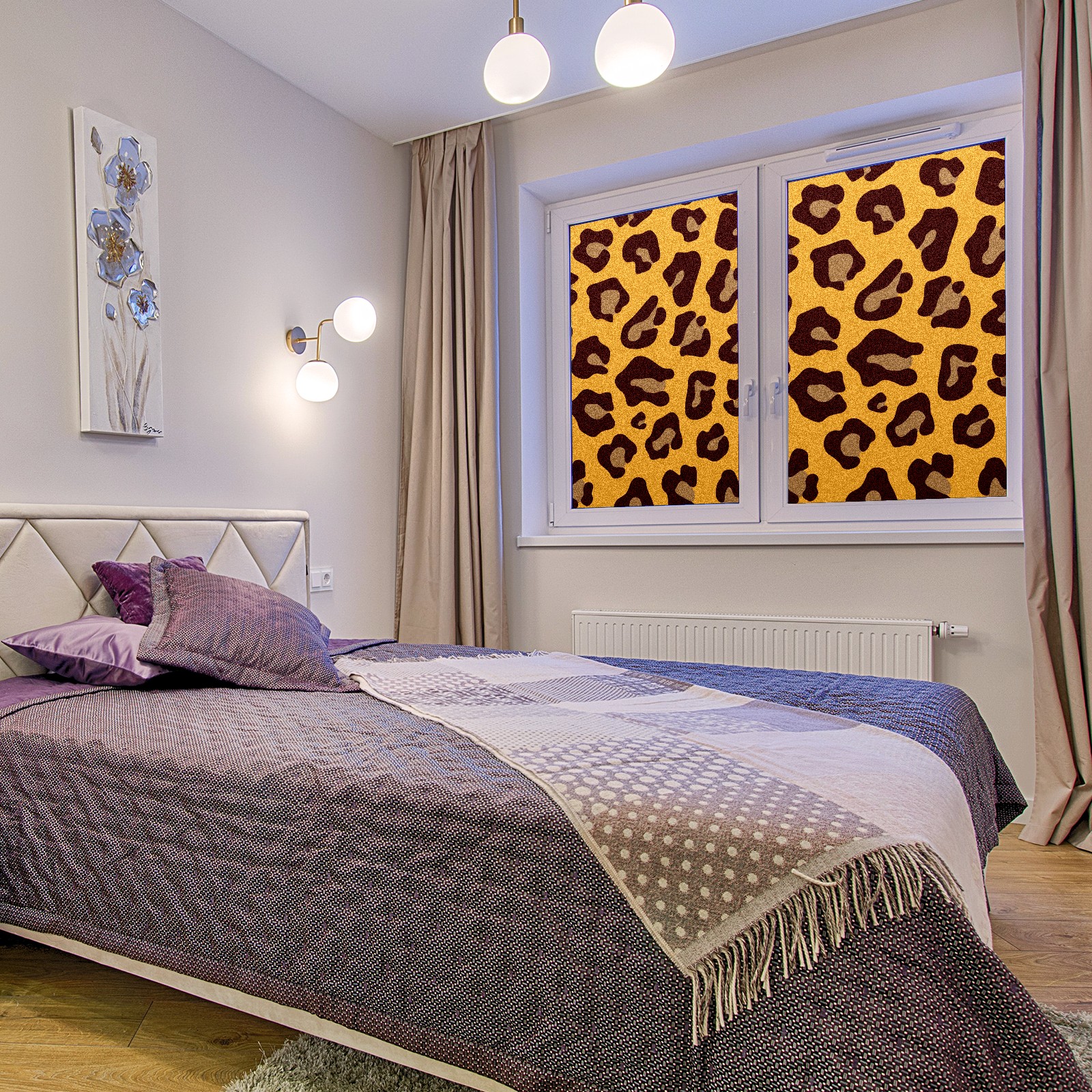 Single sided frosted full screen printed glass sticker soft pink green stripe seamless embroidery pattern privacy decoration Yellow Leopard Print