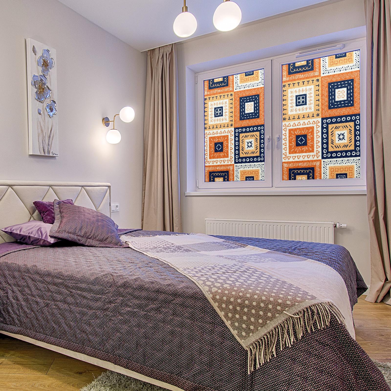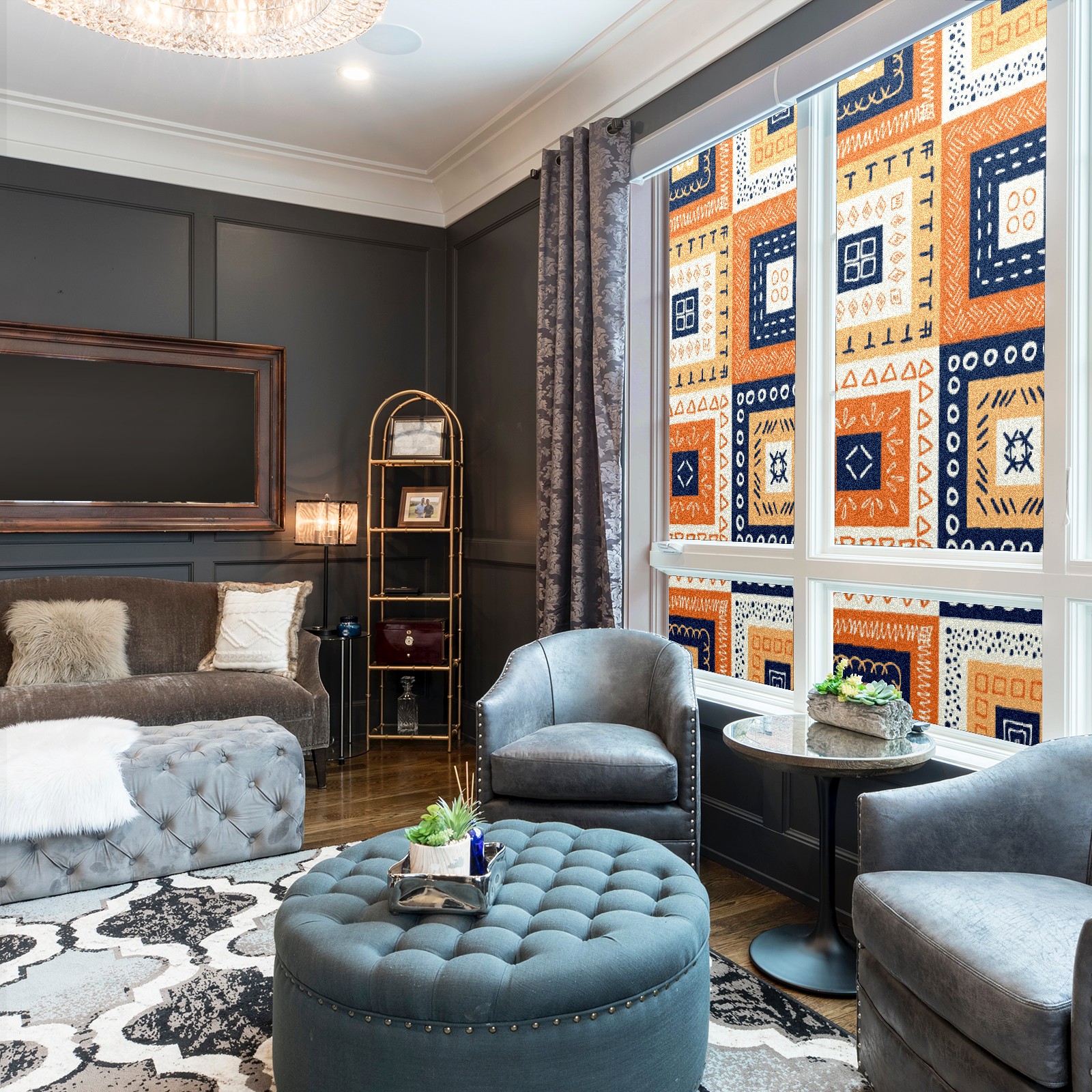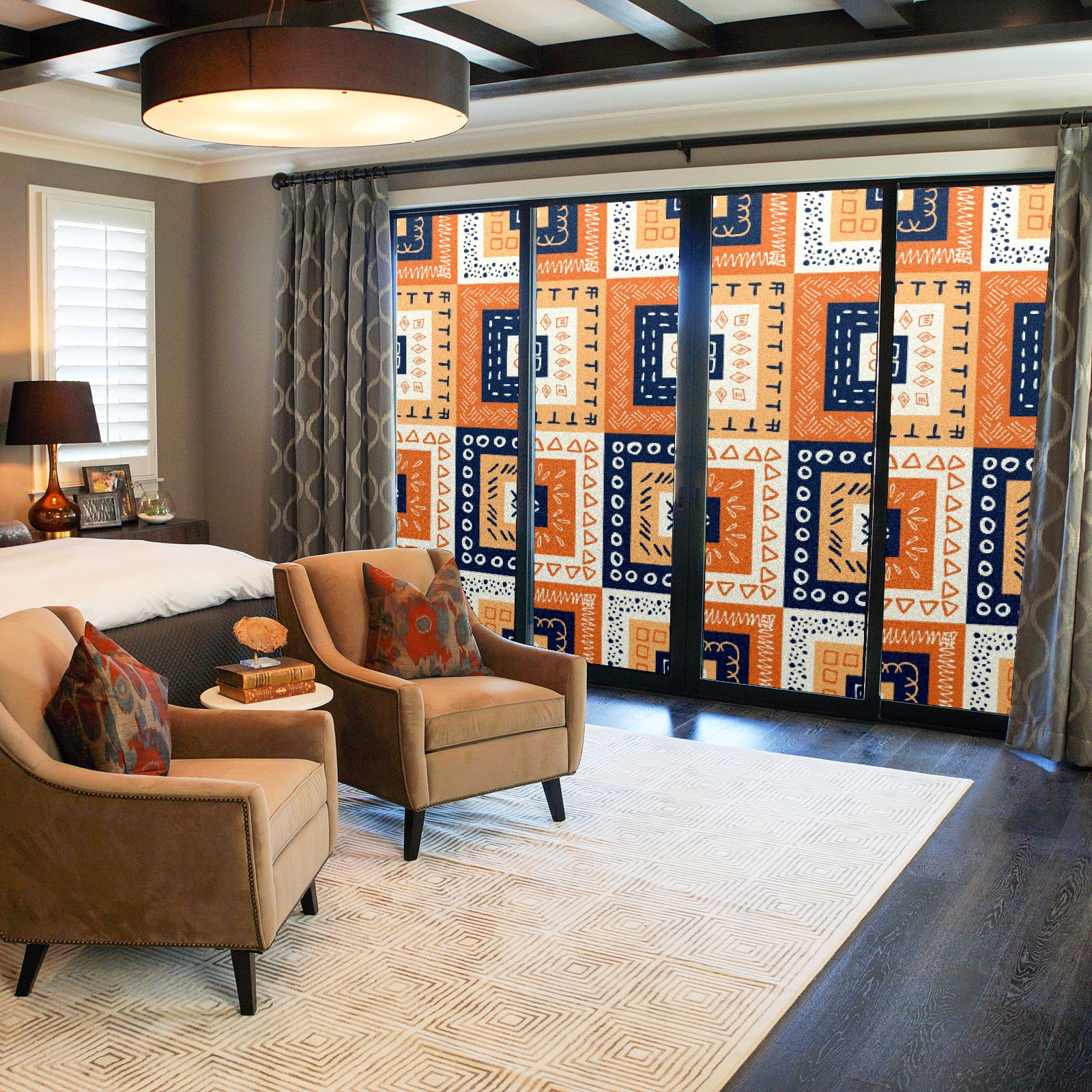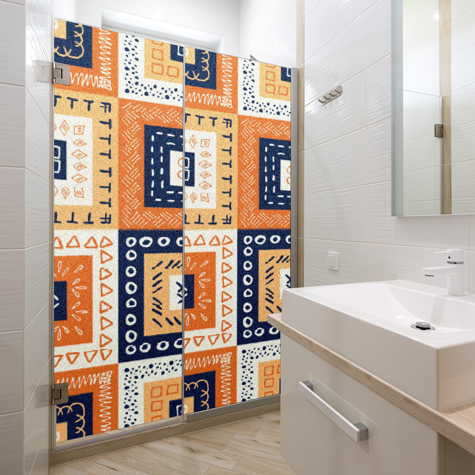 Single sided frosted full screen printed glass sticker soft pink green stripe seamless embroidery pattern privacy decoration Square Orange