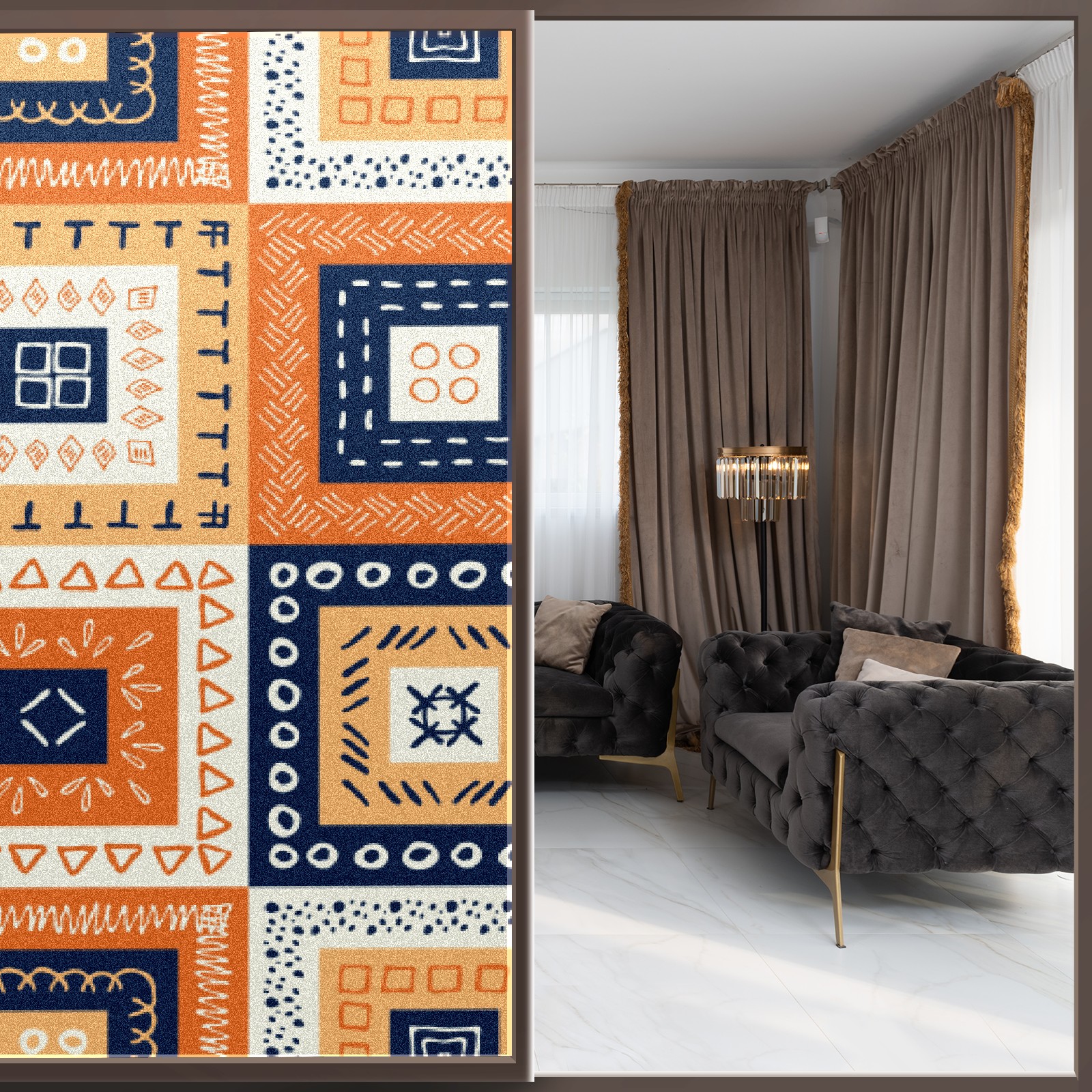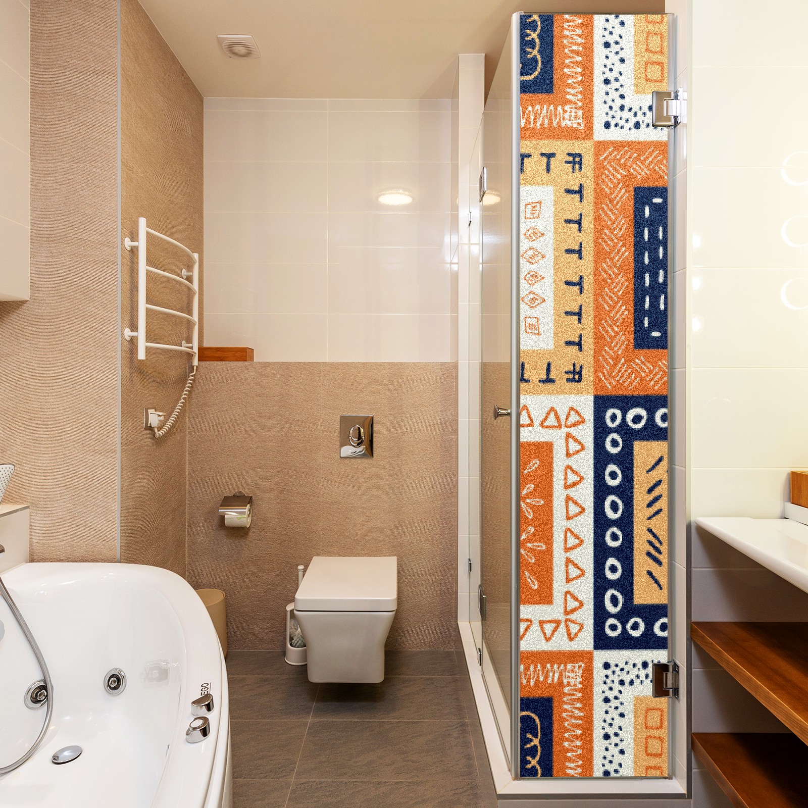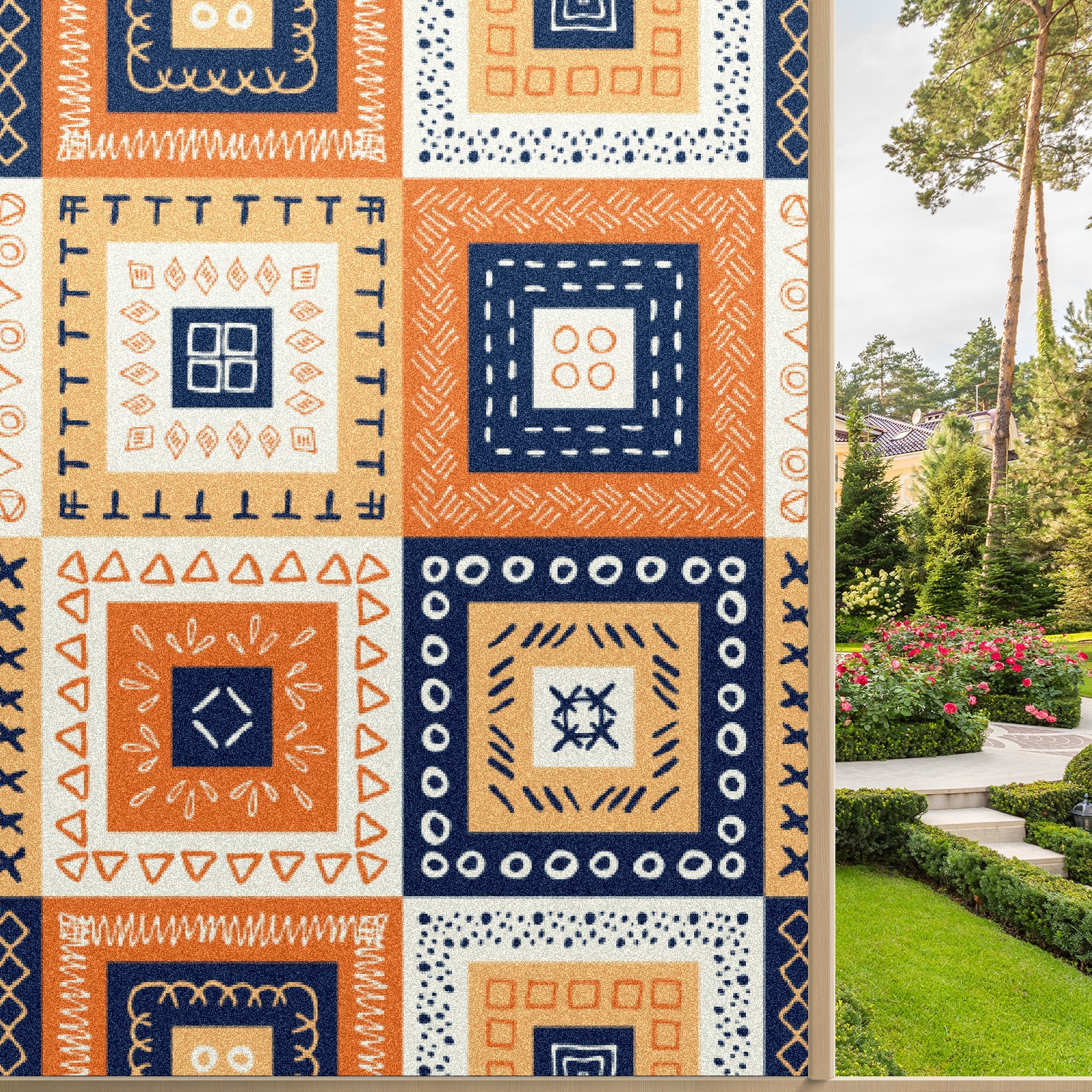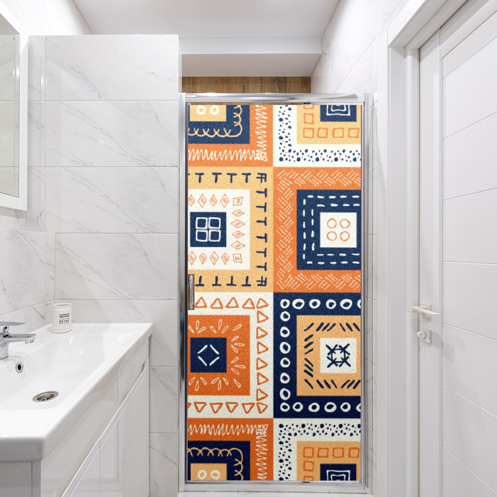 Single sided frosted full screen printed glass sticker soft pink green stripe seamless embroidery pattern privacy decoration Square Orange