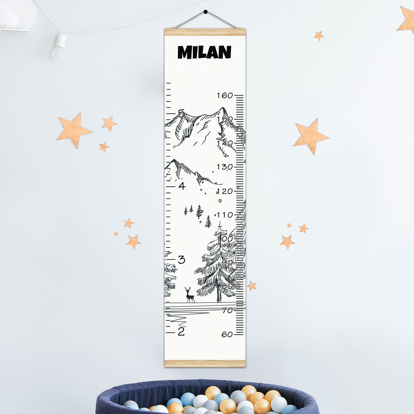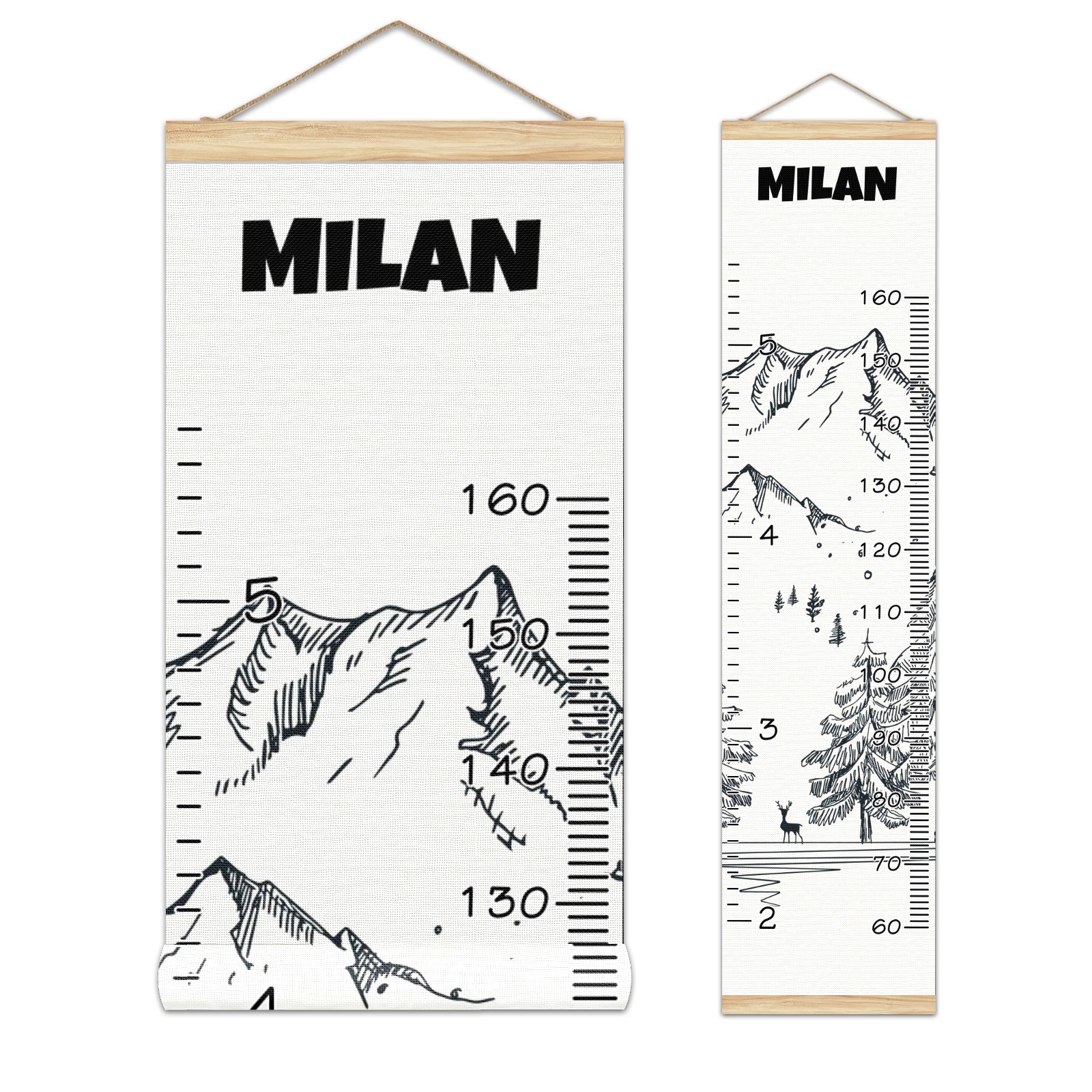 Personalized Kids Name Growth Chart Ruler for Wall Wood Frame Canvas Height Measure Chart 13.4x56 in Hanging Growth Chart Winter Mountain5.21 Boys Girls Room Decor