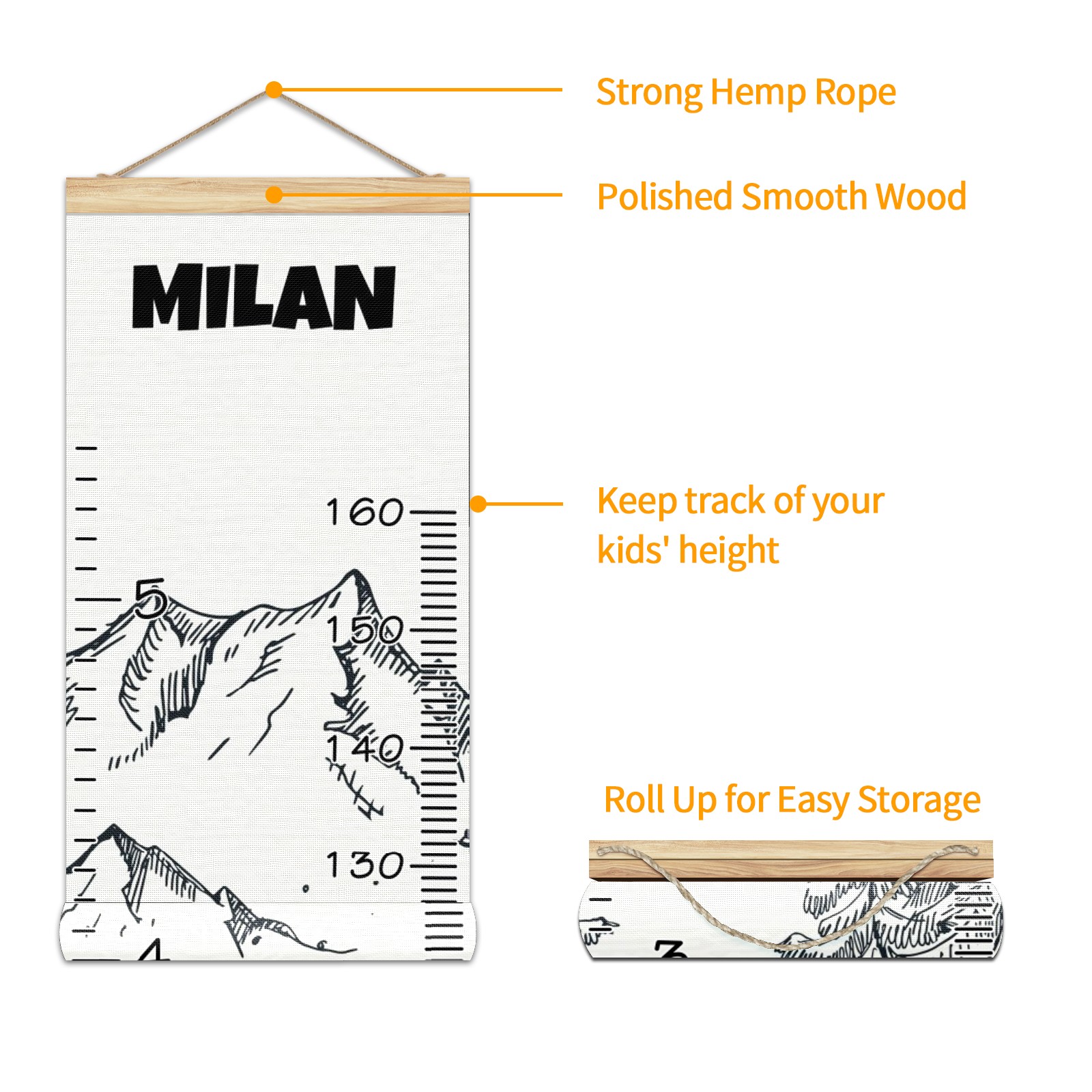 • <p><b>Features:</b></p> <p>Rope for Hanging</p> <p>Material: Linen + Wood</p> <p>Dimensions: 13.4x56 inches</p> <p>Package Included: 1 * Baby Growth Chart</p> <p><b>Baby height growth chart can be used anywhere</b></p> <p>Ideal for kids nursery decoration, kids bedroom, interior walls or windows, playroom, living room, homedecoration.Add name and make the growth chart special!</p> <p><b>Easy to fold and carry</b></p> <p>With rope at the top of the growth chart, it is easy to install and remove.You can fold it and unfold any time any where.</p> <p><b>Perfect Gift Idea for Kids</b></p> <p>Environmental and non-toxic for kids use, it must be a perfect gift for baby, kids, girls, and boys.This is a best choice for your friend who have kids or baby as a popular gift.</p> <p><b>Easy to read</b></p> <p>Measurement accrate with 2 scales, Centimeters and feet. The letters are big enough, very easy to read.</p> <p><b>60cm(23.6inch) Over Ground Design</b></p> <p>Not only can protect from dust and other damage, but also will not interfere in floor cleaning.</p>