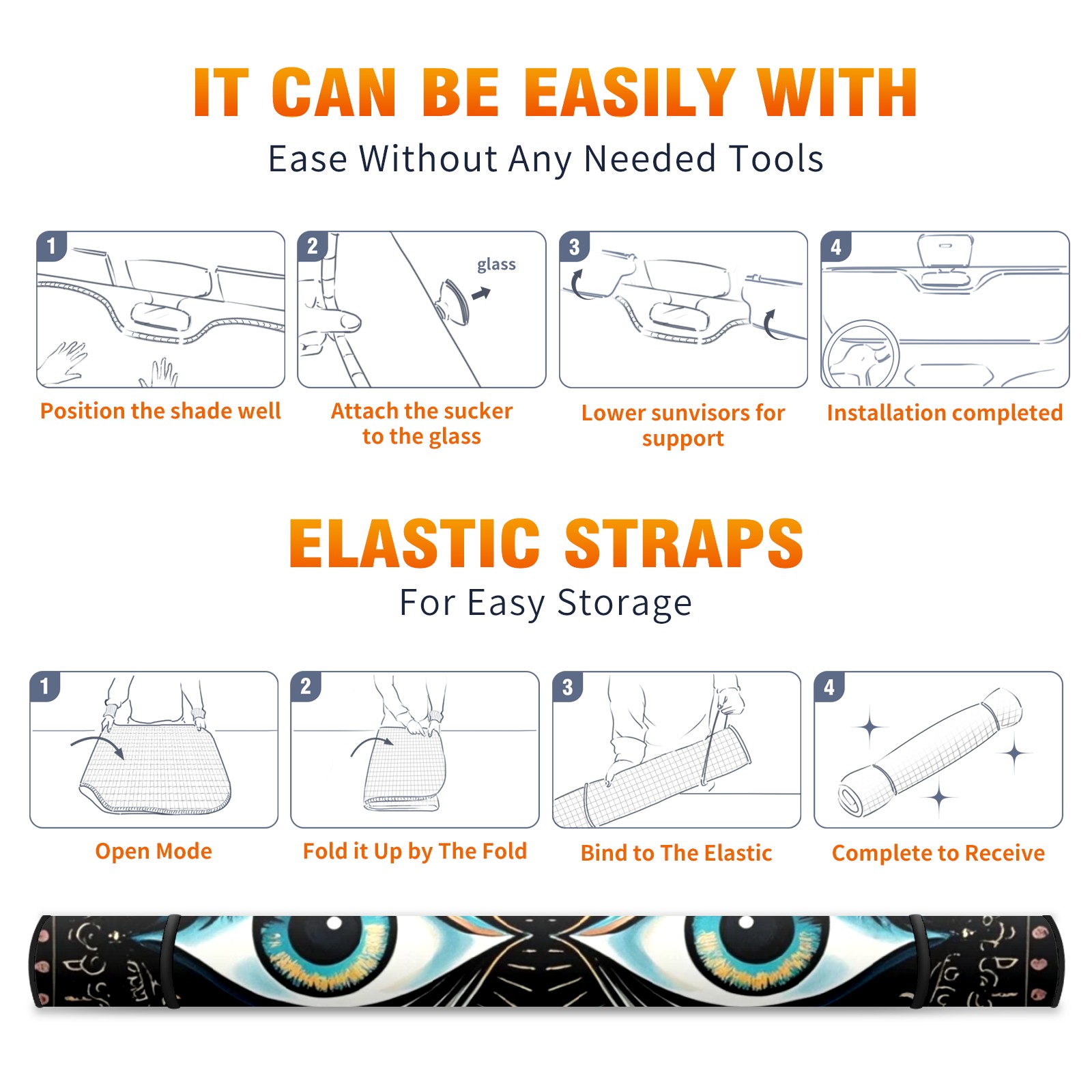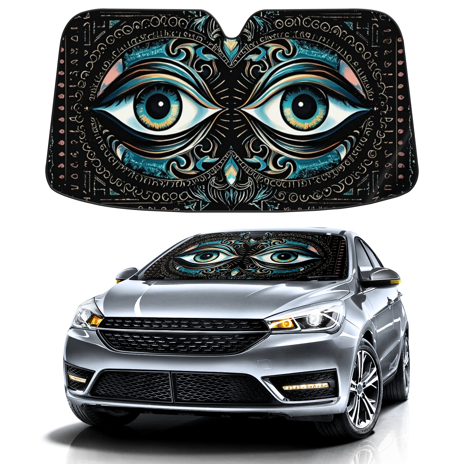 Aluminum foil polyester car sunshade pad, efficient heat insulation and sun protection artifactPumpkin Hand-Painted Style, Red And White