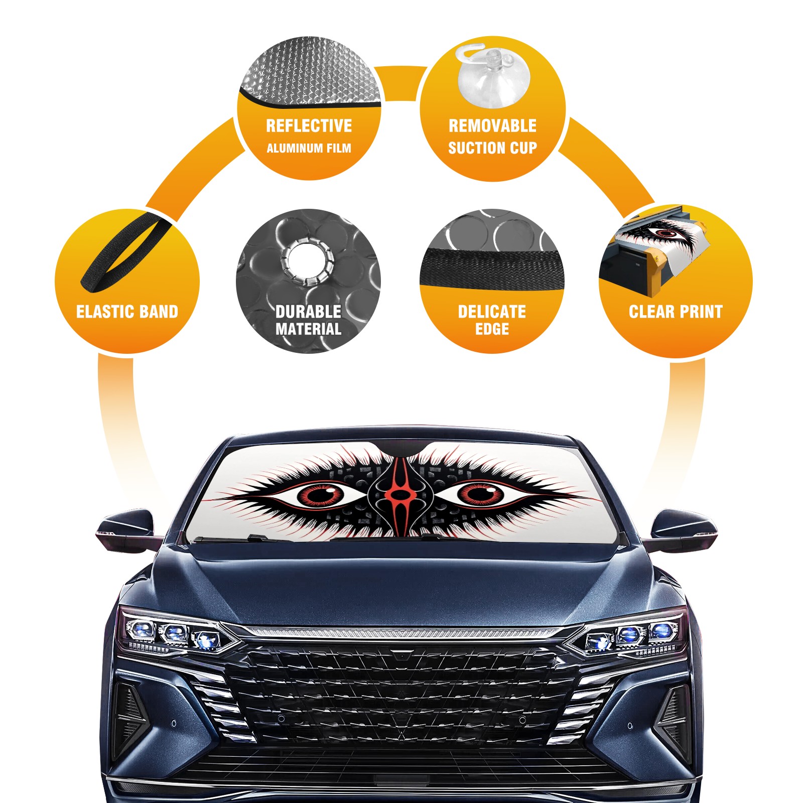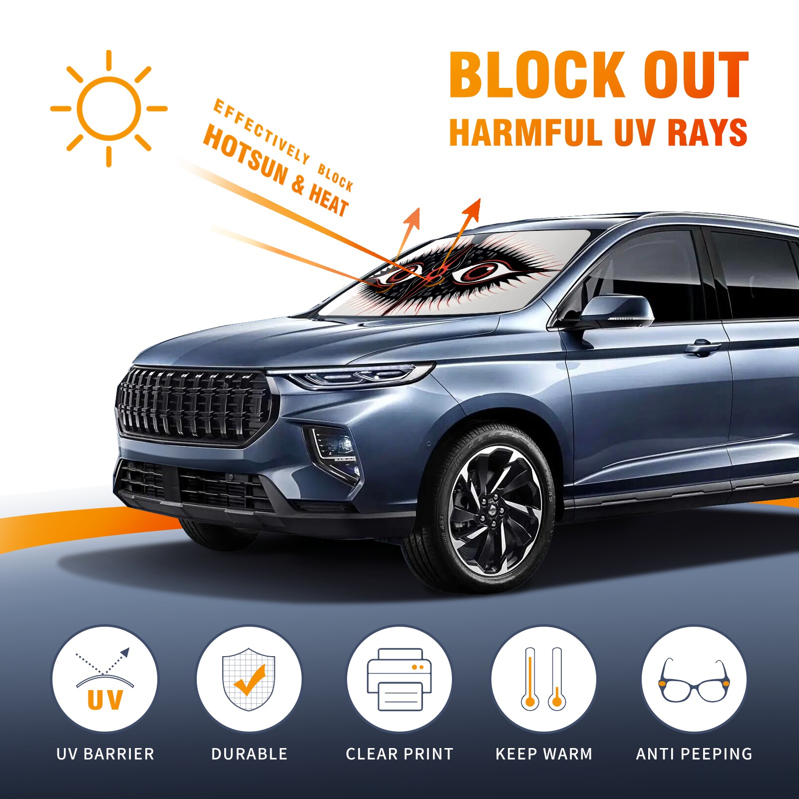 • <p>This car sunshade pad is made of a high-quality combination of aluminum foil and polyester, reinforced with transparent adhesive. It measures 140x76cm (55inx30in) and is a practical choice for protecting your car. Its powerful UV protection function can effectively block harmful light, prevent the car interior from aging due to exposure to sunlight, and maintain the dashboard, steering wheel, and seats in a brand new state.<br></p>