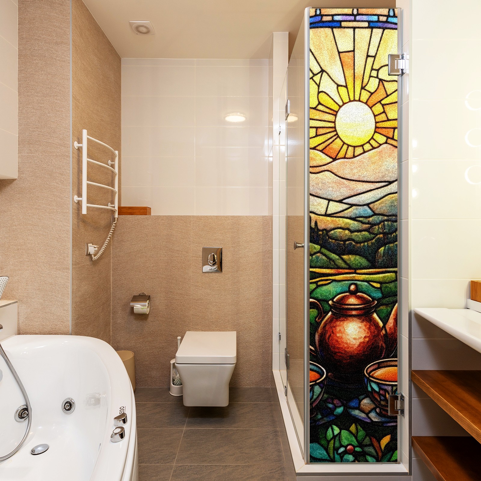Single sided frosted full screen printed glass sticker soft pink green stripe seamless embroidery pattern privacy decoration Sun Rising (2)