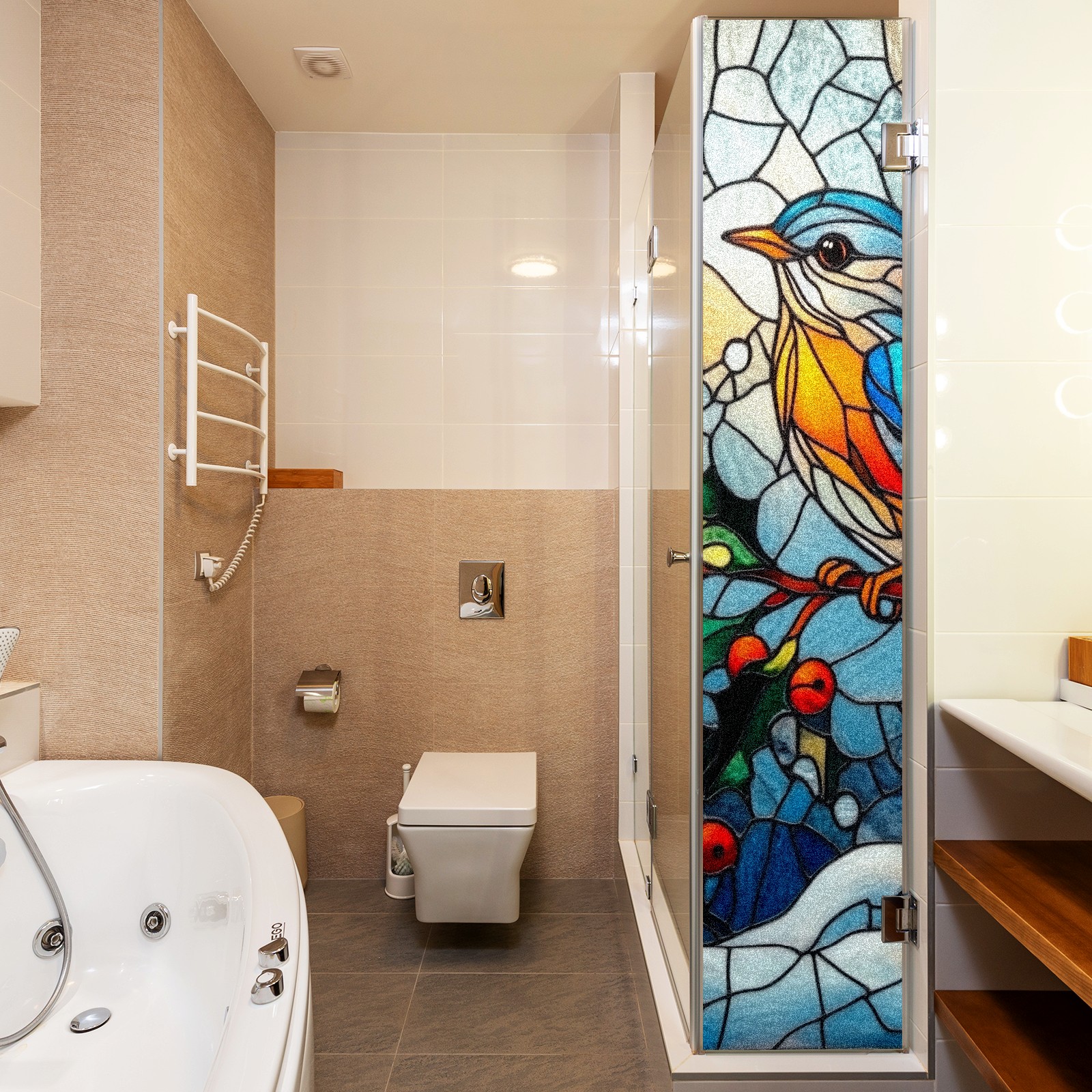 Single sided frosted full screen printed glass sticker soft pink green stripe seamless embroidery pattern privacy decoration Bird
