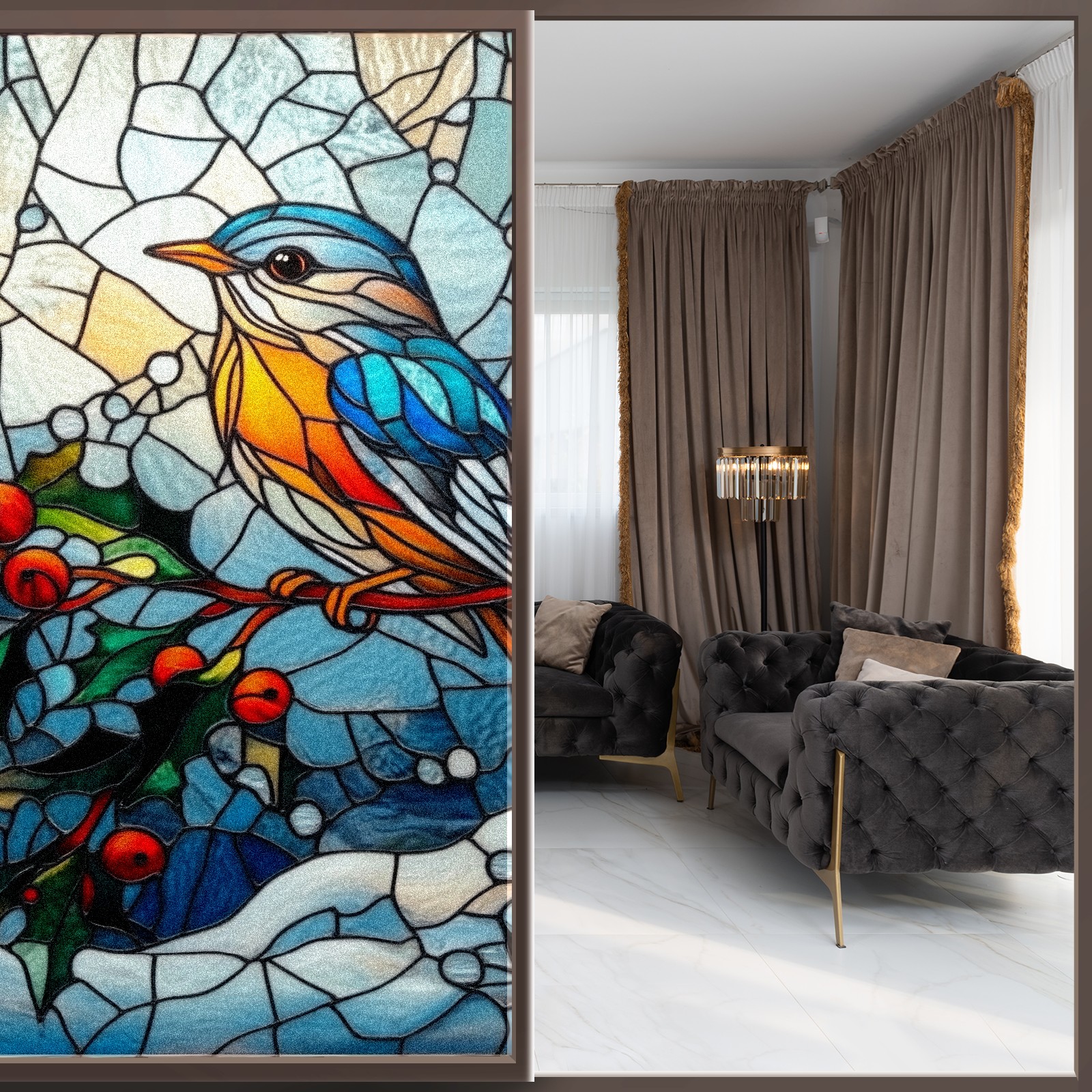 • <p>The main body is made of PET single-sided frosted material, with a smooth surface that adheres to the glass. The frosted surface forms a hazy blocking effect, effectively protecting privacy while retaining soft light.The pattern covers the entire surface of the sticker, adopting a seamless design with clear and three-dimensional texture, breaking the traditional sticker's sense of fragmentation.</p>
