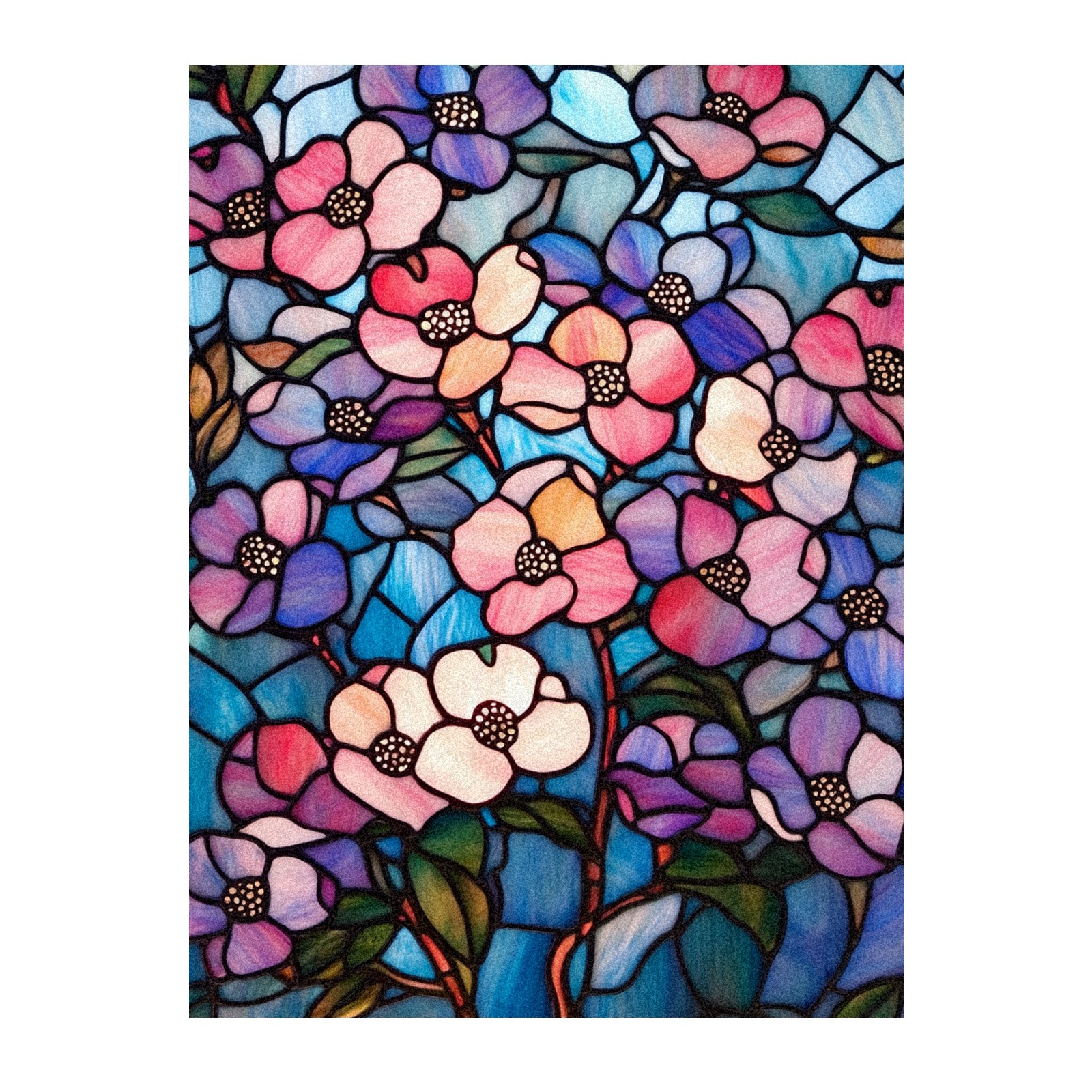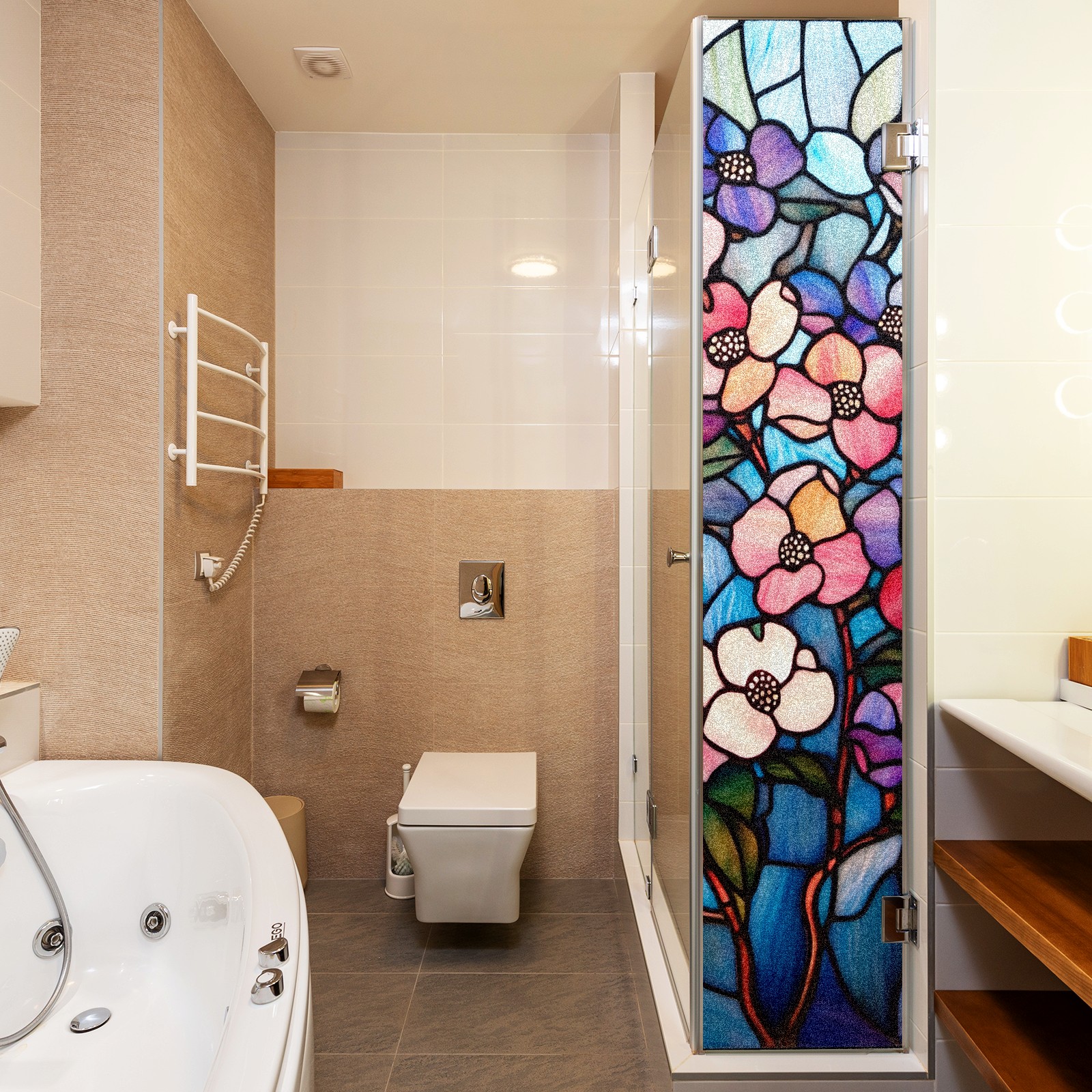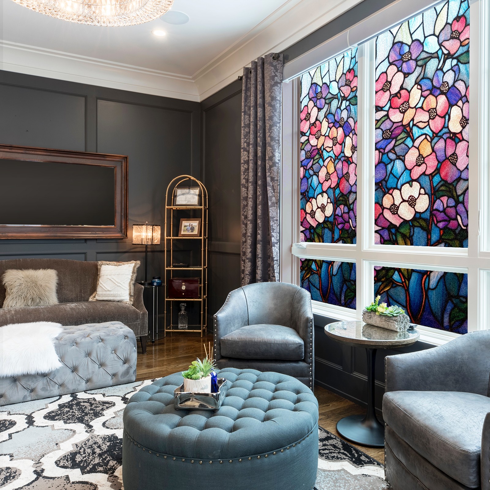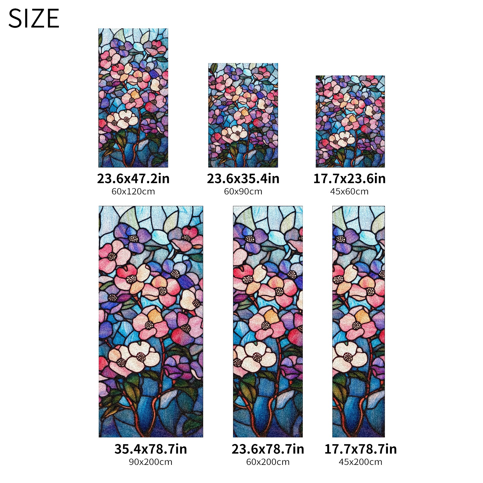 Single sided frosted full screen printed glass sticker soft pink green stripe seamless embroidery pattern privacy decoration Dogwood Flowers
