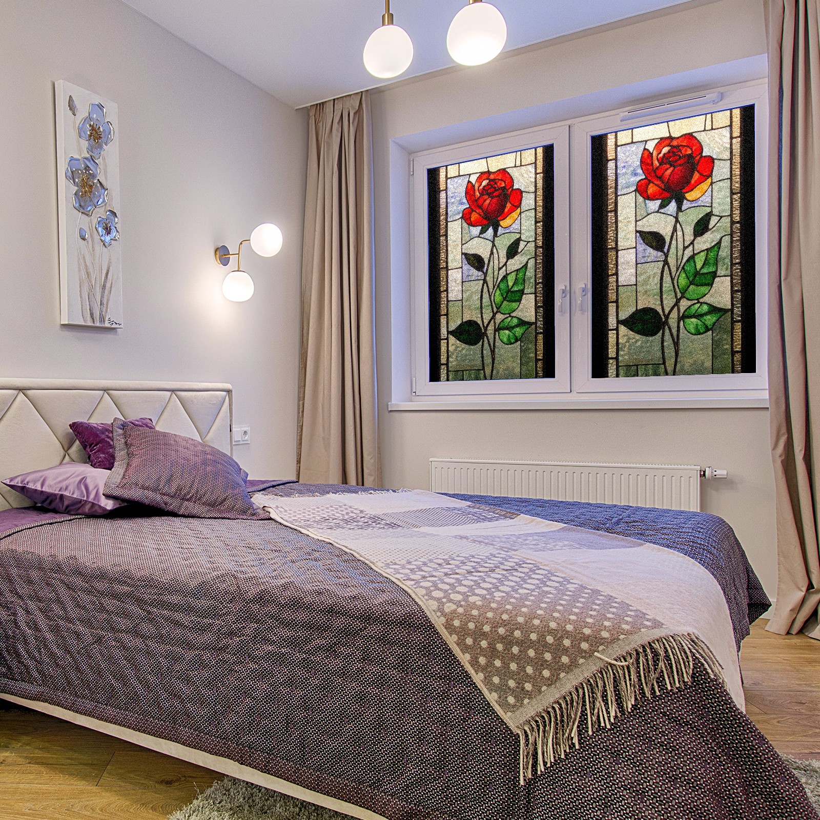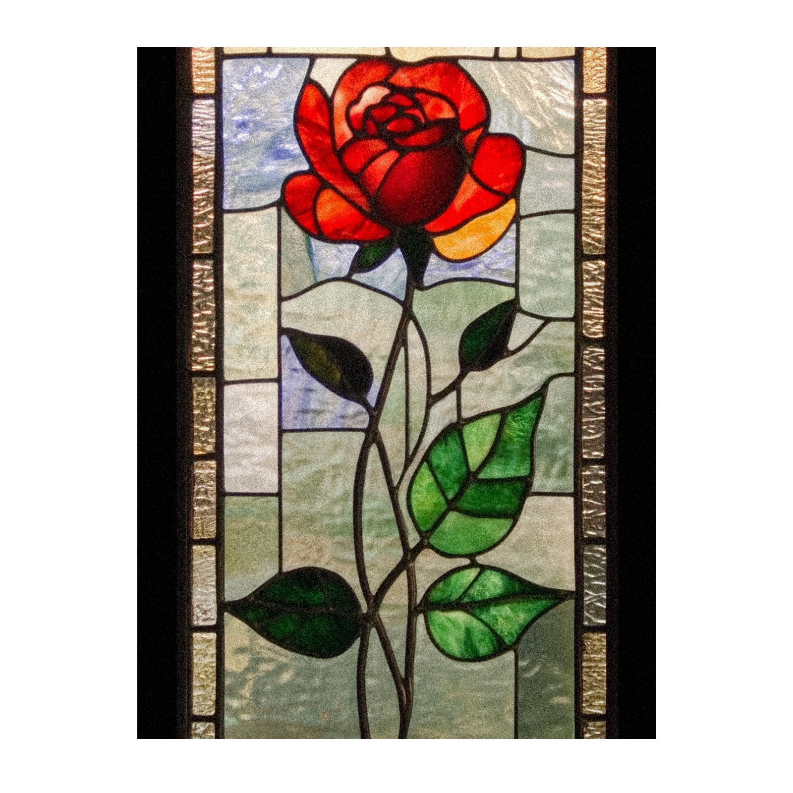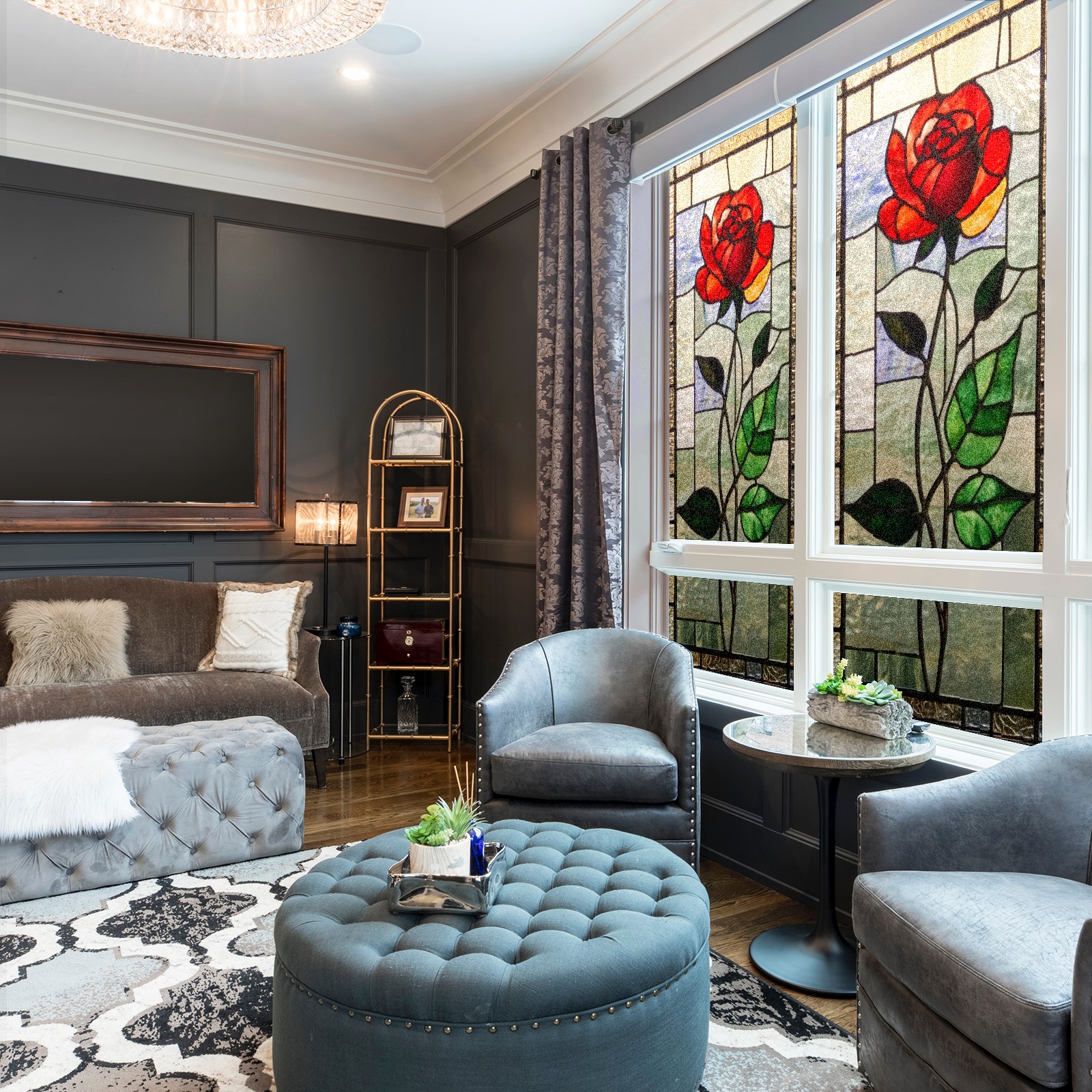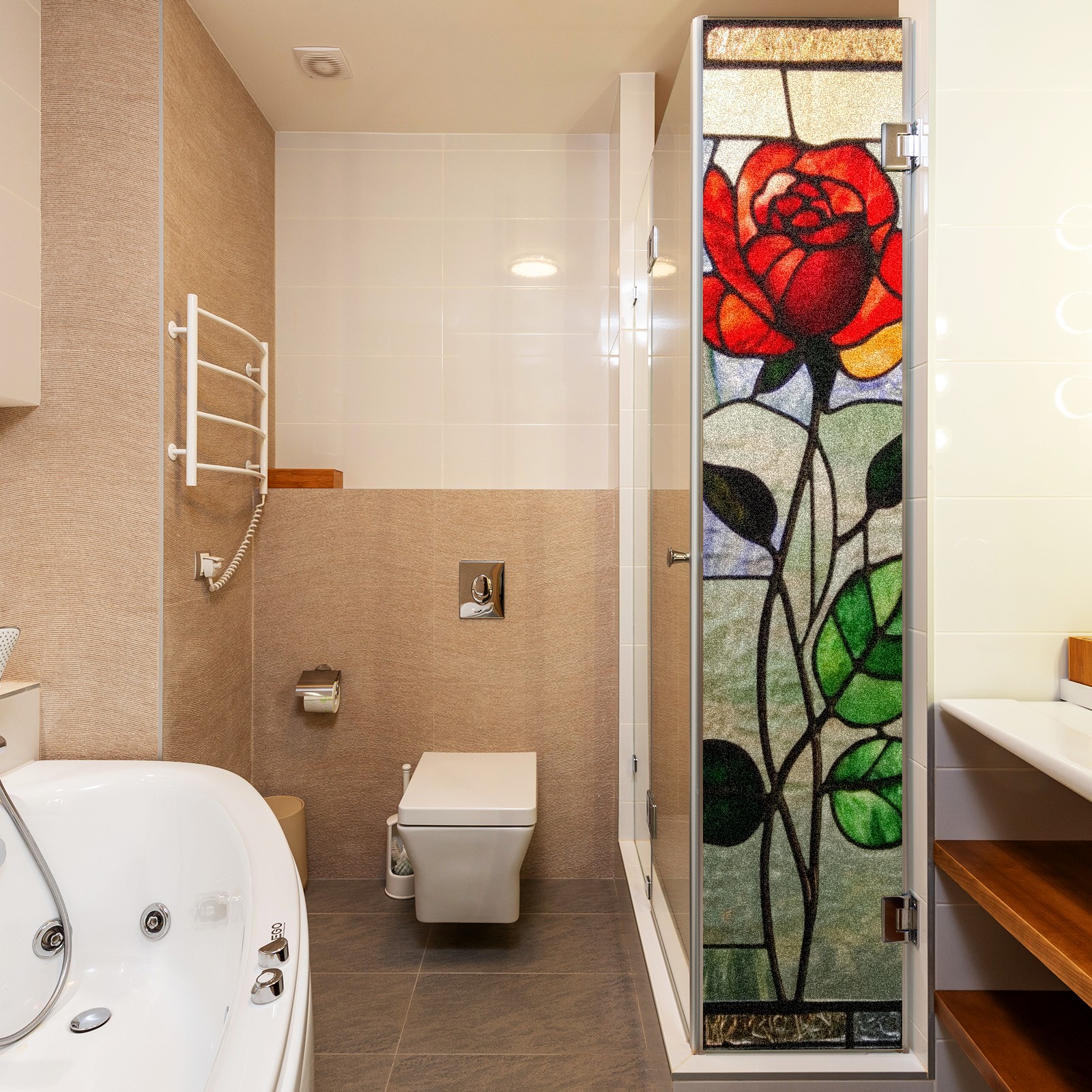 Single sided frosted full screen printed glass sticker soft pink green stripe seamless embroidery pattern privacy decoration Red Rose