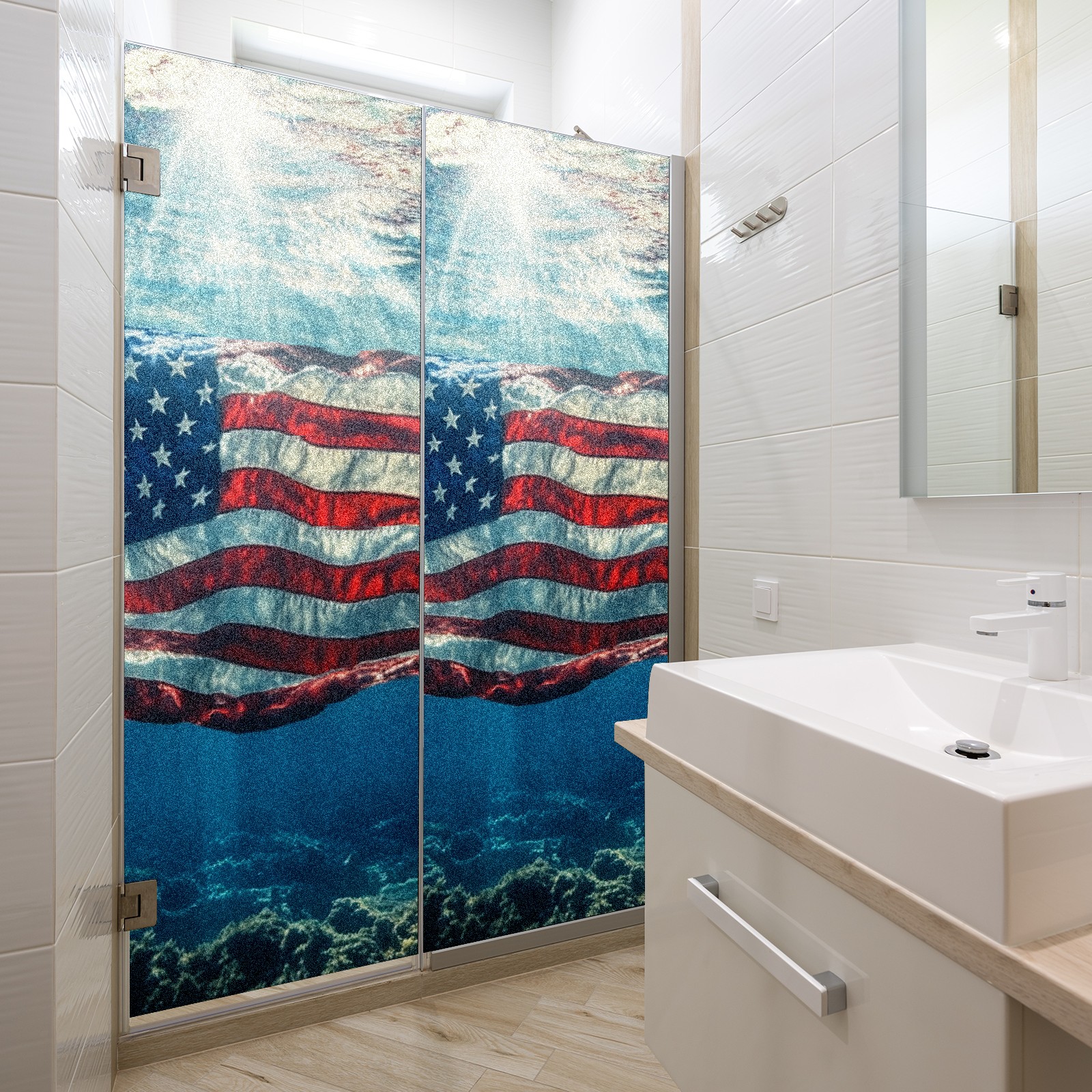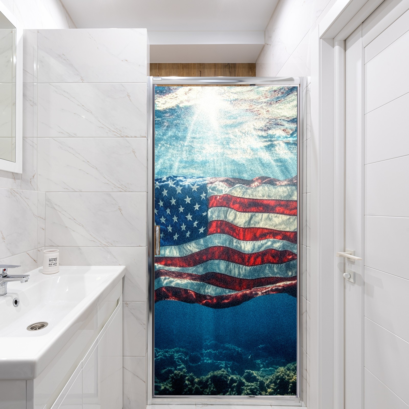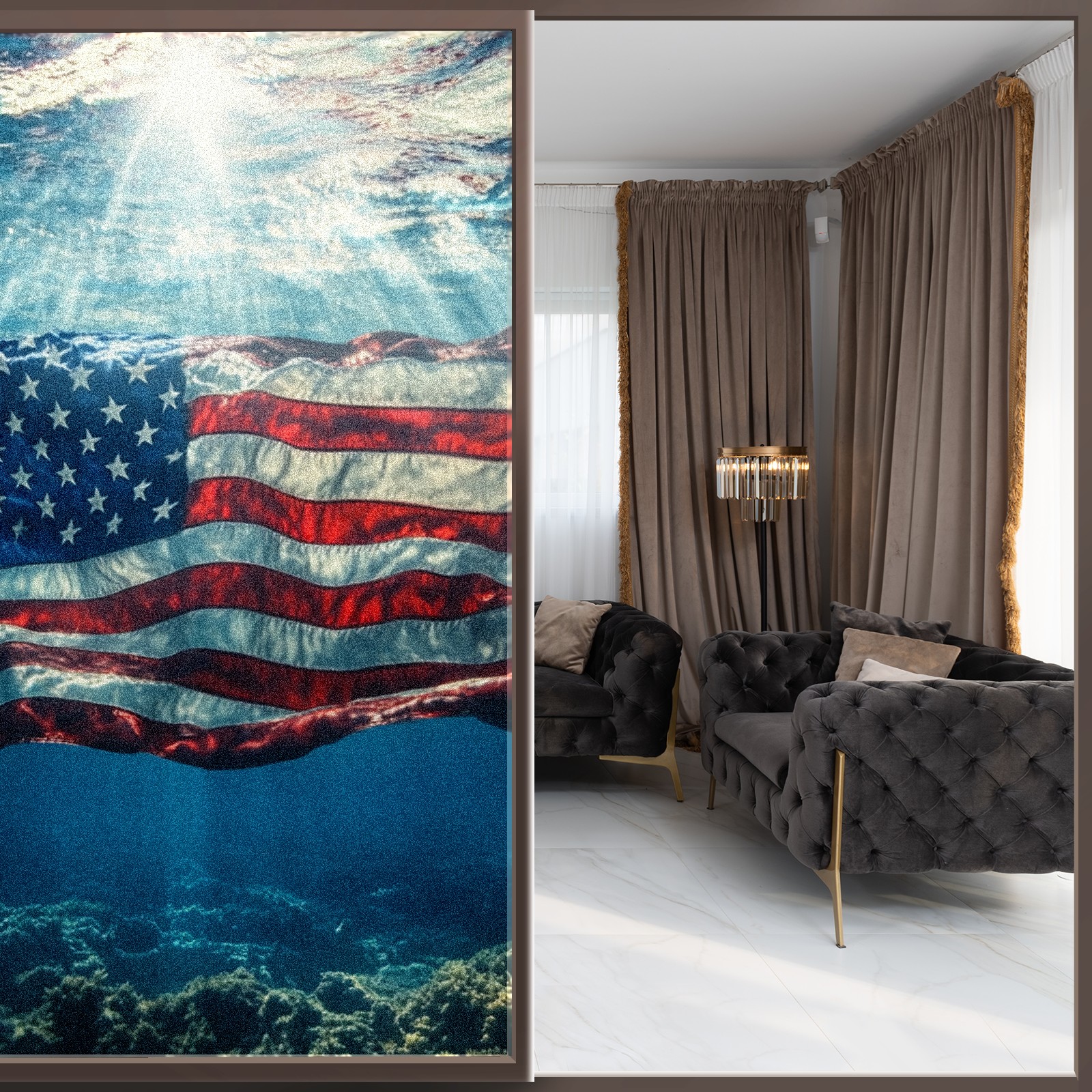 Single sided frosted full screen printed glass sticker soft pink green stripe seamless embroidery pattern privacy decoration American Flag