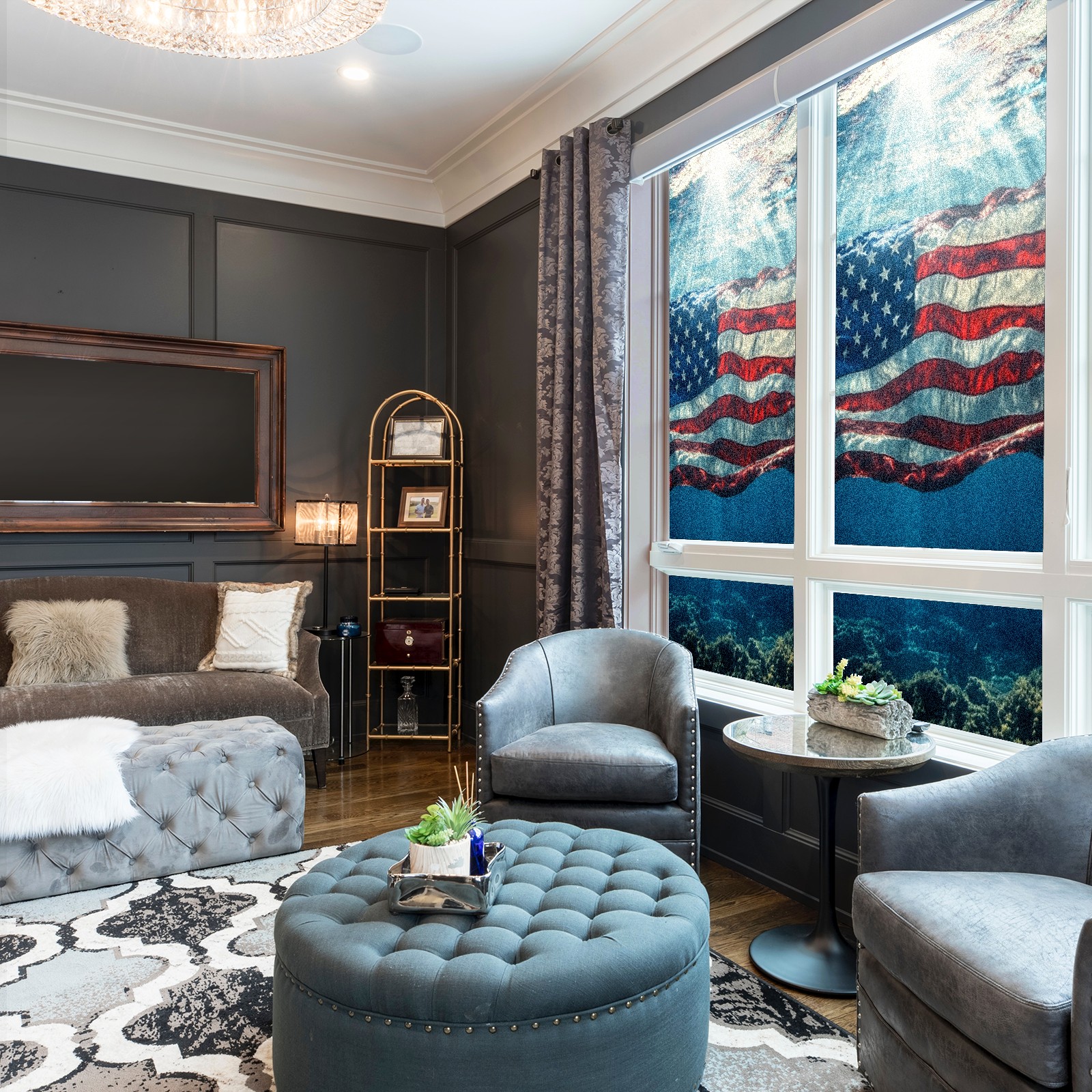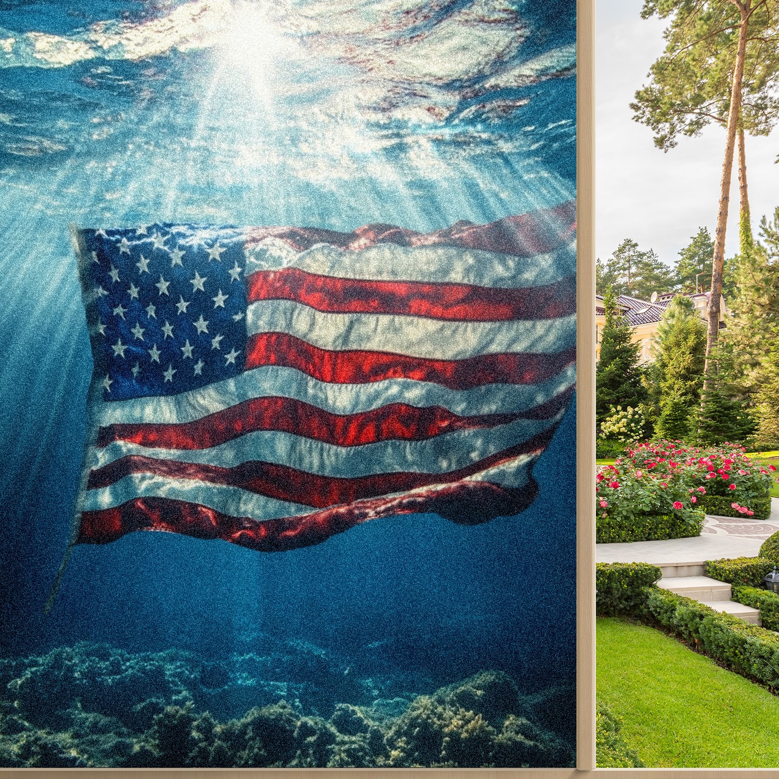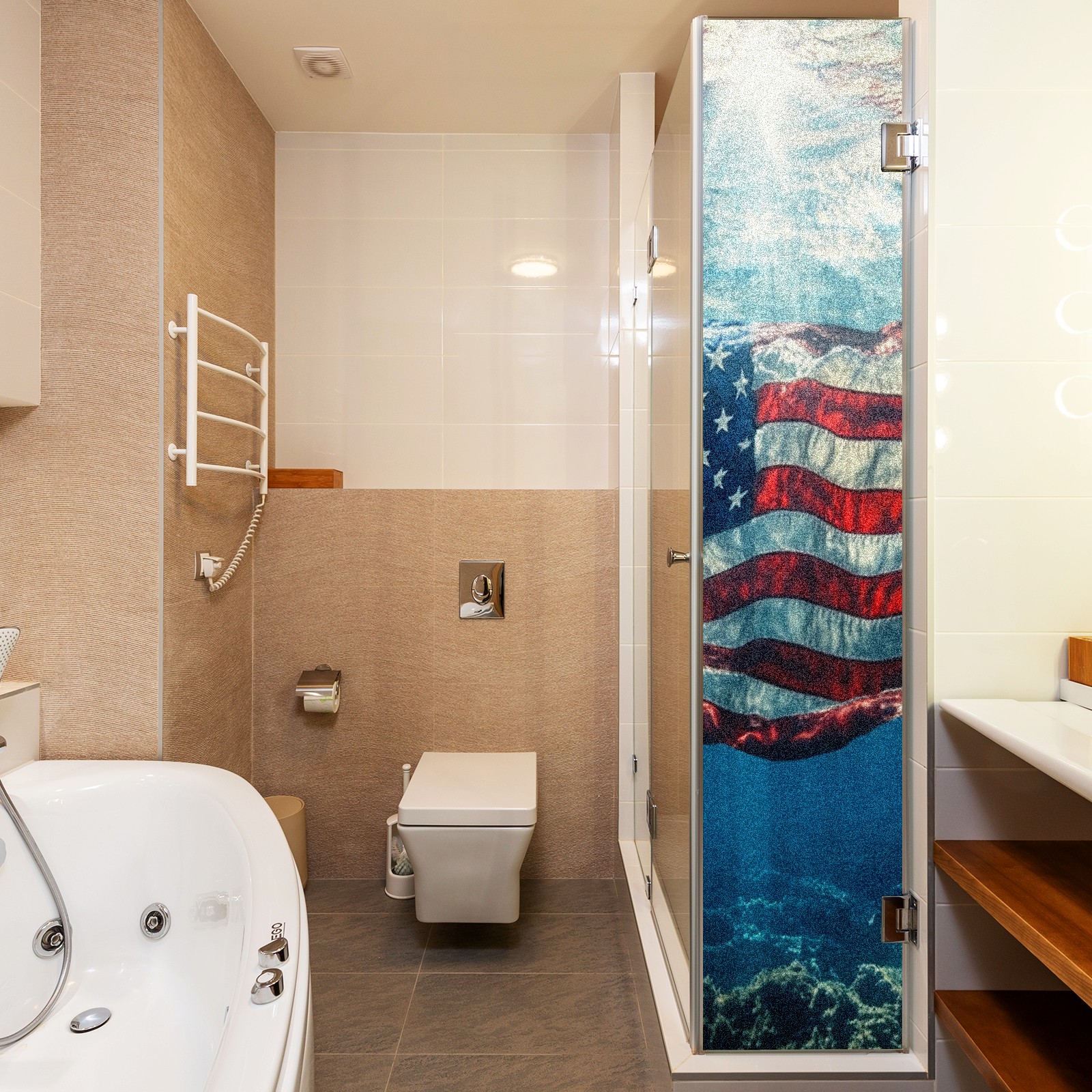 Single sided frosted full screen printed glass sticker soft pink green stripe seamless embroidery pattern privacy decoration American Flag