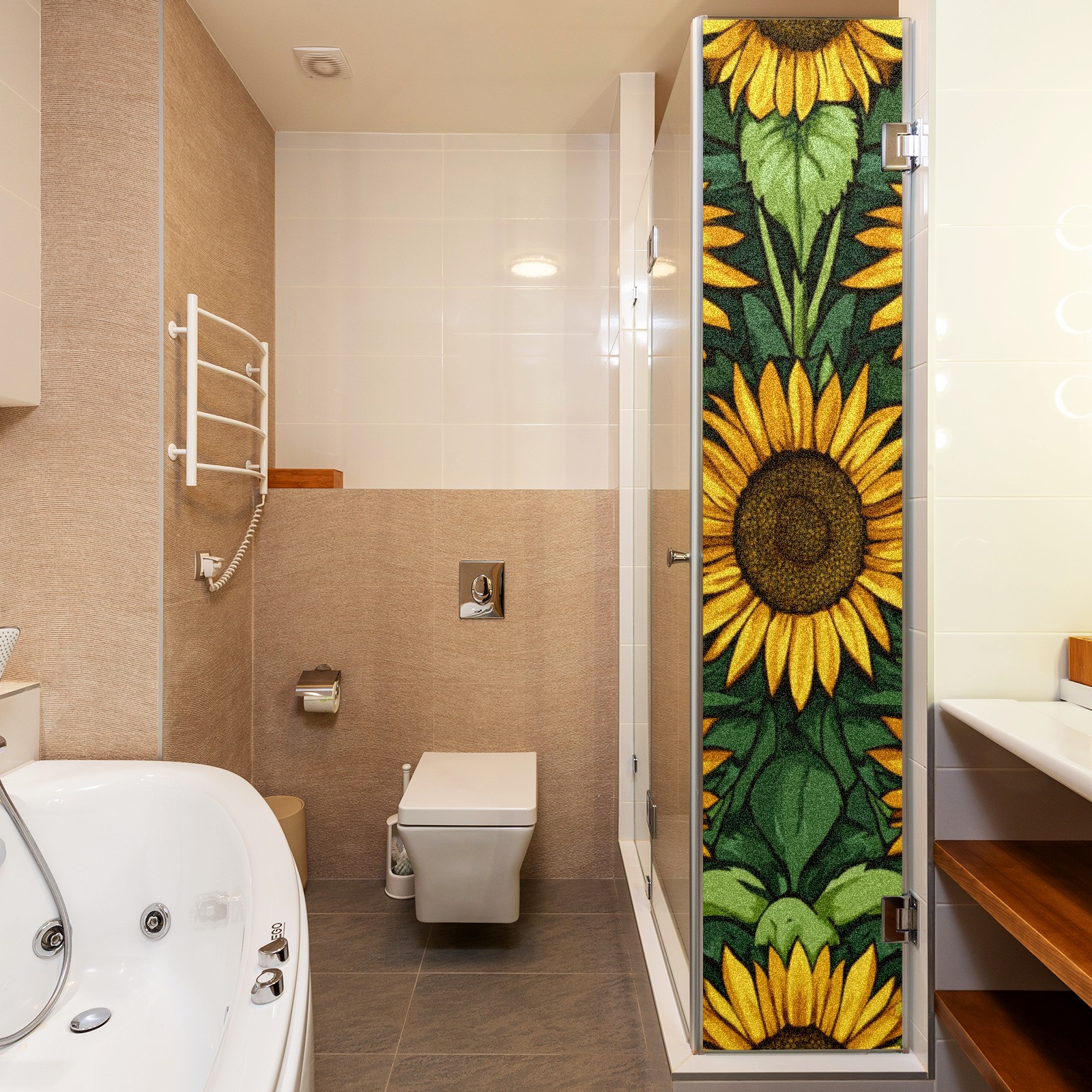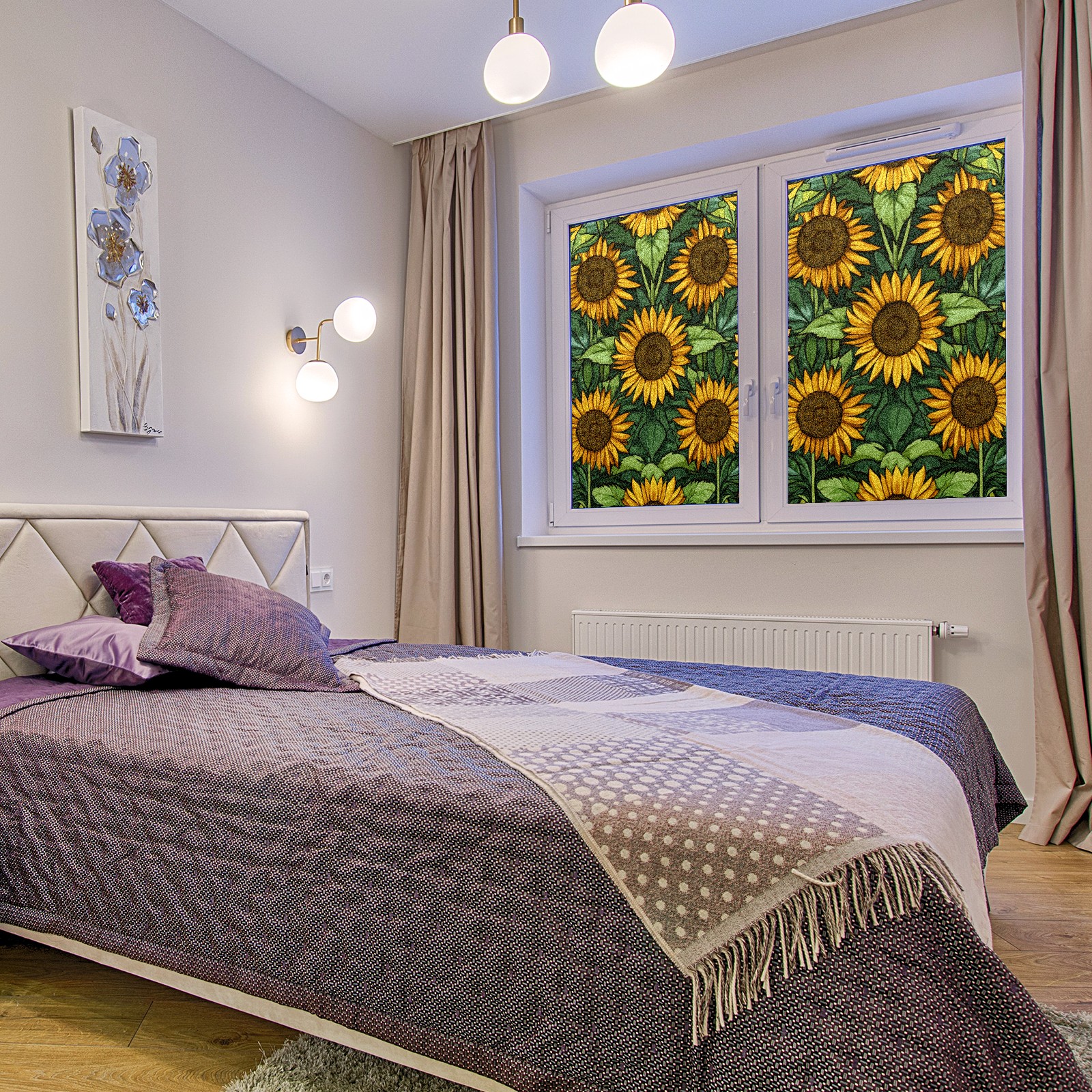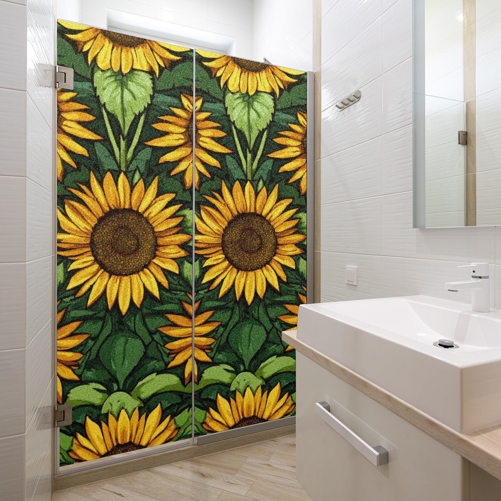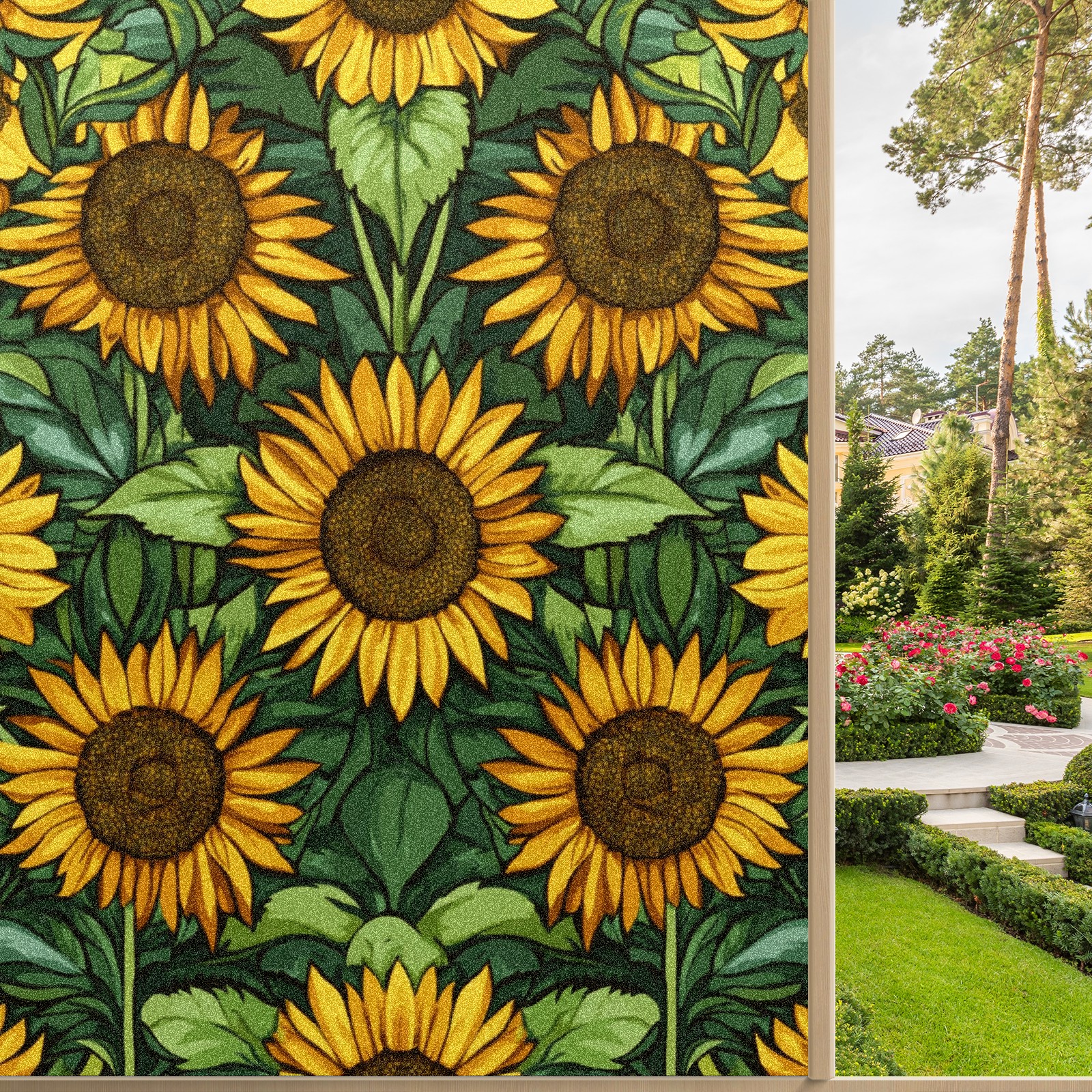 Single sided frosted full screen printed glass sticker soft pink green stripe seamless embroidery pattern privacy decoration Sunflowers