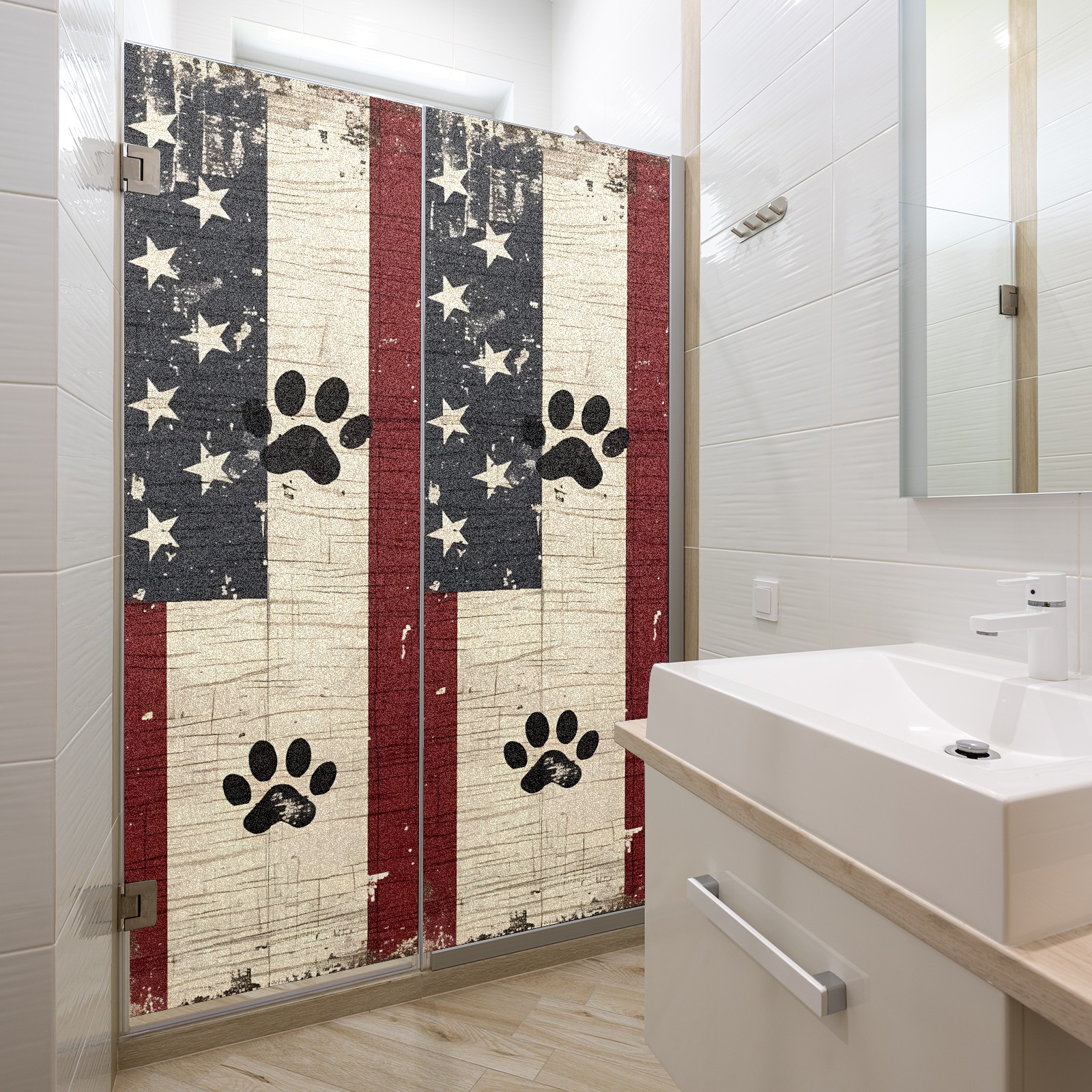 Single sided frosted full screen printed glass sticker soft pink green stripe seamless embroidery pattern privacy decoration 4th Of July (2) (2)