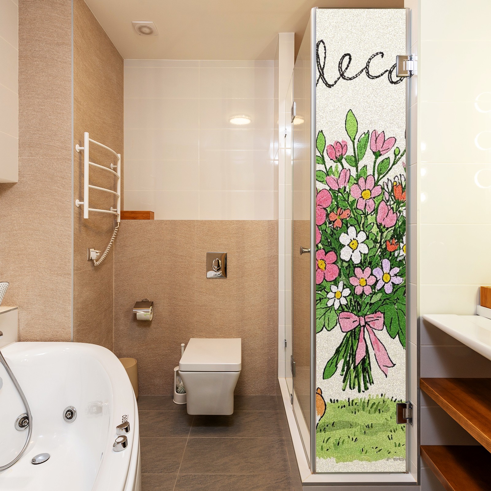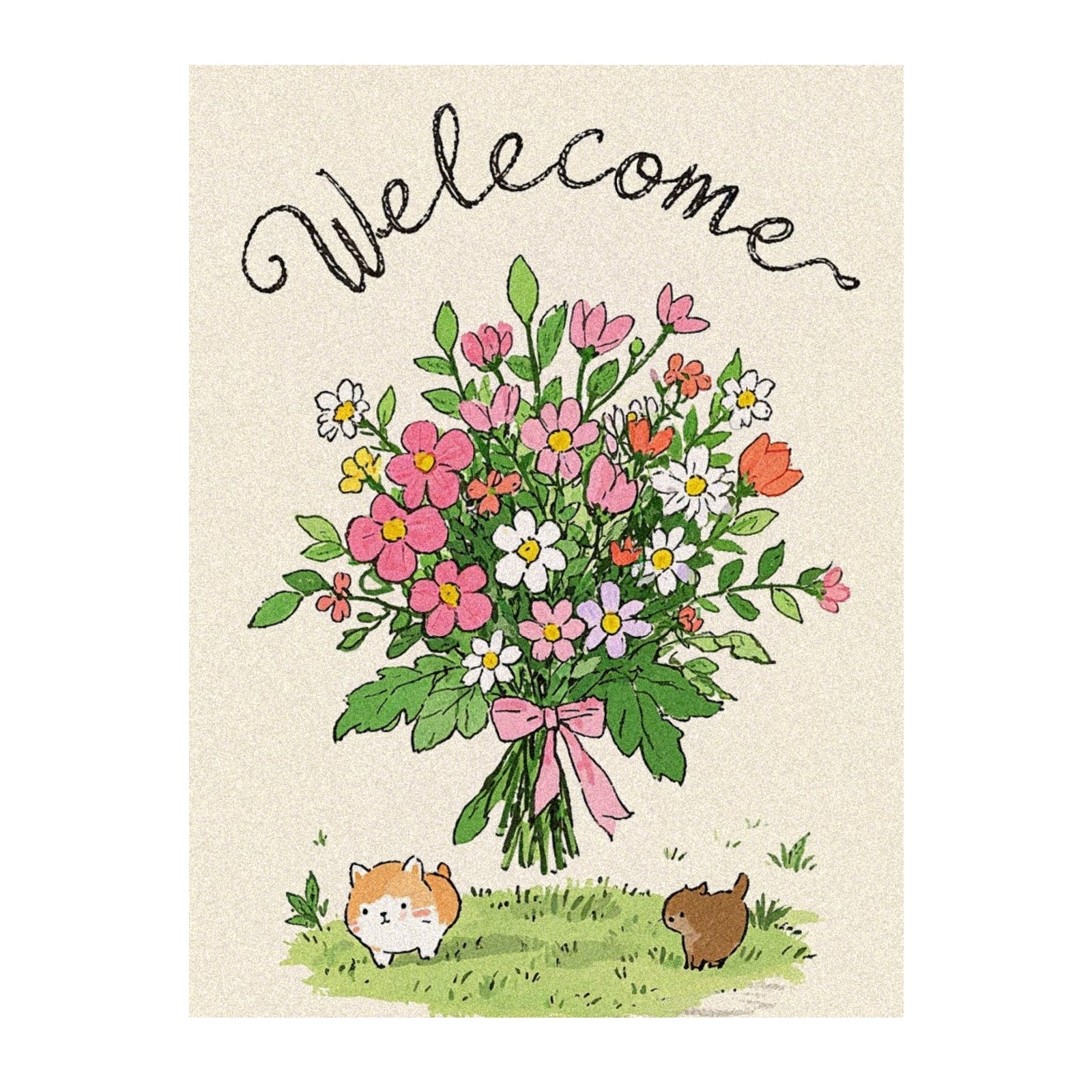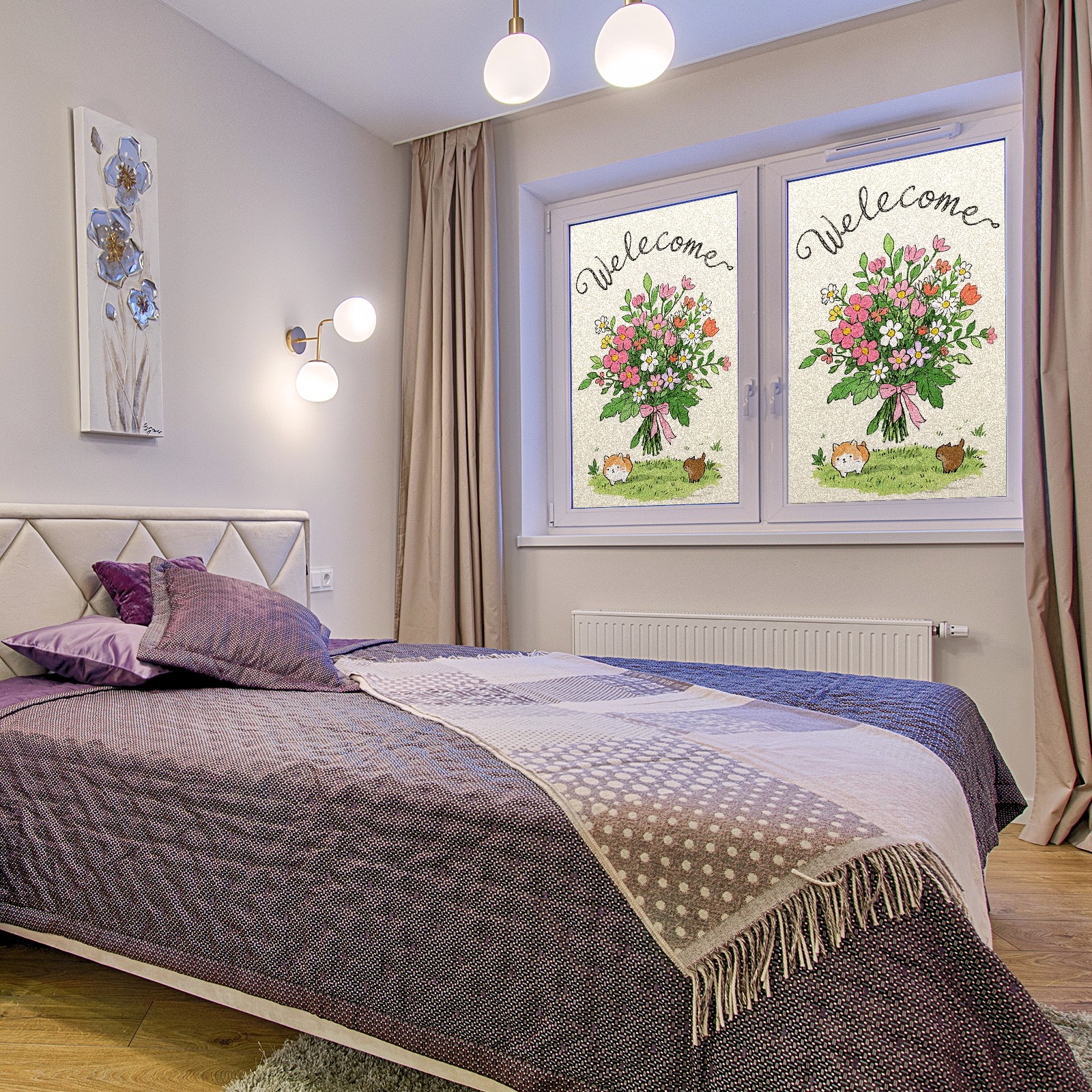 Single sided frosted full screen printed glass sticker soft pink green stripe seamless embroidery pattern privacy decoration Cute Kitten Bouquet