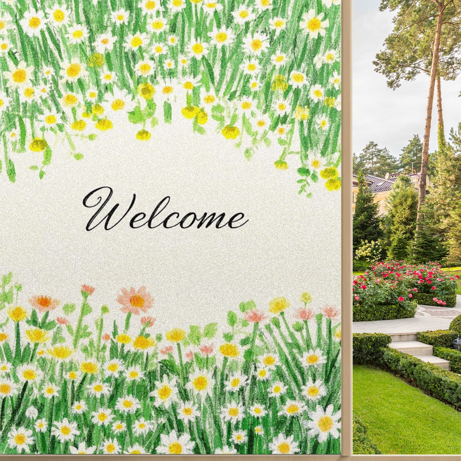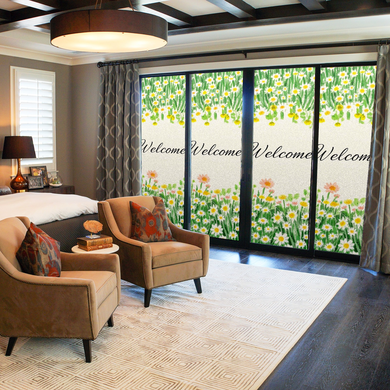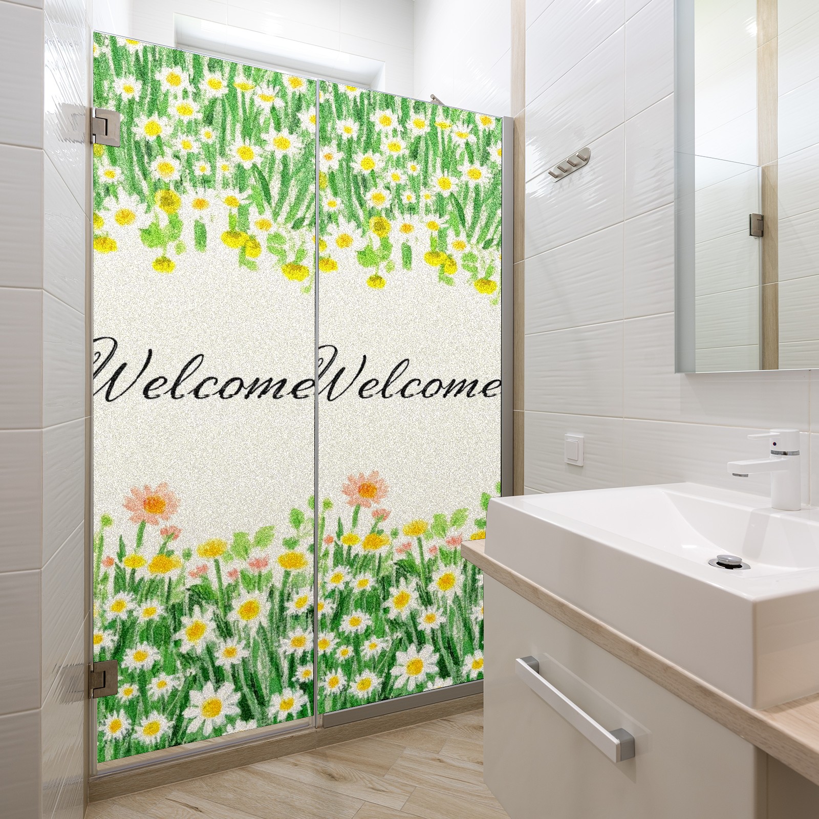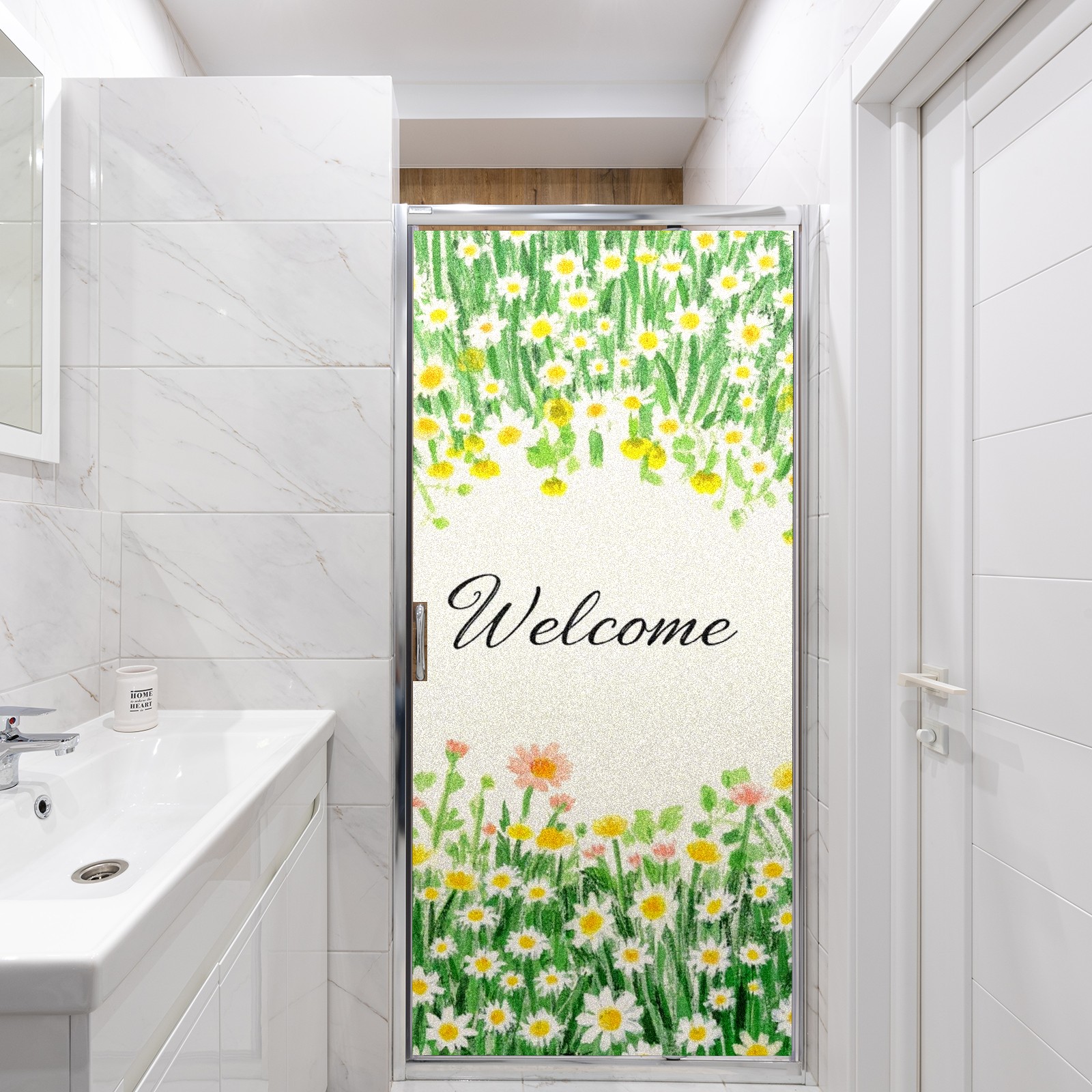 Single sided frosted full screen printed glass sticker soft pink green stripe seamless embroidery pattern privacy decoration Crayon Daisy Flower Cluster