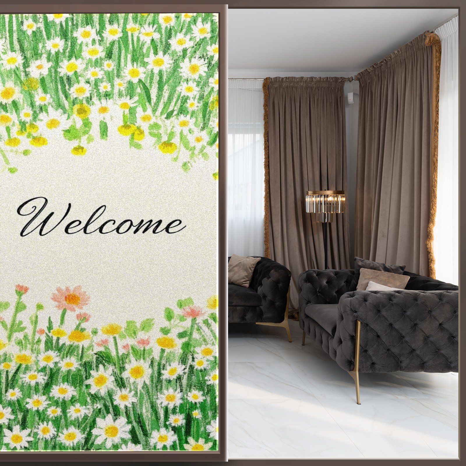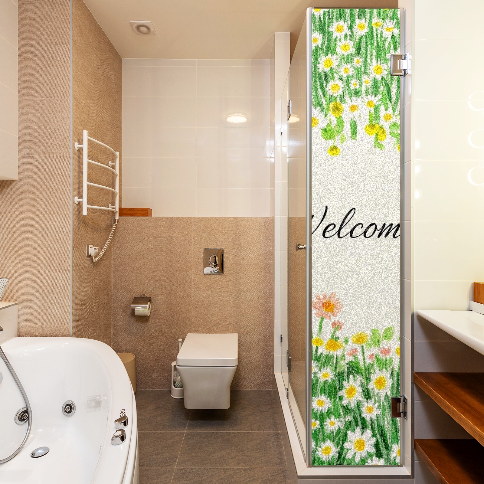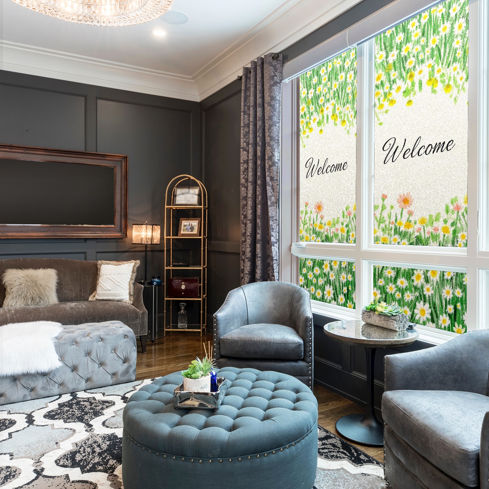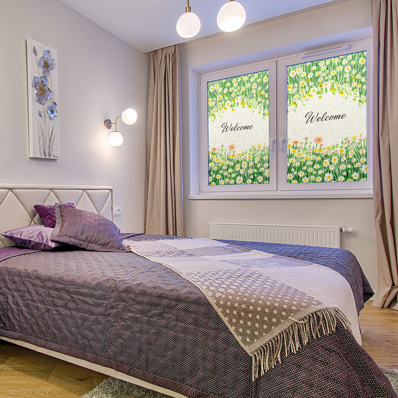 Single sided frosted full screen printed glass sticker soft pink green stripe seamless embroidery pattern privacy decoration Crayon Daisy Flower Cluster