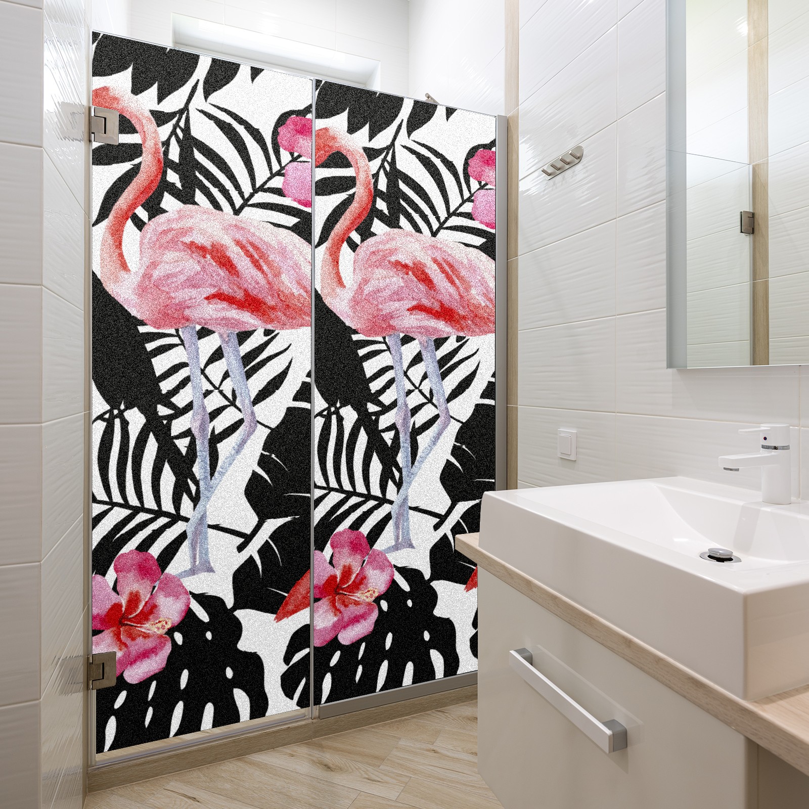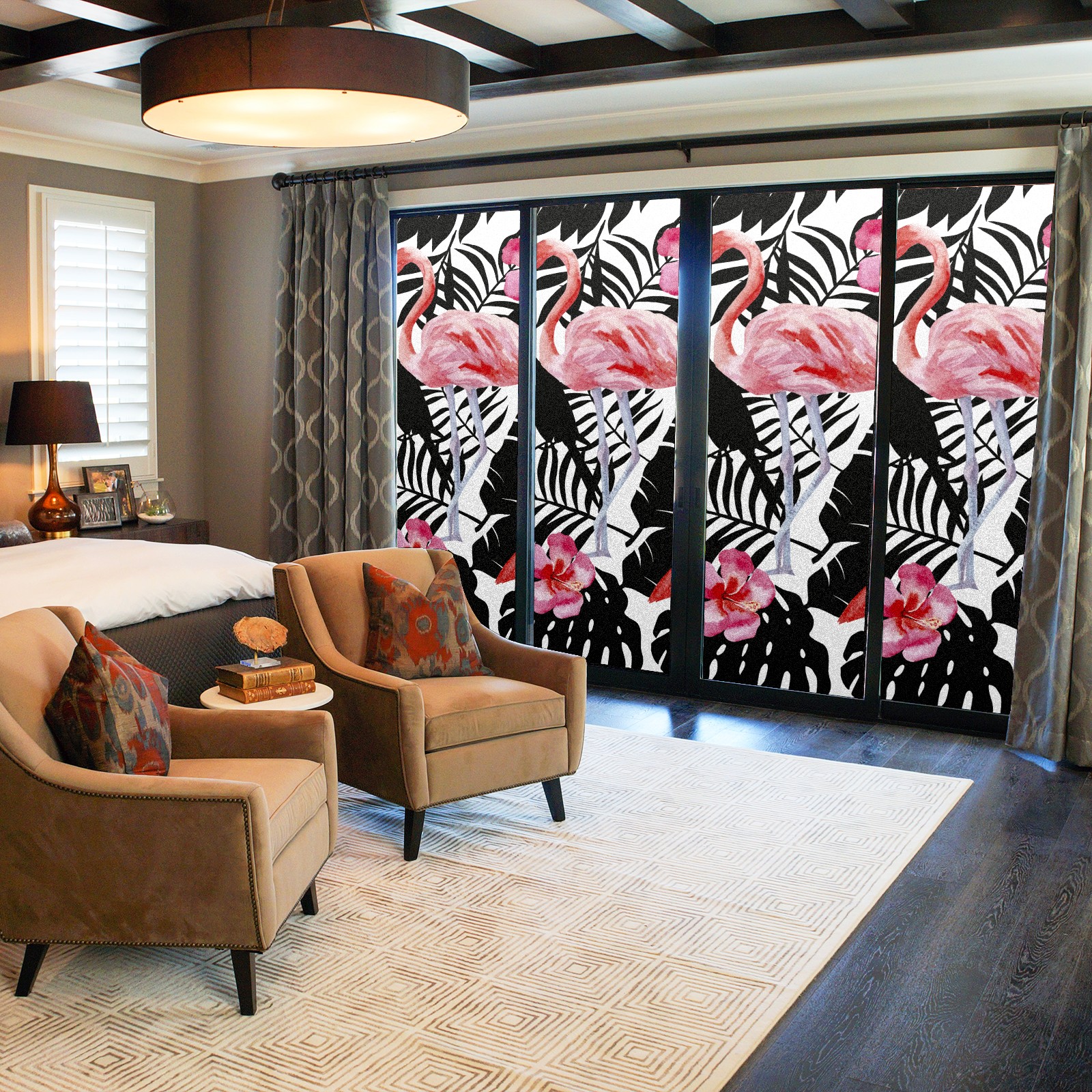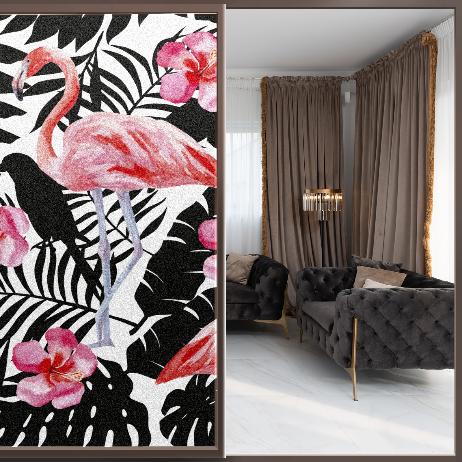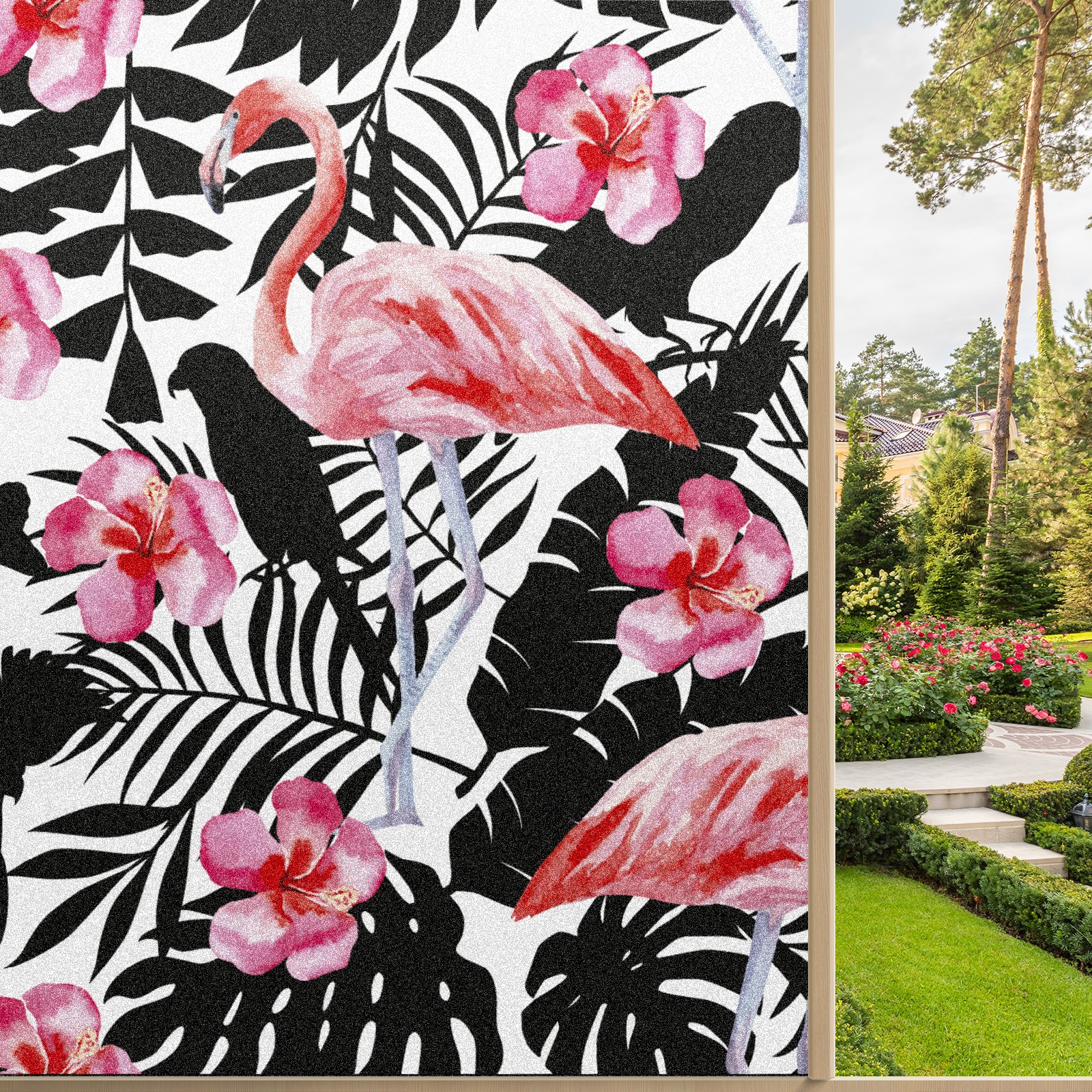 Single sided frosted full screen printed glass sticker soft pink green stripe seamless embroidery pattern privacy decoration Sticker-papier-peint-tropical-dominical-ambiance-sticker-col-mat